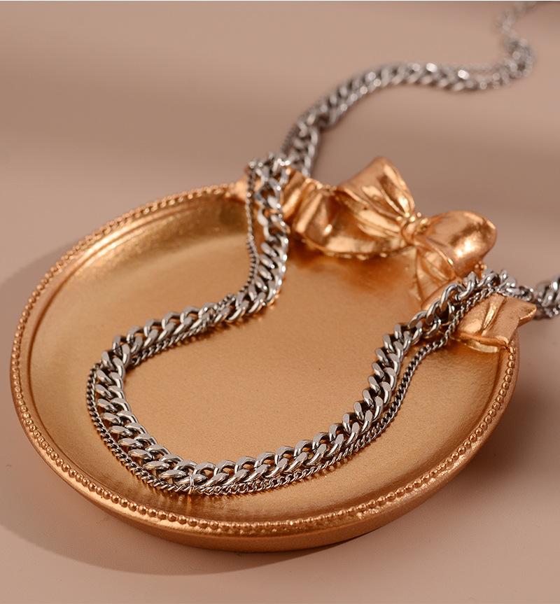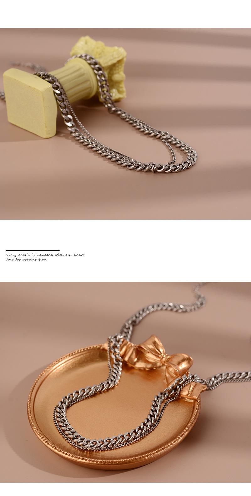 Collar de doble capa, sencillo y combinable, estilo frío, para parejas, con cadena cubana explosiva transfronteriza europea y americana de principios de primavera.