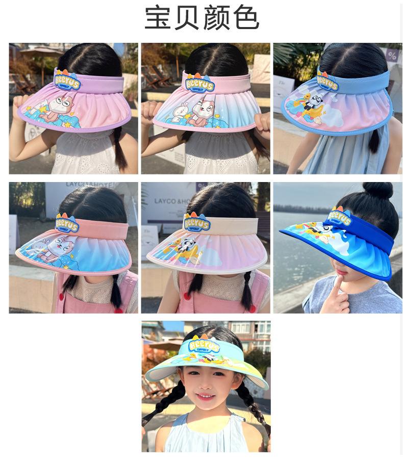 Sombrero de copa vacío de verano para niños, sombrero de copa vacío de ala grande con dibujos animados para bebés, para exteriores, playa, protección solar