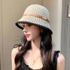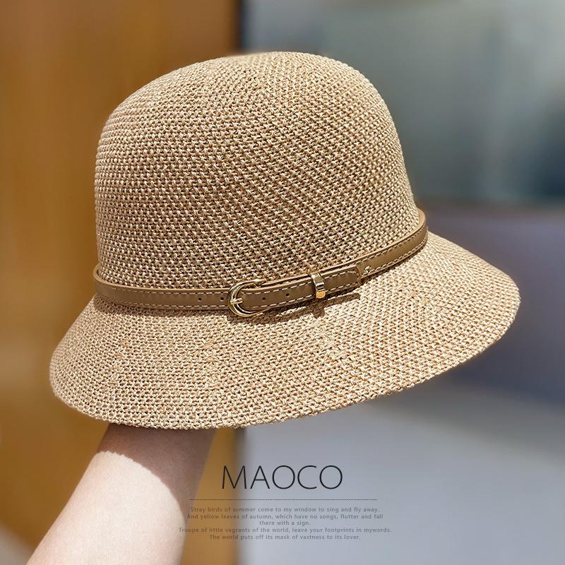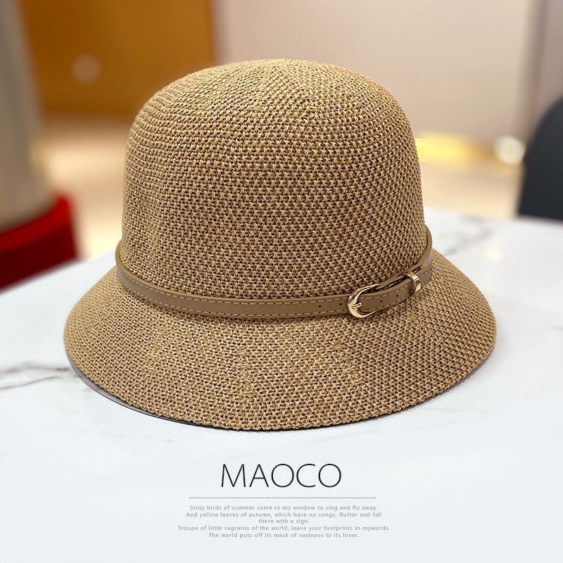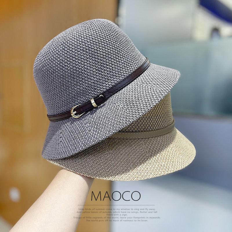 Sombrero de pescador, sombrero de lavabo, estilo primaveral y veraniego, versátil, protector solar, sombrero de sol con hebilla de cuero para mujer, sombrero de paja tejido.