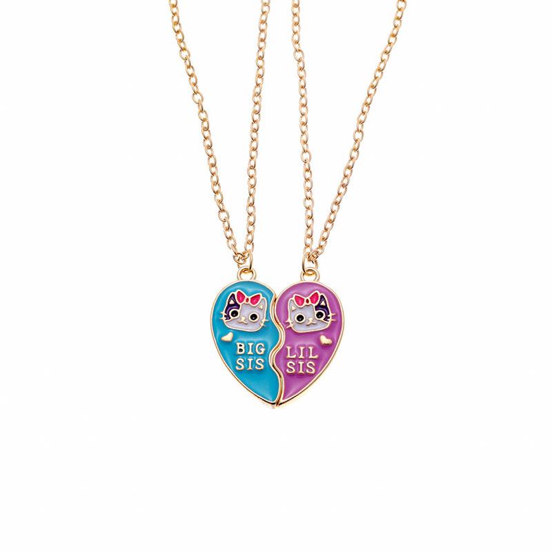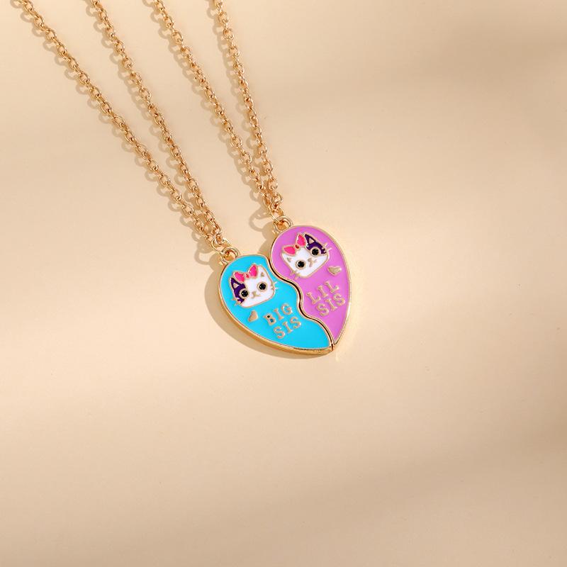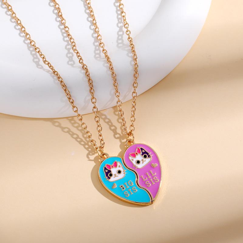 Accesorios de venta caliente europeos y americanos Serie Amigos Creativos Collar de gato de amor con gota de aceite de aleación para mejores amigos