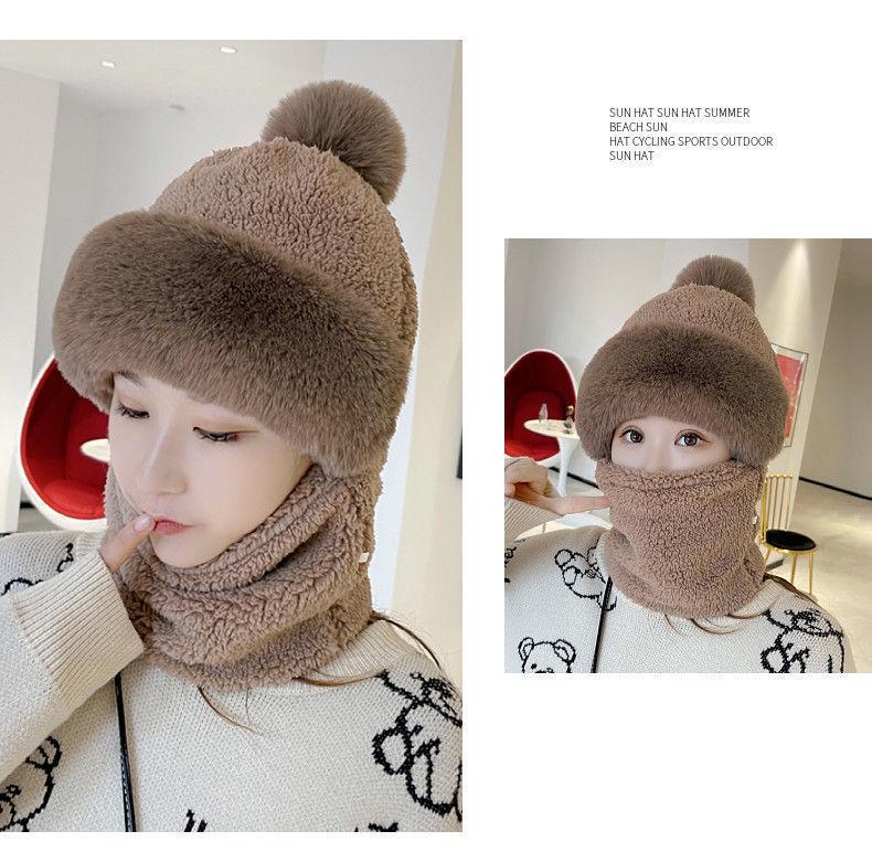 Sombrero para mujer otoño e invierno a prueba de viento para ciclismo Bufanda máscara gorro integrado cálido protección de cuello protección de oídos forro polar grueso gorro de punto marea