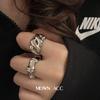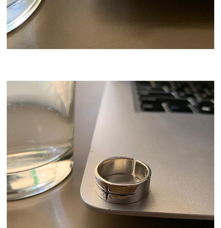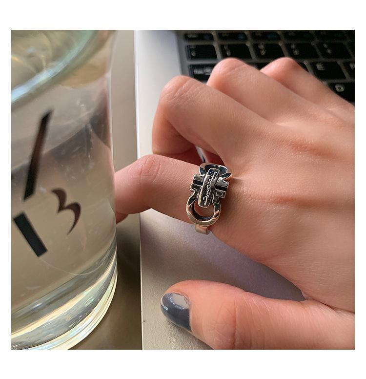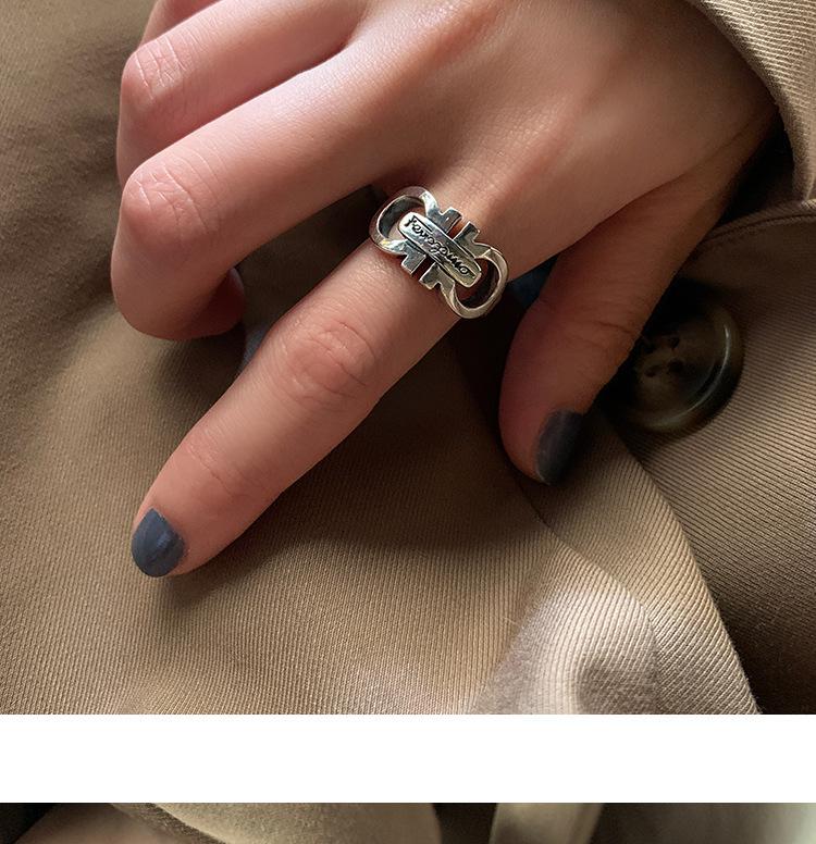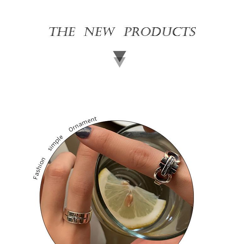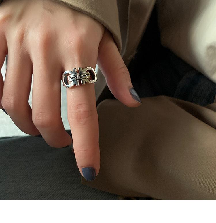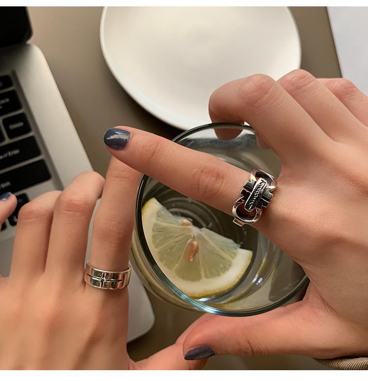 Anillo Hueco de Letras de Plata S925 Japonesa y Coreana para Mujer, Moda Retro, Sol, Meteoro, Anillo Abierto, Hip Hop, Anillo de Dedo, Marea