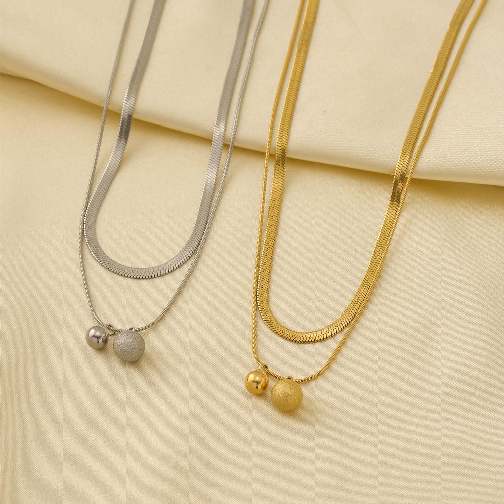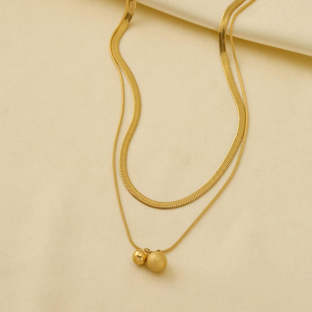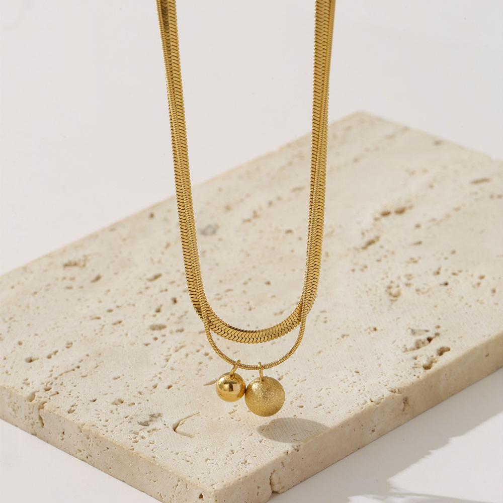 Collar de cuentas de acero de titanio y oro de 18 quilates que no se decolora, colgante de acero inoxidable con temperamento de bola de oro de moda europea y americana para mujer, joyería al por mayor