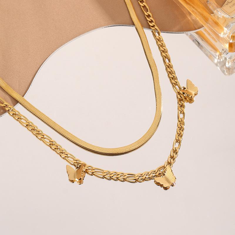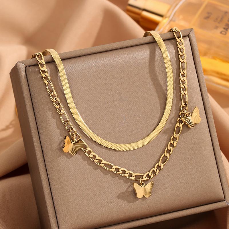 Collar de joyería de metal, titanio y acero, estilo europeo y americano, sencillo, combinable con todo, de doble capa y cadena, estilo mariposa, 2024