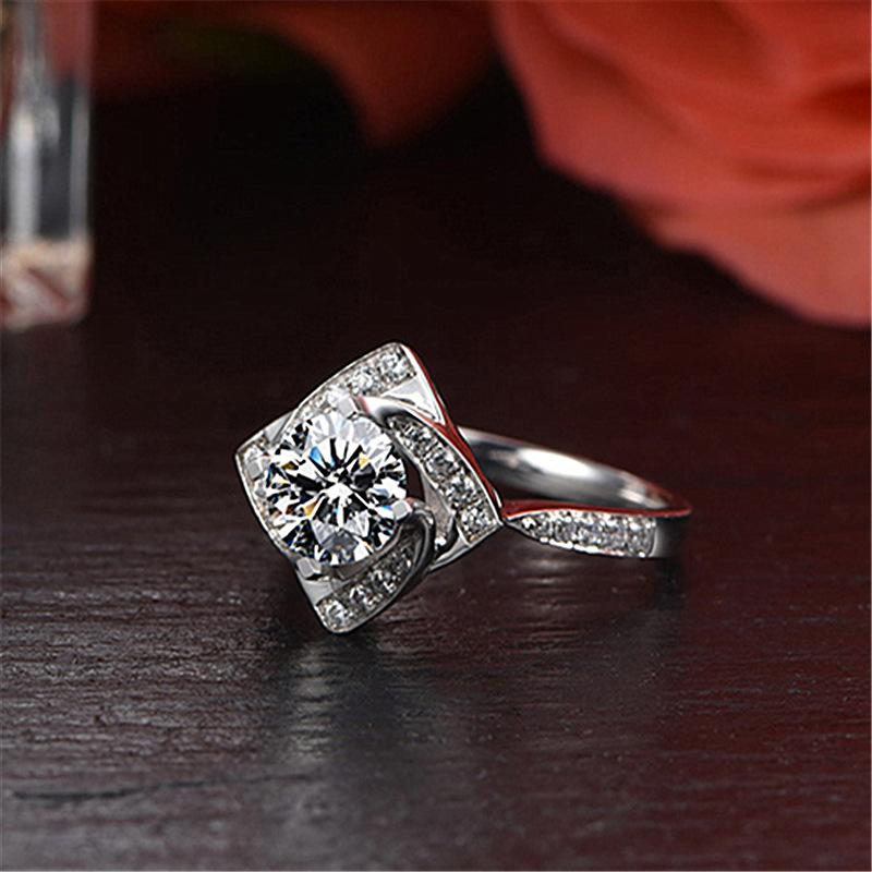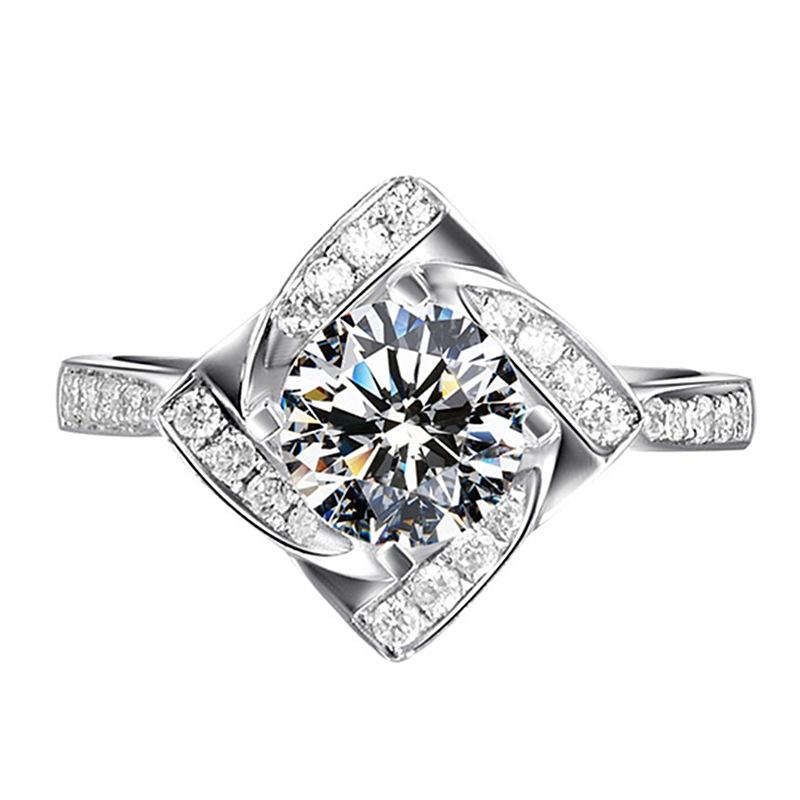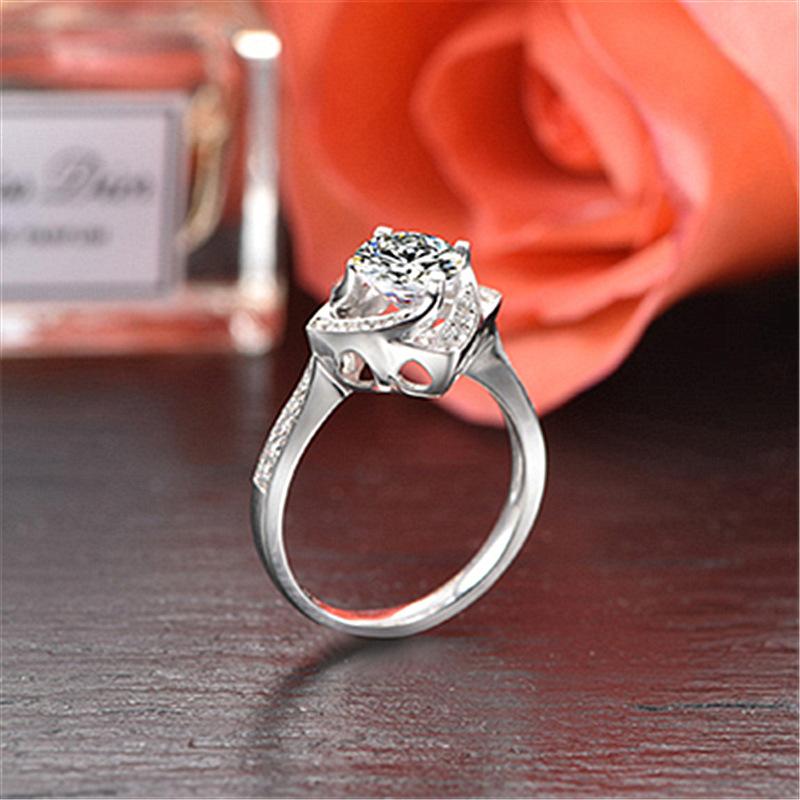 Anillo giratorio de trébol de cuatro hojas de moissanita de imitación de 1 quilate chapado en oro de 18K, anillo de boda con pétalos abiertos