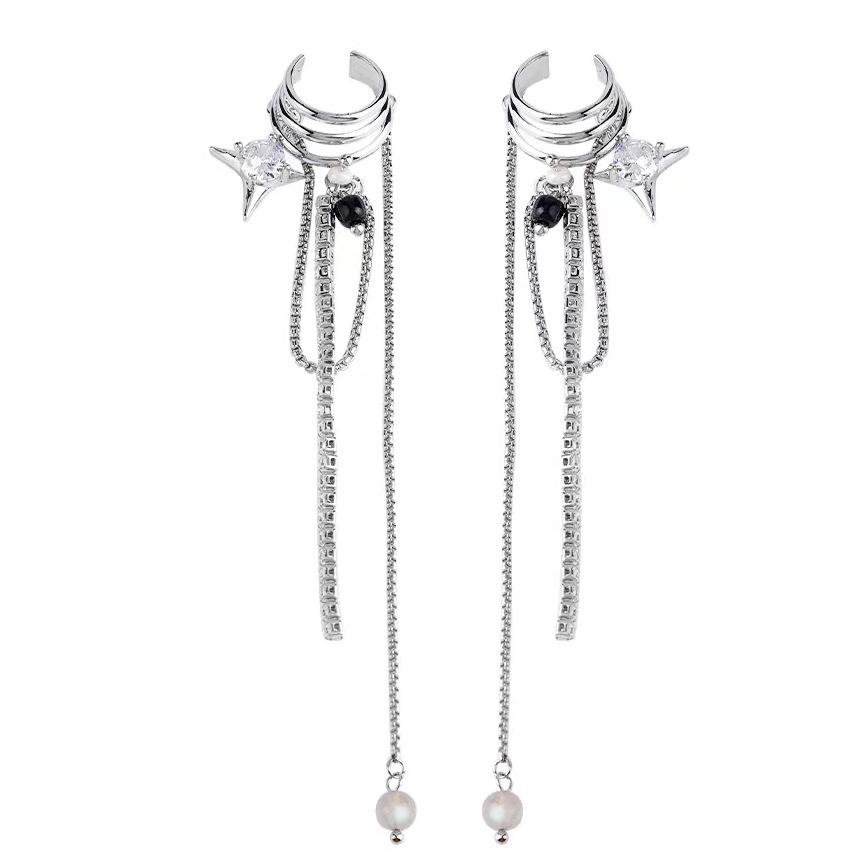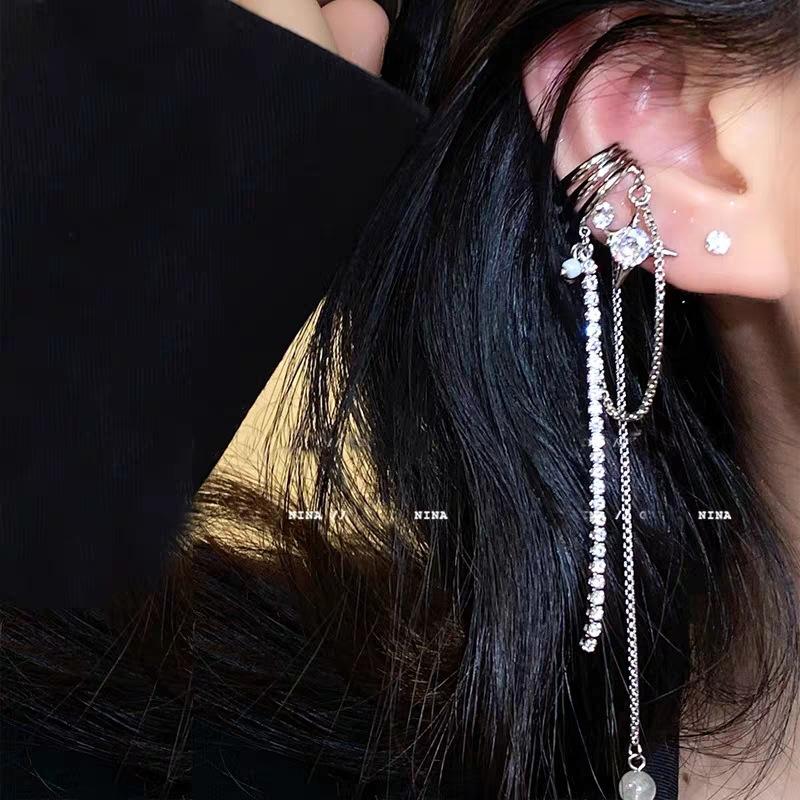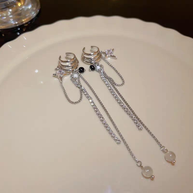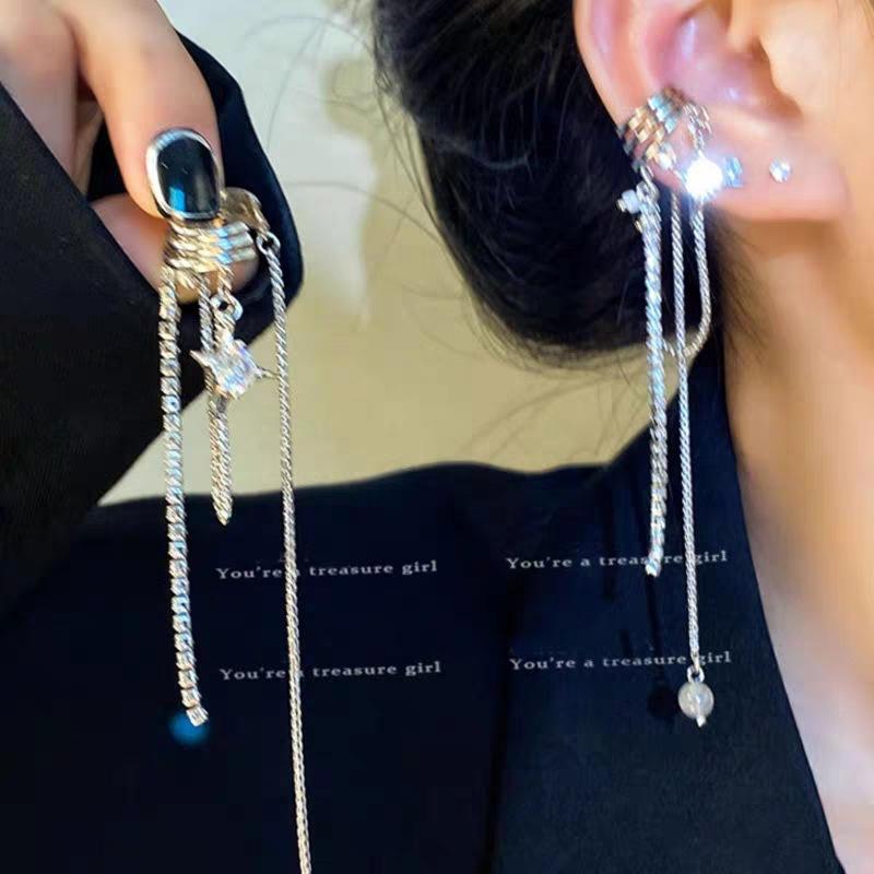 Puños para orejas dulces y geniales con borlas de estrella de estilo francés para mujeres sin orejas perforadas, aretes únicos y versátiles