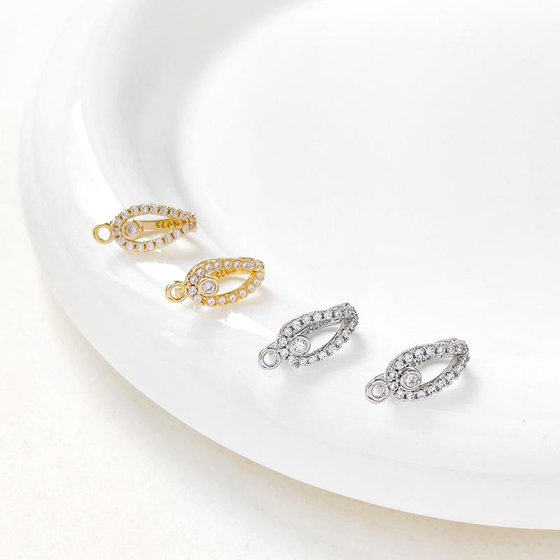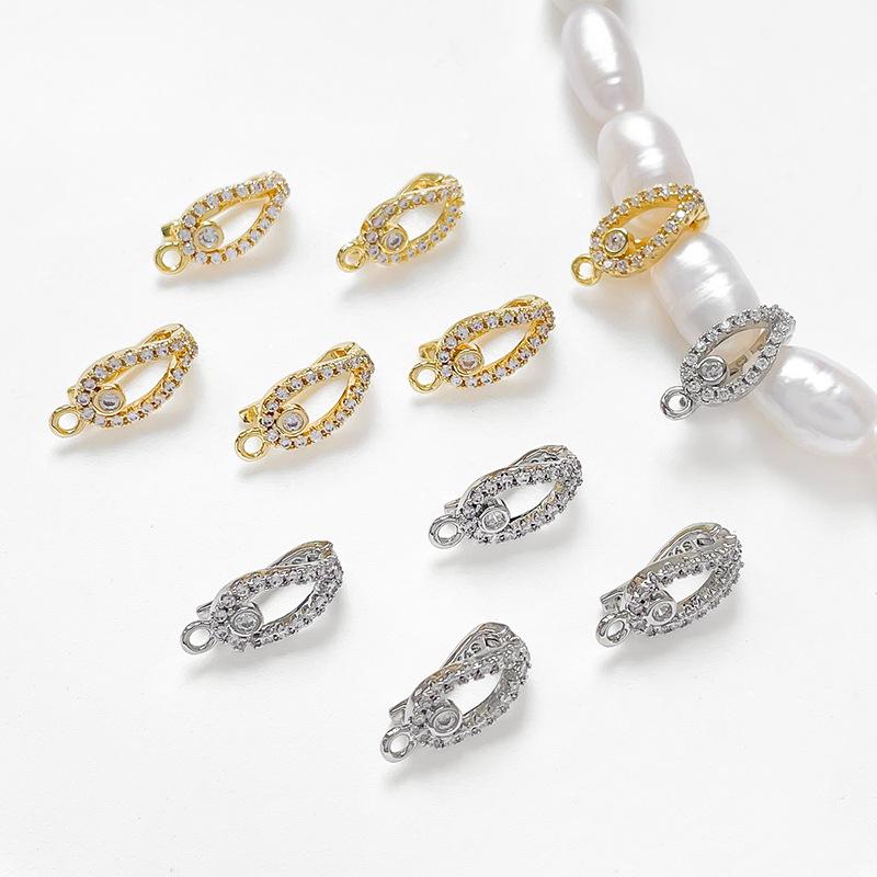 Hebilla universal con incrustaciones de circonita en oro real chapado en cobre de 14 quilates, clip individual para colgar, pulsera de perlas hecha a mano, collar, accesorios de cuentas