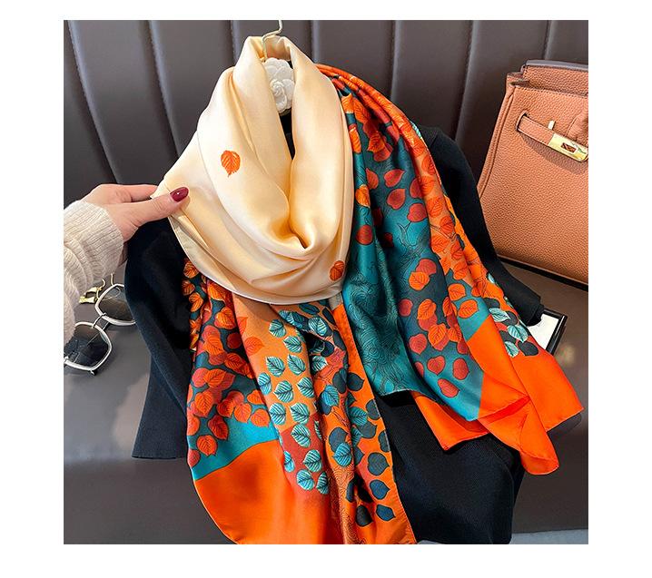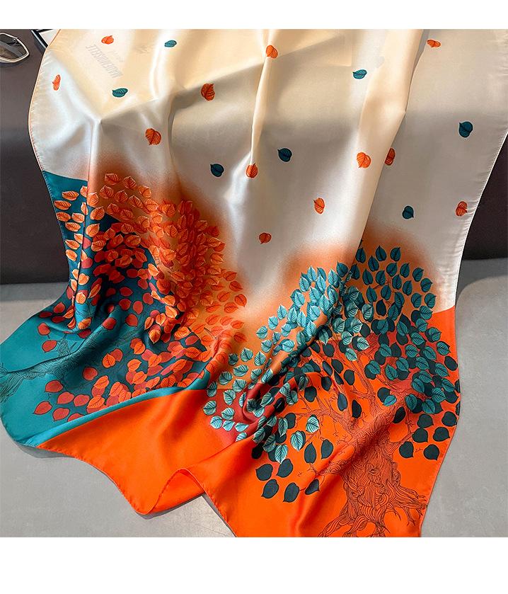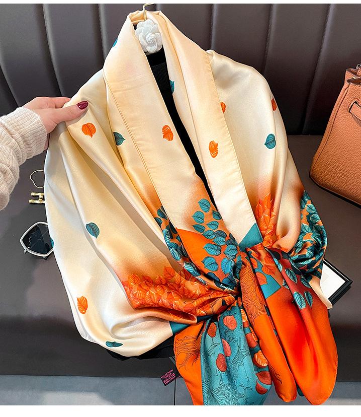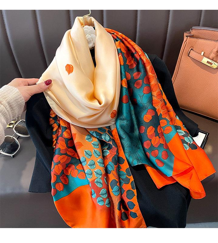 Nueva bufanda protectora solar para mujer, primavera y verano, estilo coreano, con estampado de árbol Lucai, imitación de seda, moda de otoño e invierno, toalla de playa larga para mujer