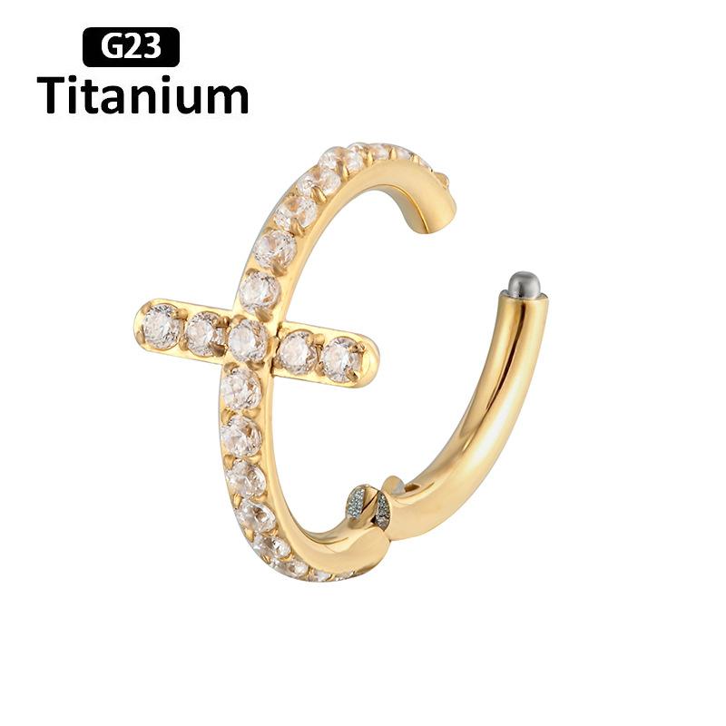 Aretes Cruz de Aleación de Titanio de Amazon Europeos y Americanos Perforación Anillo de Nariz Anillo de Nariz Anillo para Hueso de la Oreja Aretes de Zirconia Sin Costuras