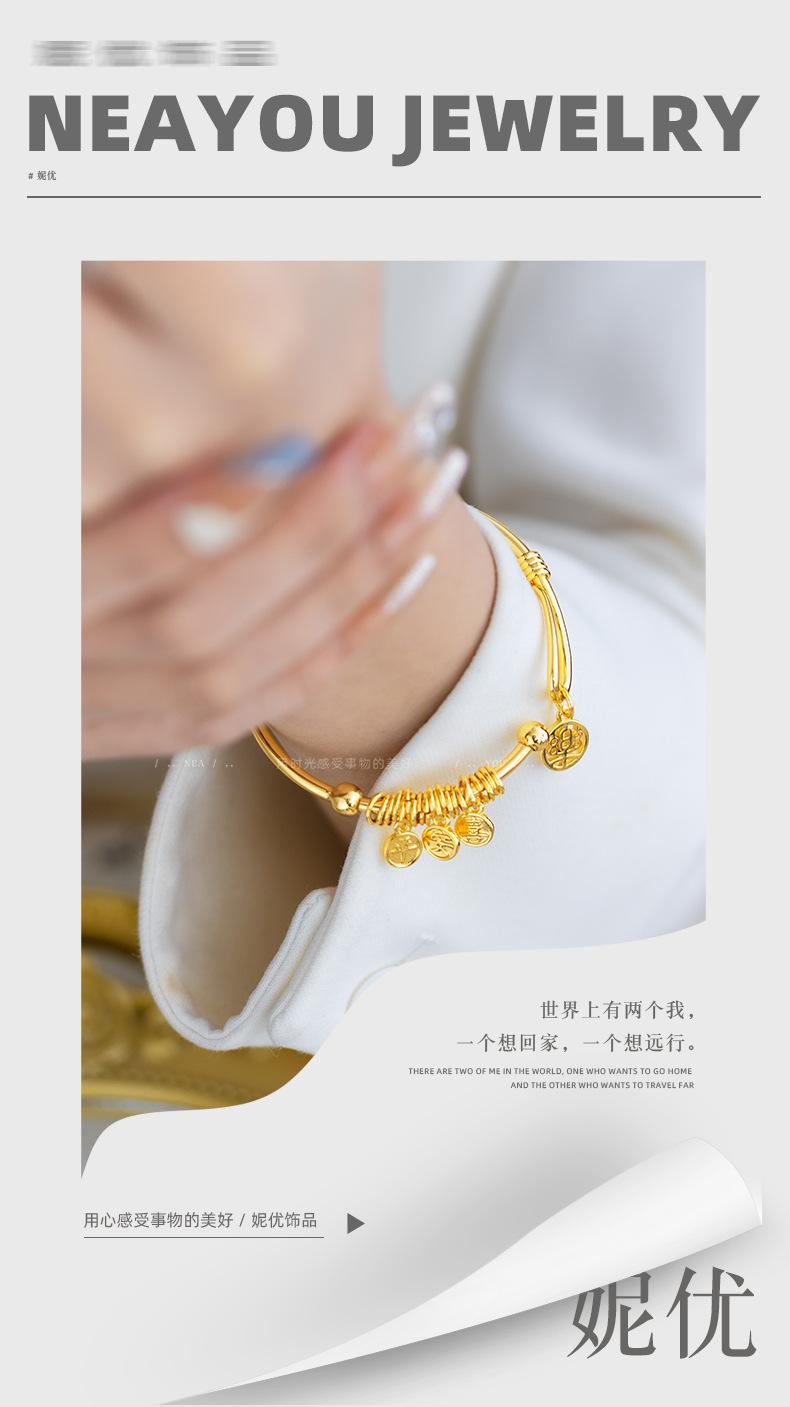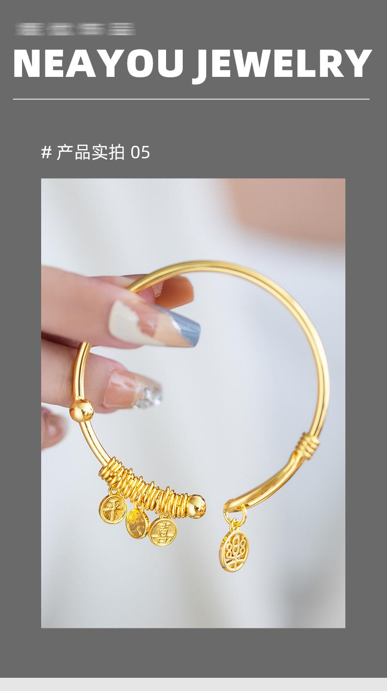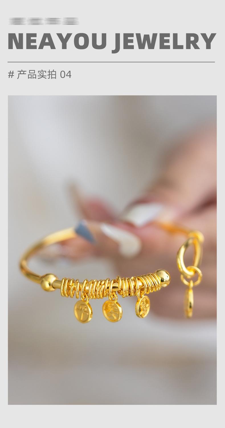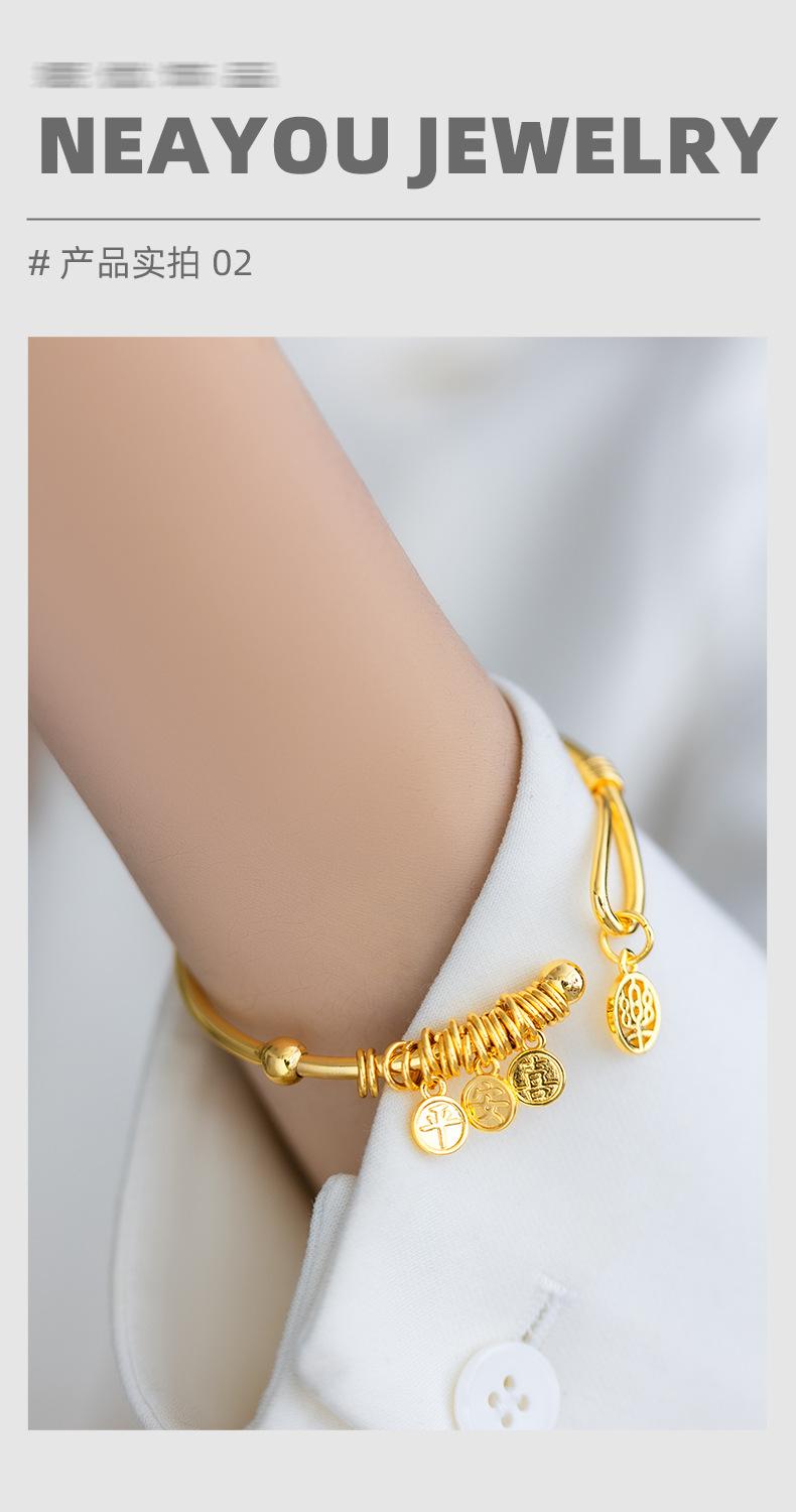 Nuevo Pulsera Colgante de Placa de Palabras Auspiciosas de Apertura Chinoiserie de Alta Gama Chapado en Oro de 24K Paz y Alegría Pulsera para Mujer