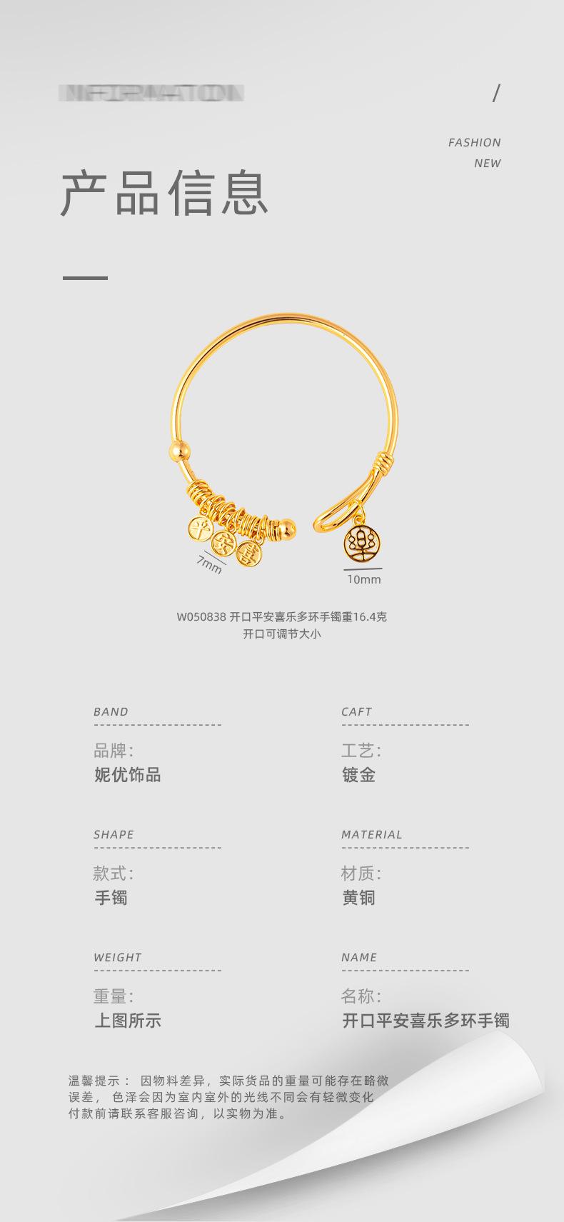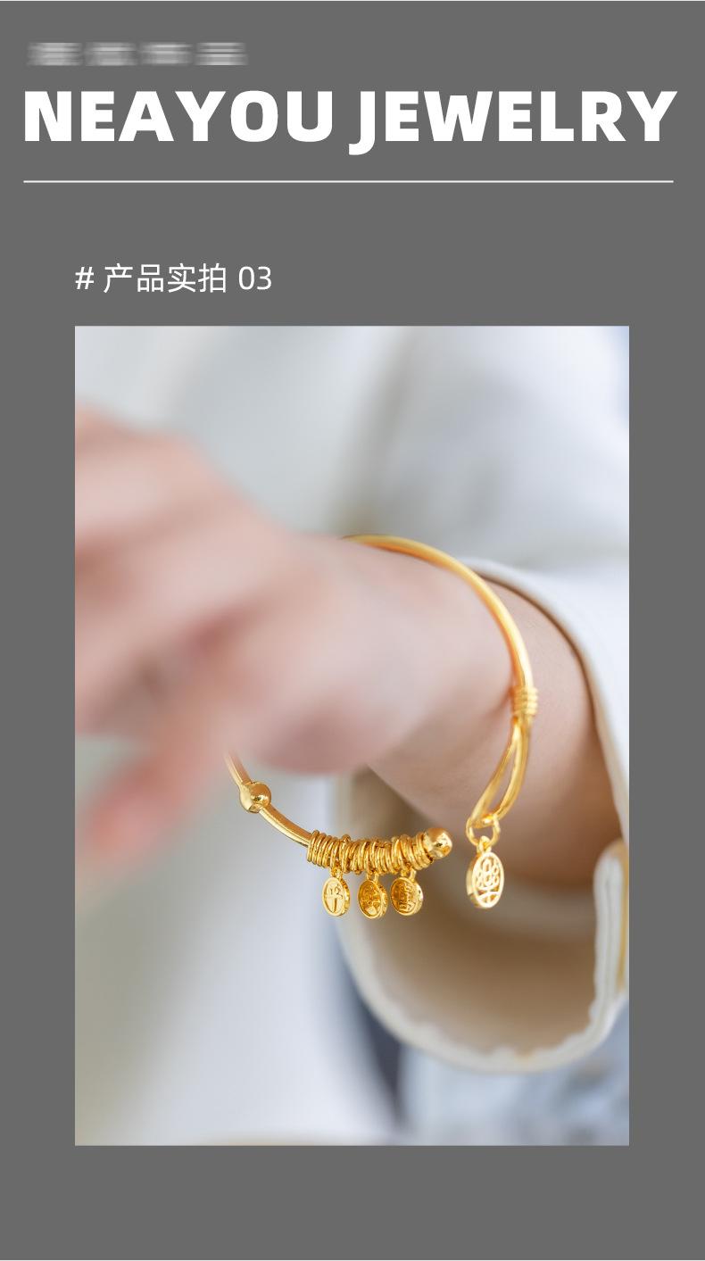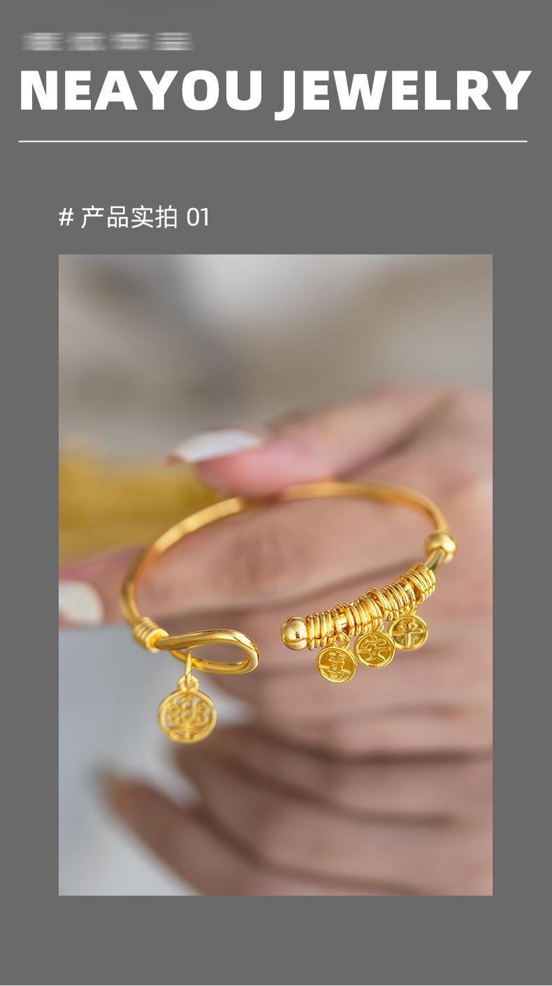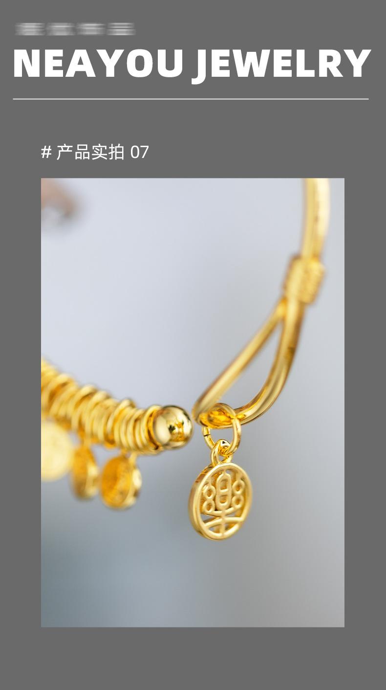 Nuevo Pulsera Colgante de Placa de Palabras Auspiciosas de Apertura Chinoiserie de Alta Gama Chapado en Oro de 24K Paz y Alegría Pulsera para Mujer