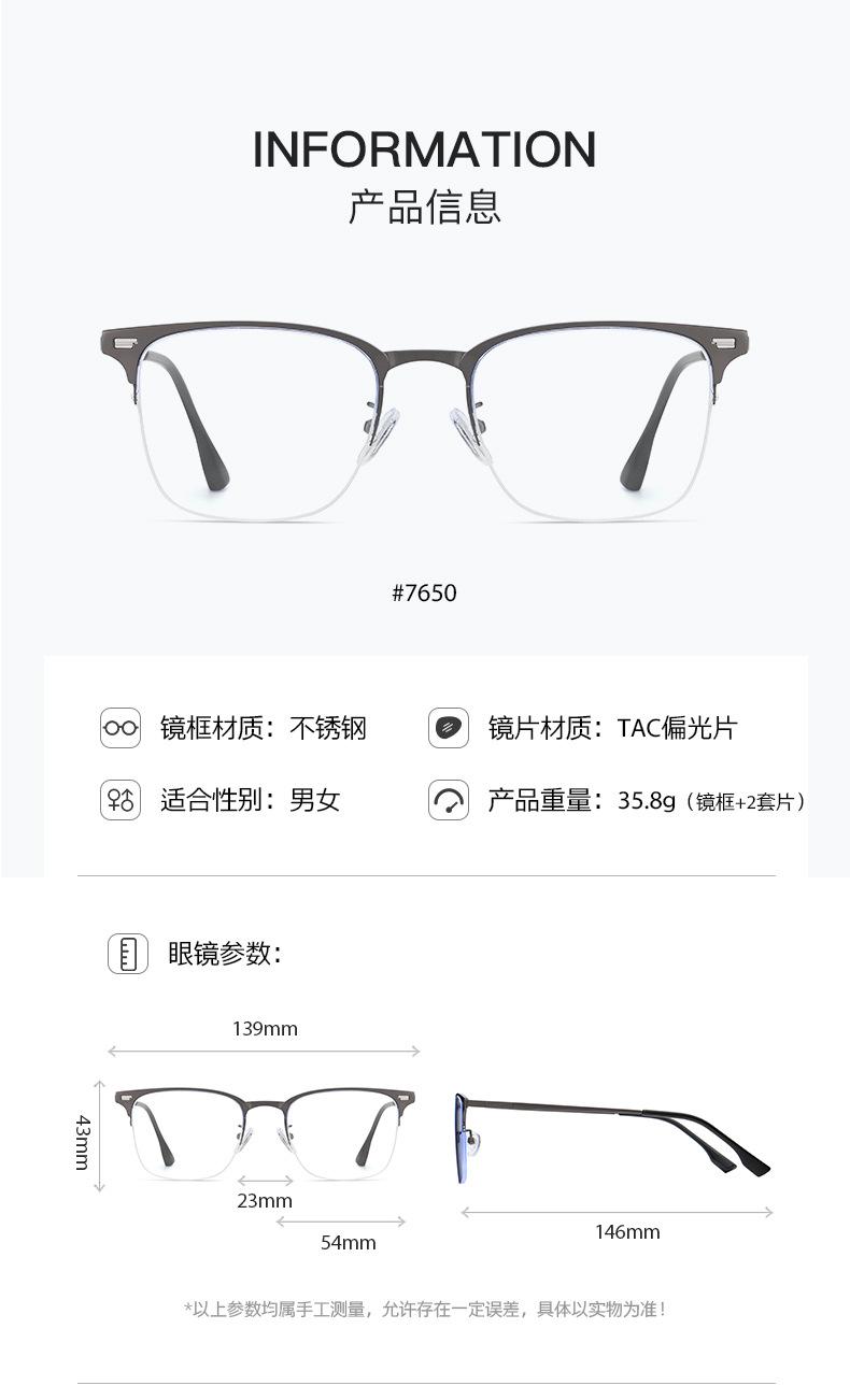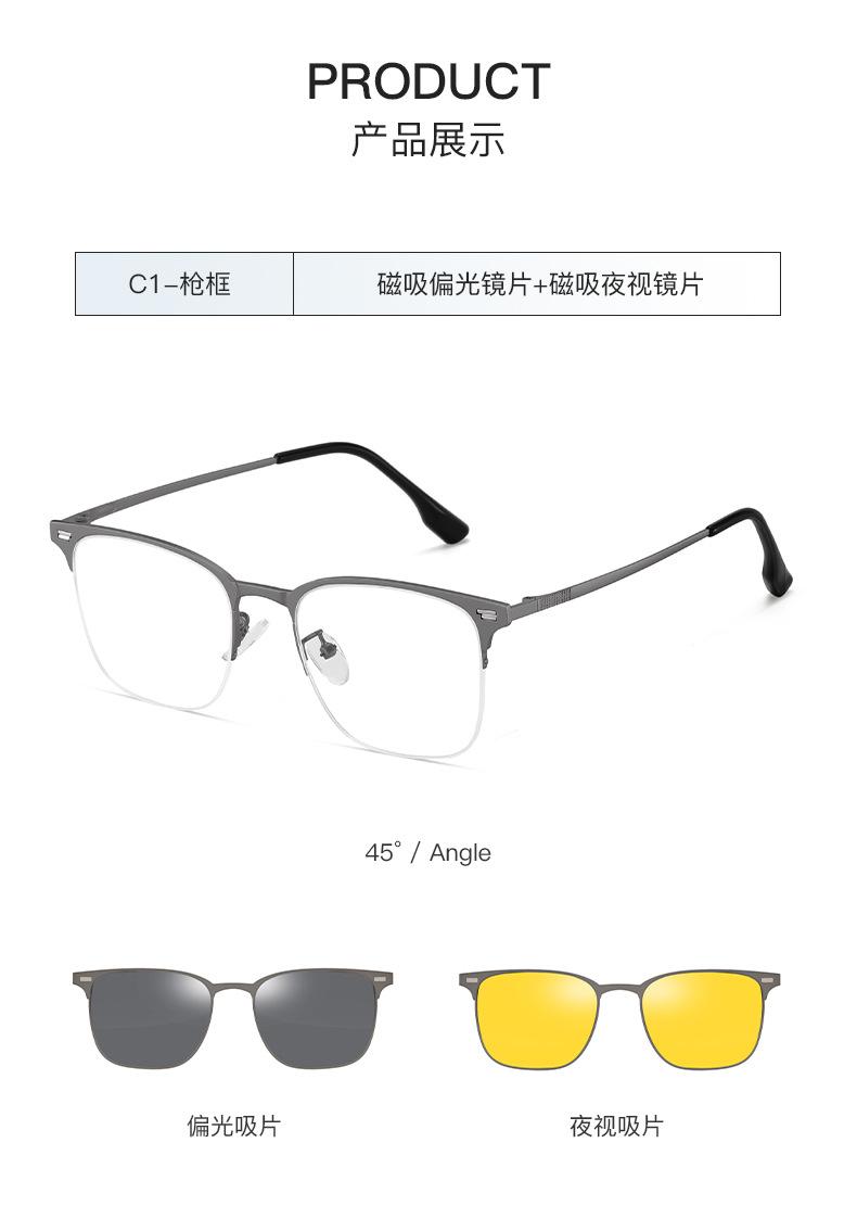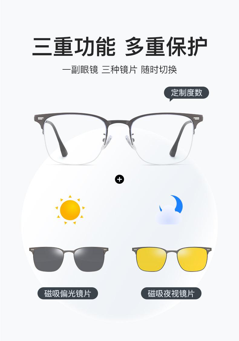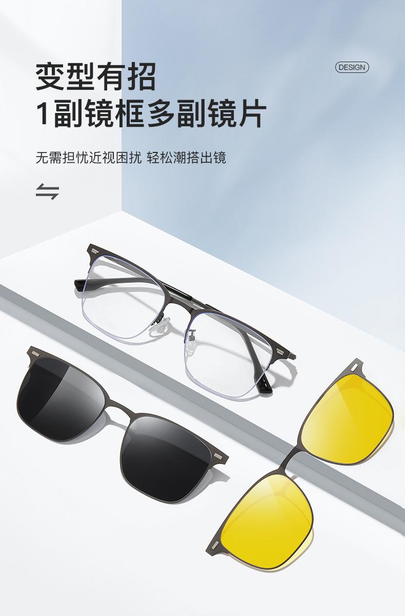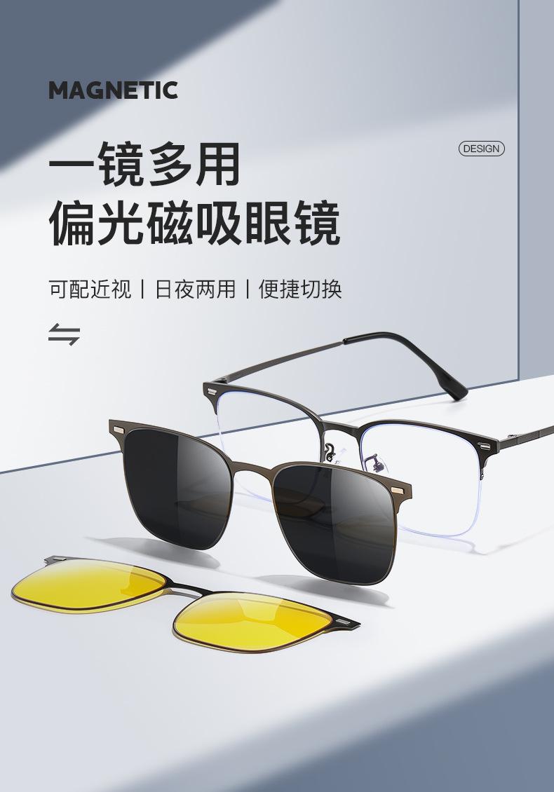 Gafas de sol para hombre 1.1 polarizadas juego magnético gafas de sol se pueden equipar con montura para gafas de miopía luz anti-azul media montura 7650