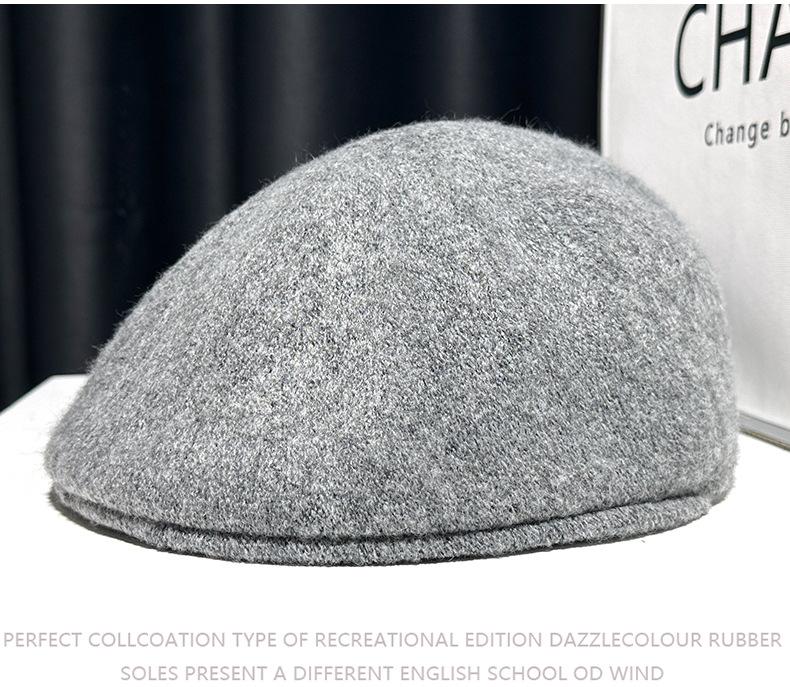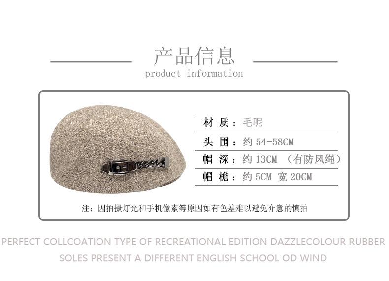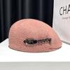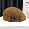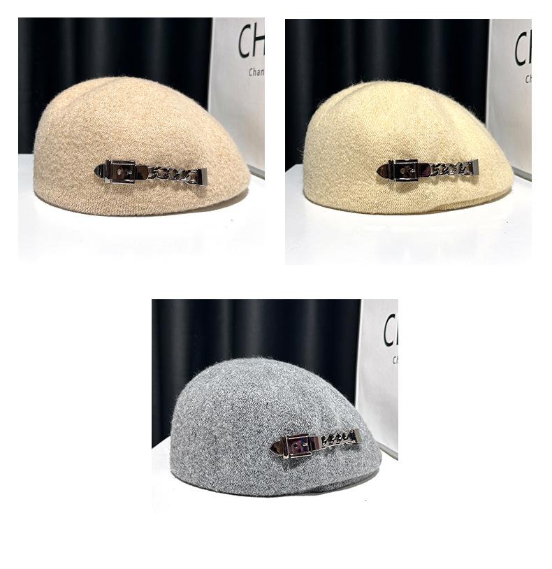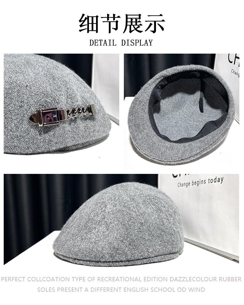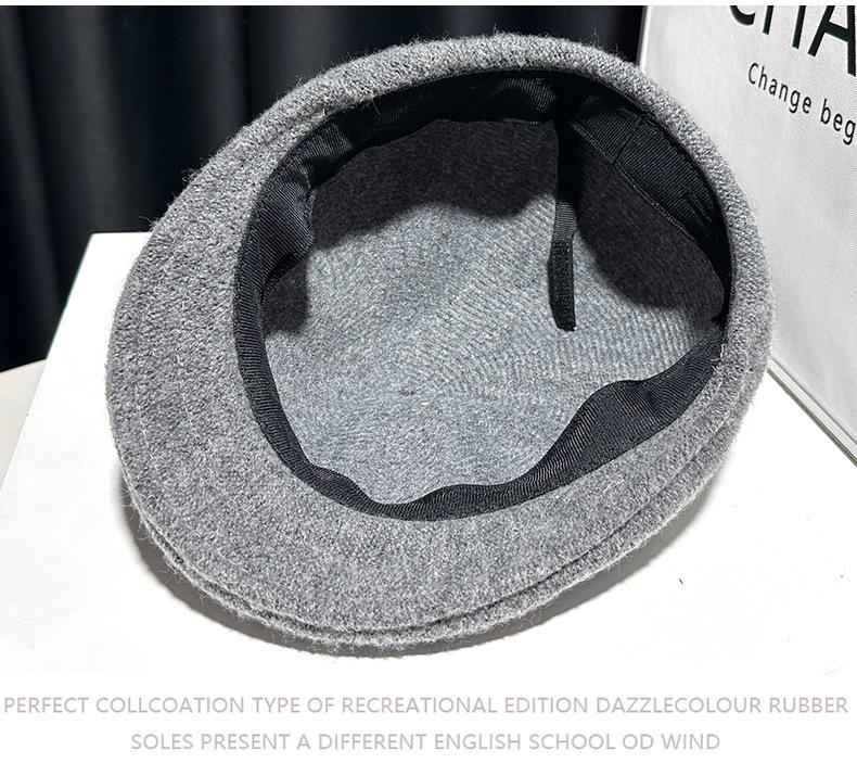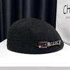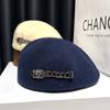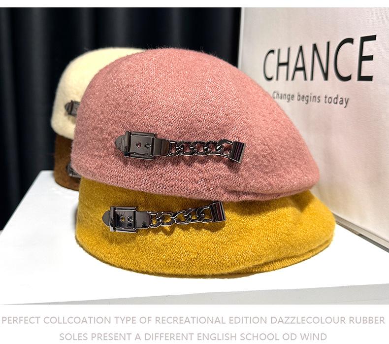 Boina de mezcla de lana para mujer primavera y otoño sombrero negro elegante red de cadena sombrero rojo que hace que la cara se vea pequeña anti-desgaste sombrero hacia adelante