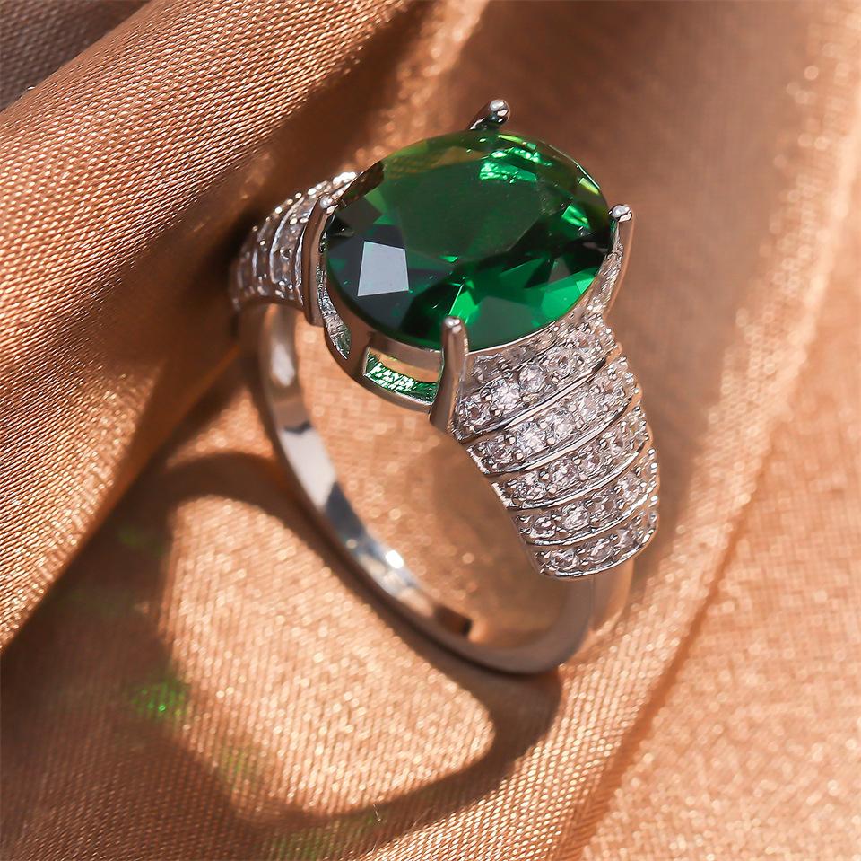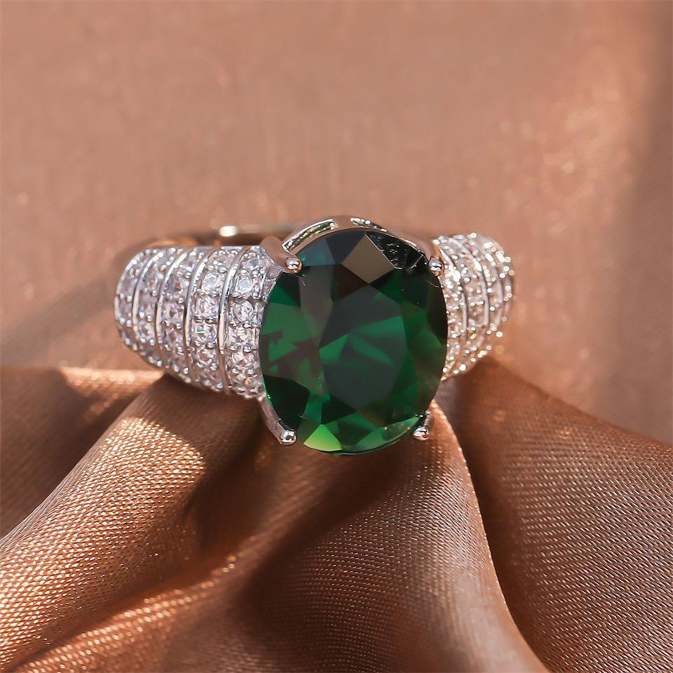 Anillo de mujer RAKOL transfronterizo retro de lujo ligero esmeralda en forma de huevo de cobre con incrustaciones de circonita al por mayor
