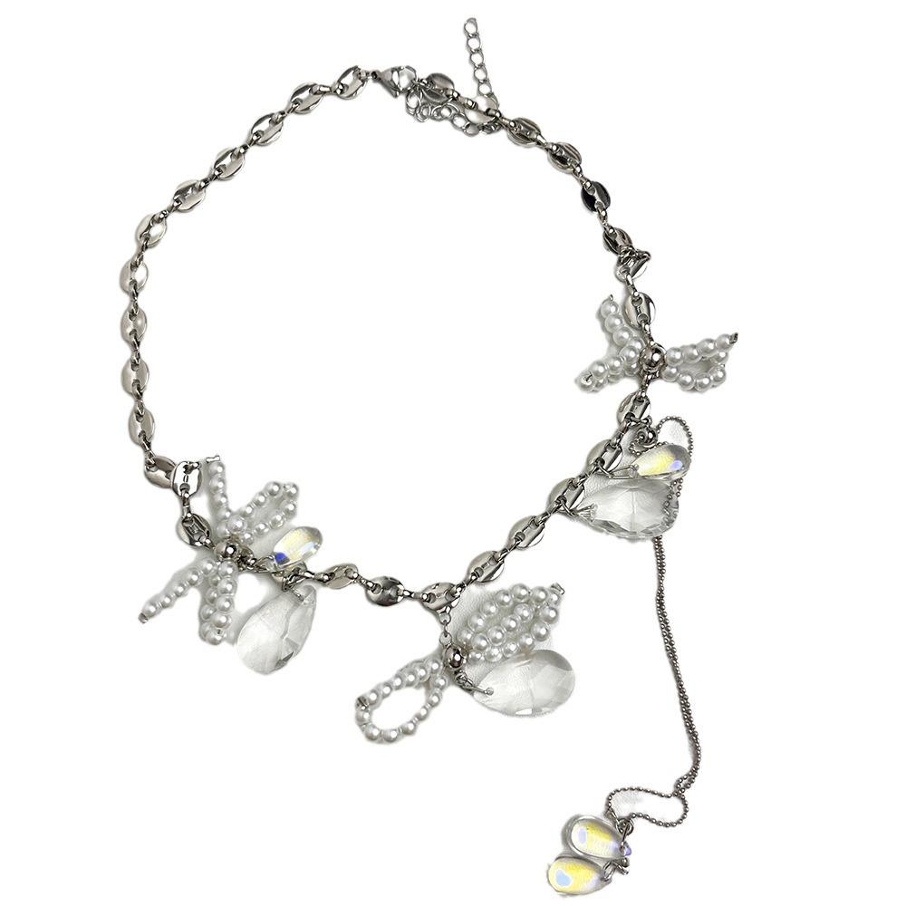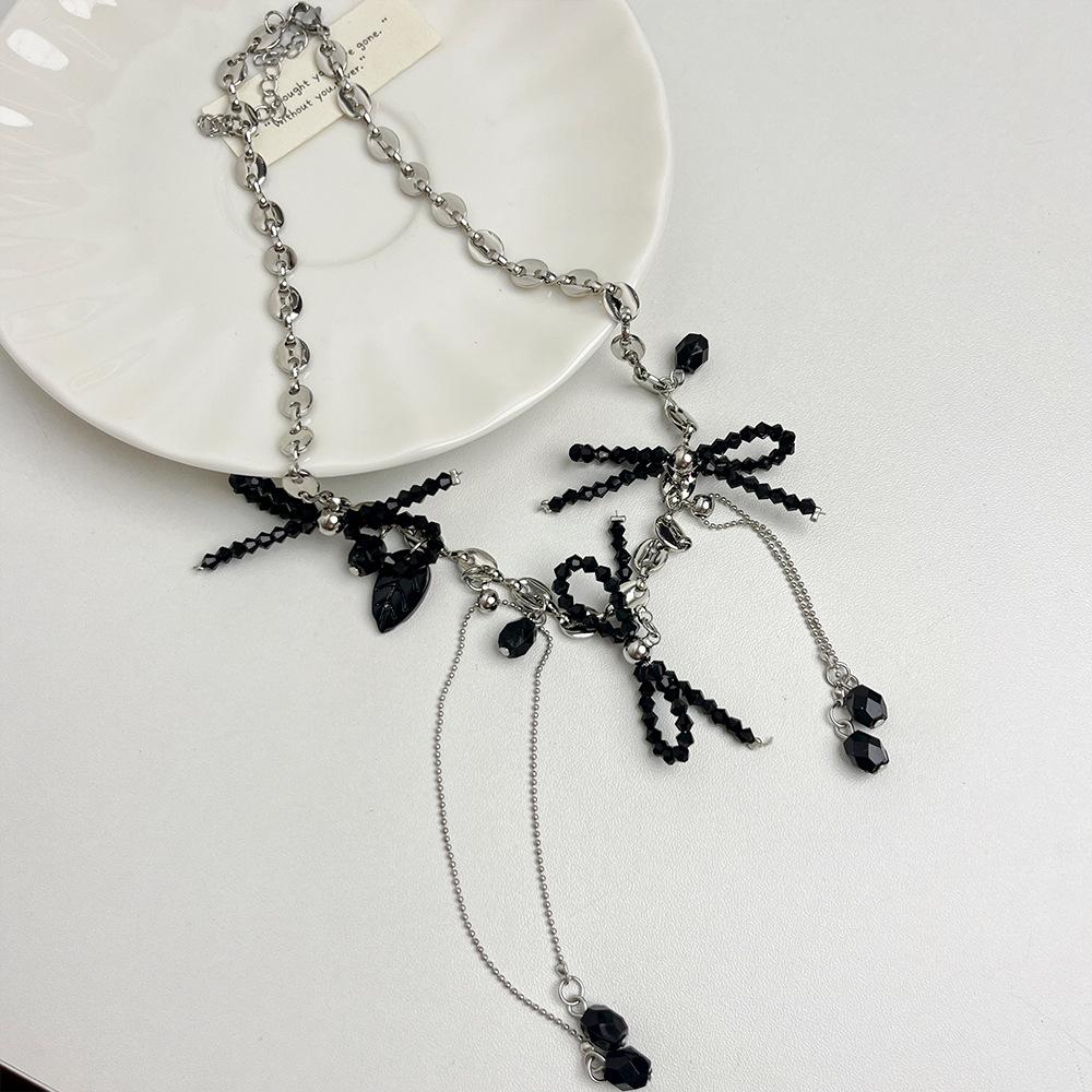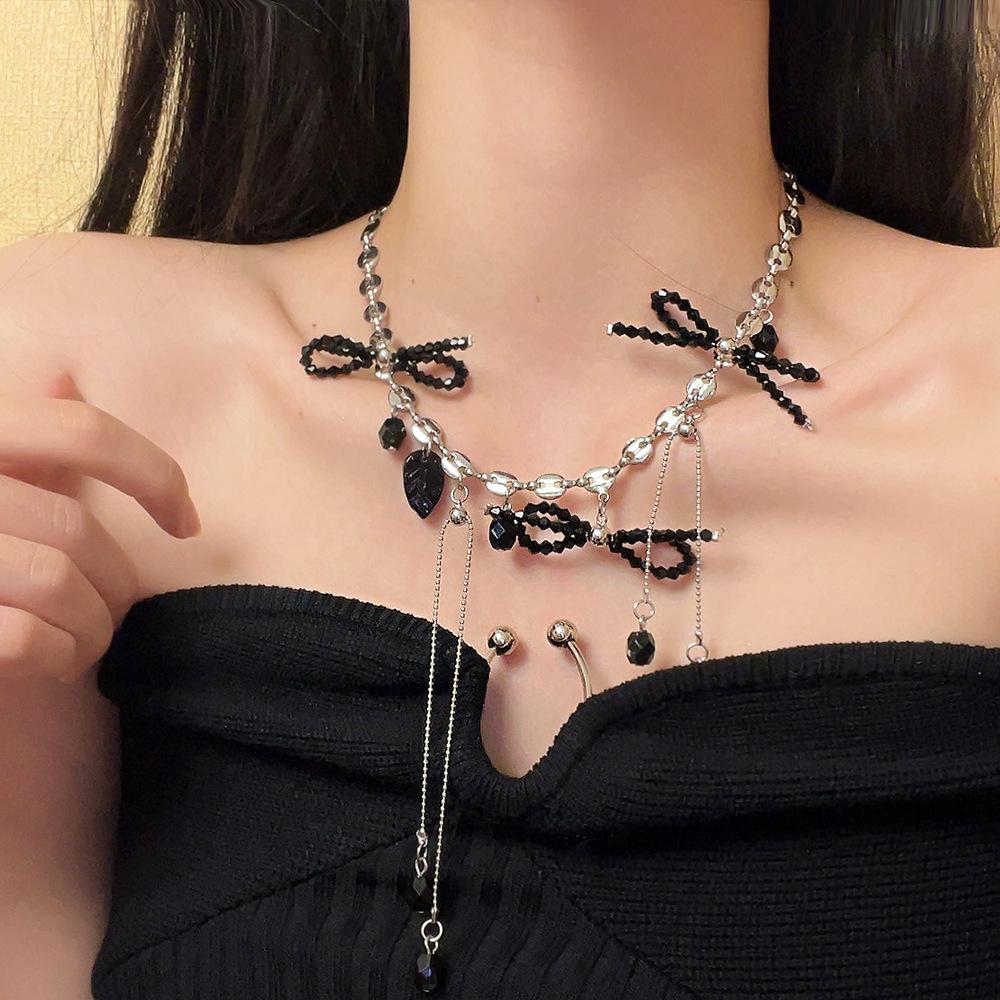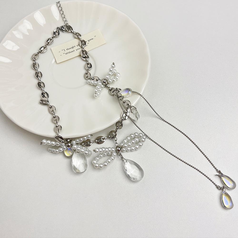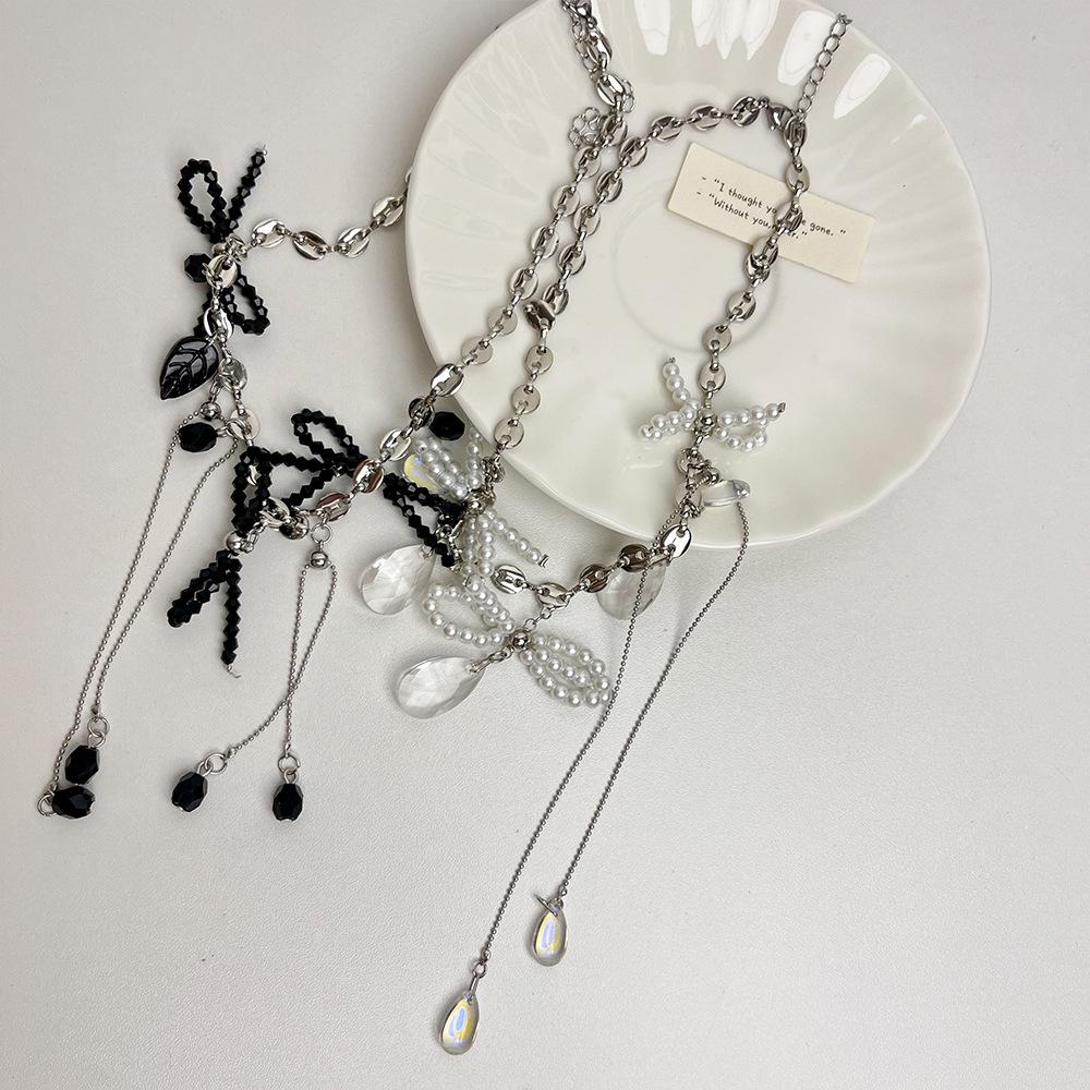 Collar con Colgante de Gota de Agua con Borla de Lazo con Cuentas para Mujer, Personalidad, Estilo Dulce y Cool, Elegante, Versátil, Cadena de Cuello, Accesorios
