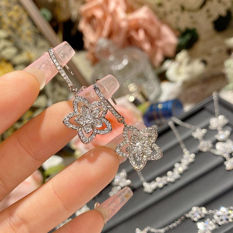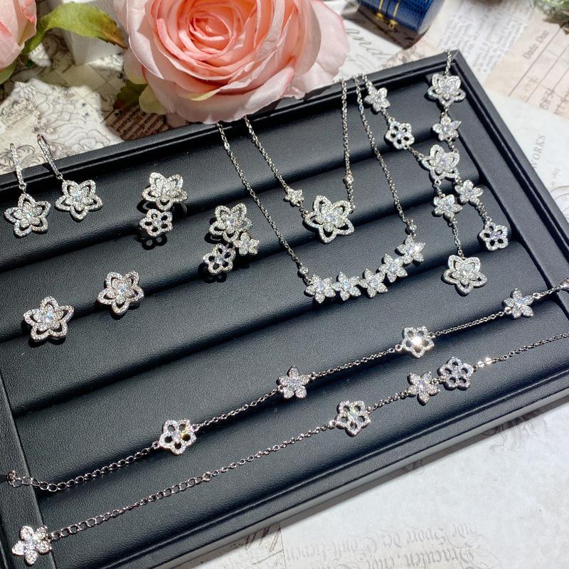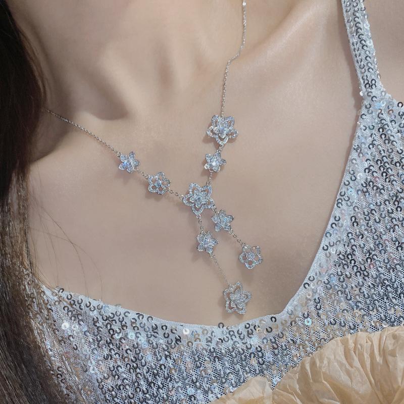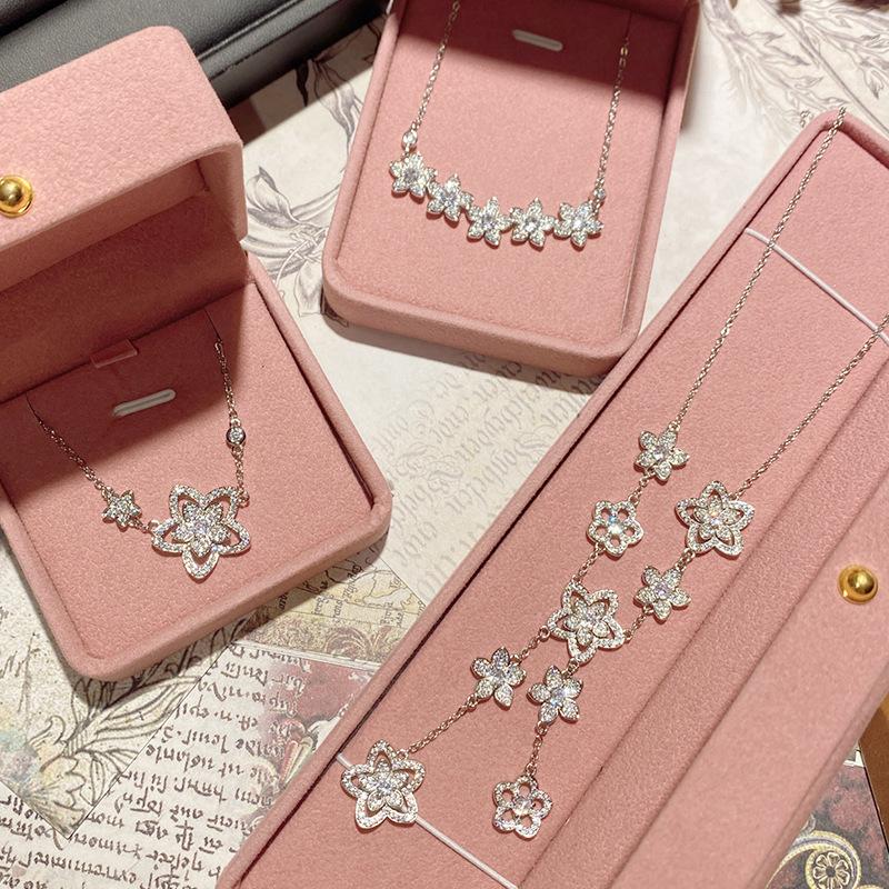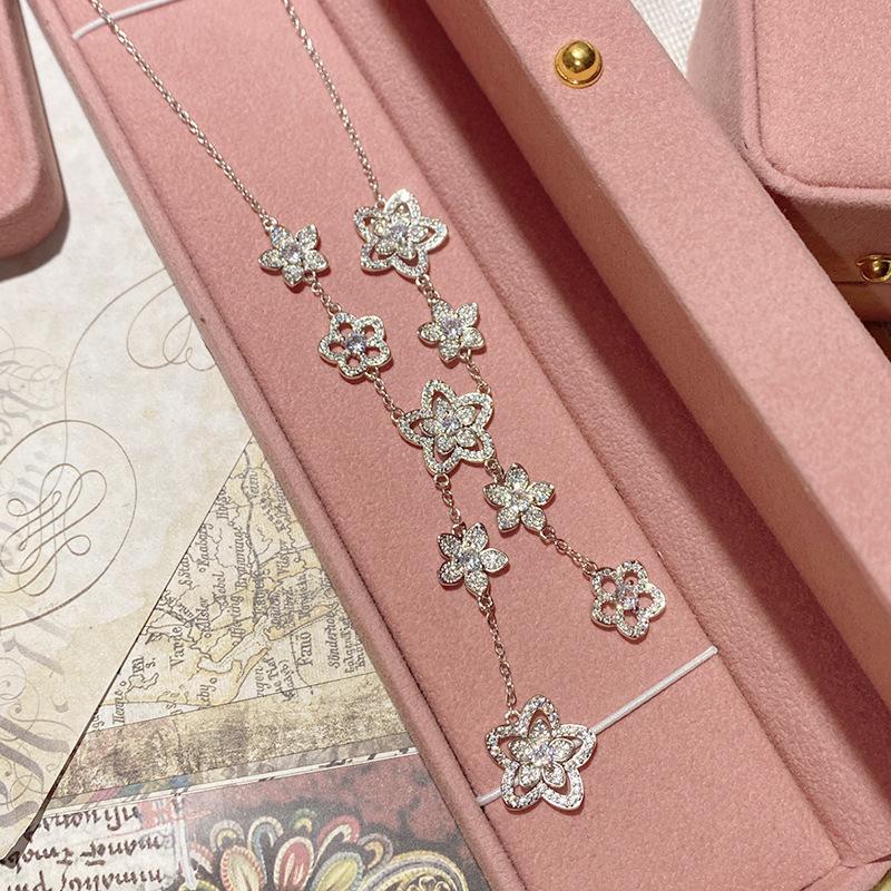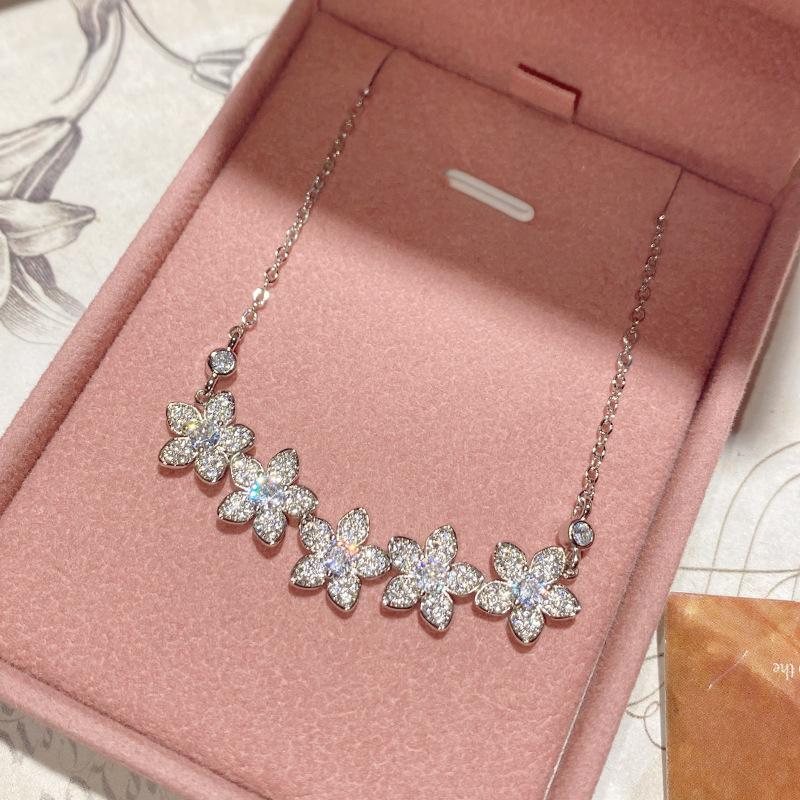 Collar de gemas de flores de camelia vintage, brillante, de alta calidad, de cinco piezas, para mujer, chapado en oro de 18 quilates, Princesa Frost