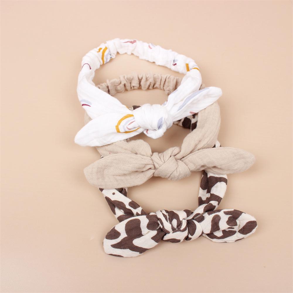 3 piezas de diademas de algodón puro con orejas de conejo para bebé, accesorios para el cabello con lazo para puerta para niñas europeas y americanas, diadema para niños