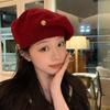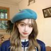 Boina de lana para mujer, otoño e invierno, estilo coreano, británico, retro, color caramelo, gorro de pintor de lana, gorro de cabeza grande.