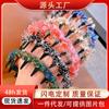 Versión coreana de organza perlada, círculo de intestino grueso, súper hada, estilo francés simple, cola de caballo grande, cabeza de bola, banda de goma, red, cuerda de pelo rojo para mujer