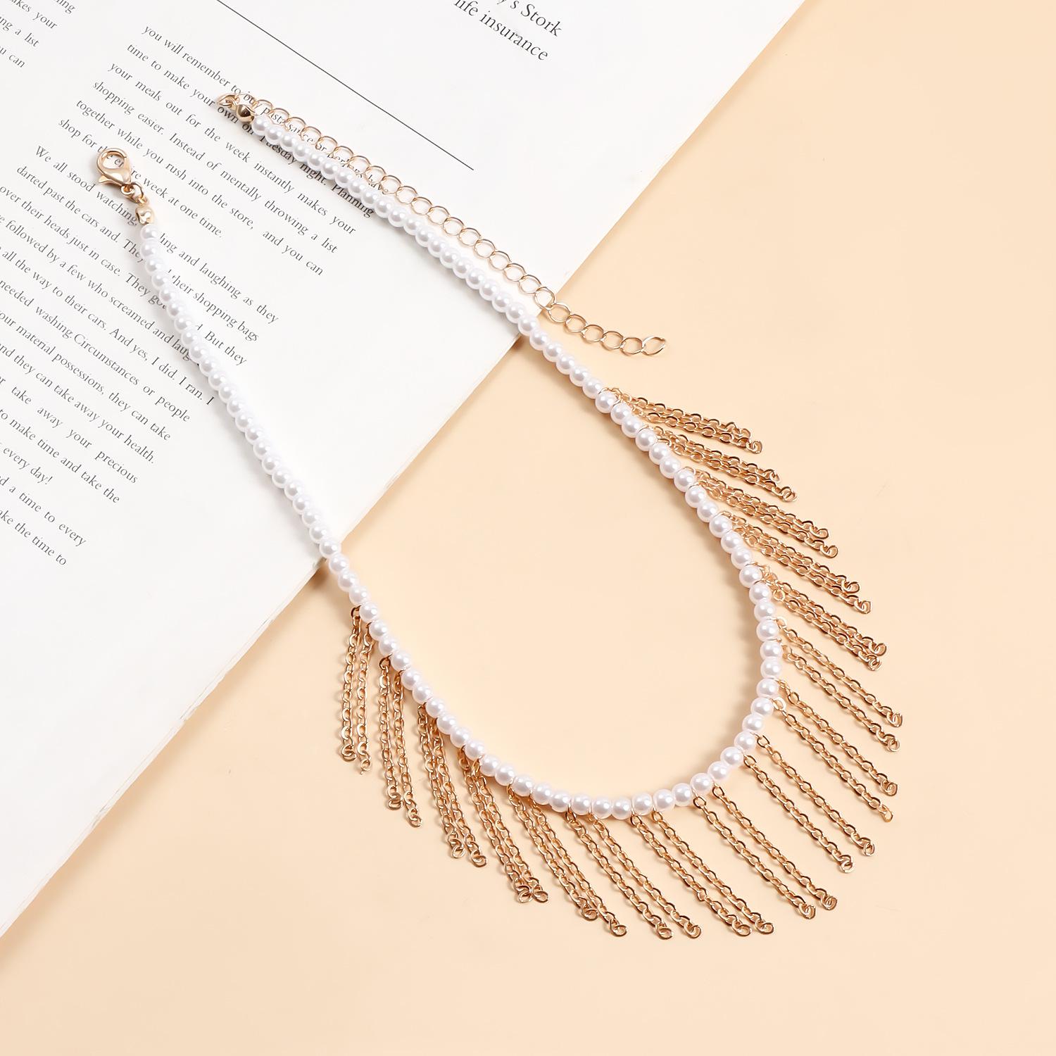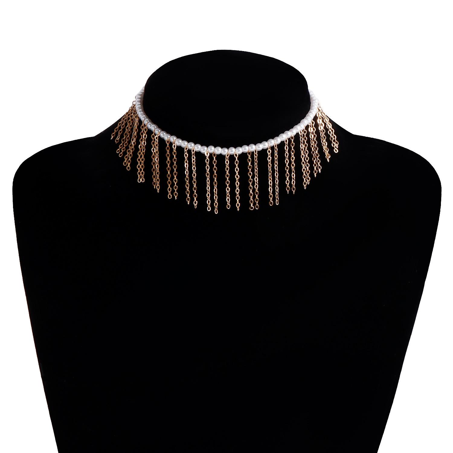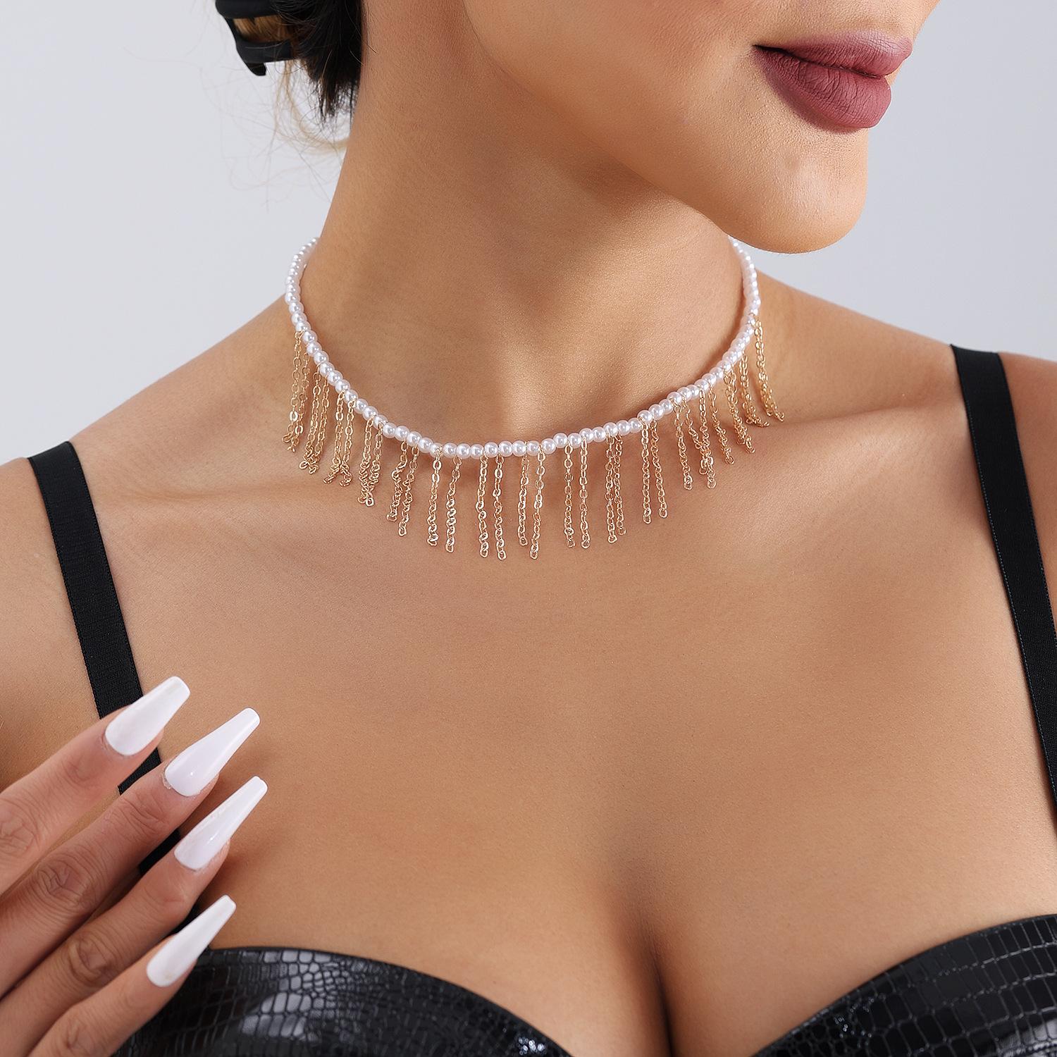 Joyería transfronteriza europea y americana Mini collar de cadena fina de oro con borlas de perlas de imitación de tamaño pequeño para mujer Collar estilo Chanel para mujer