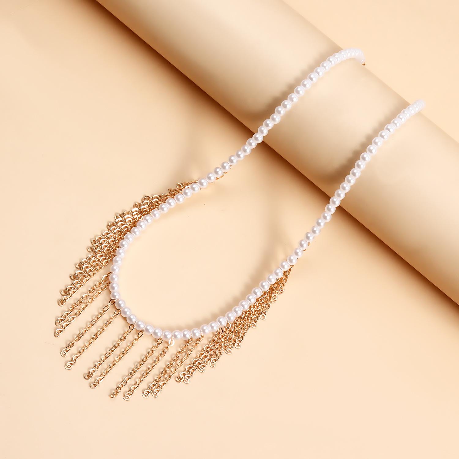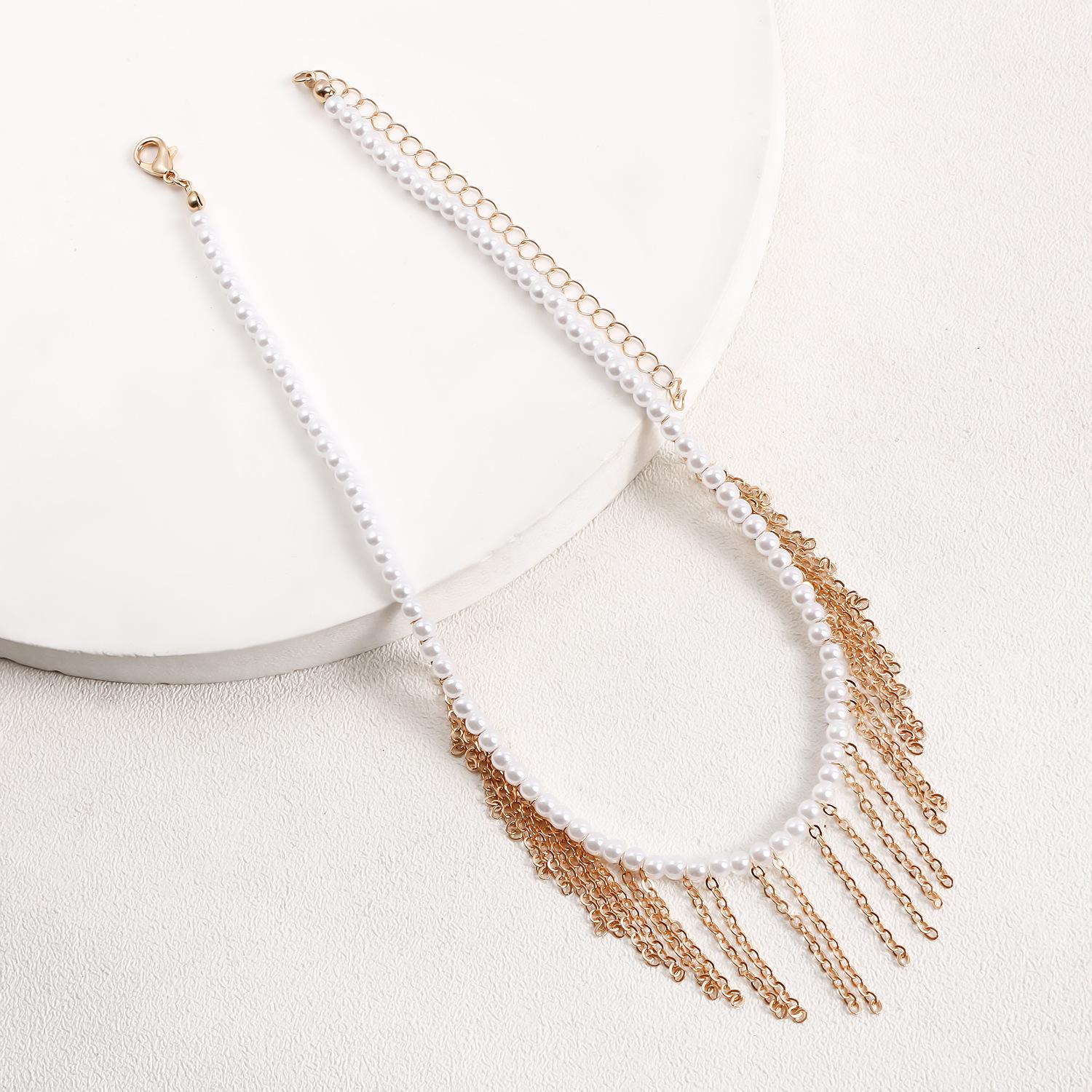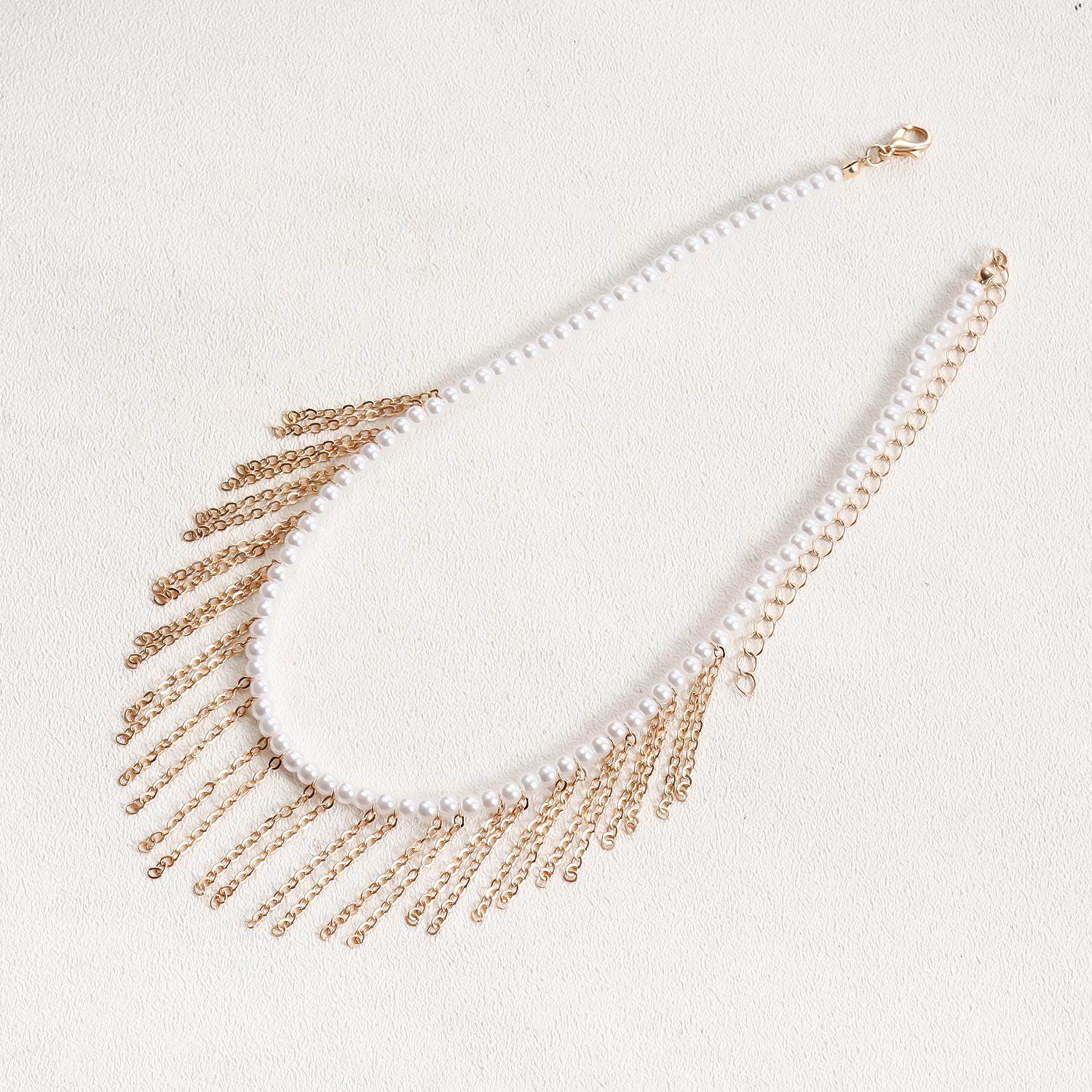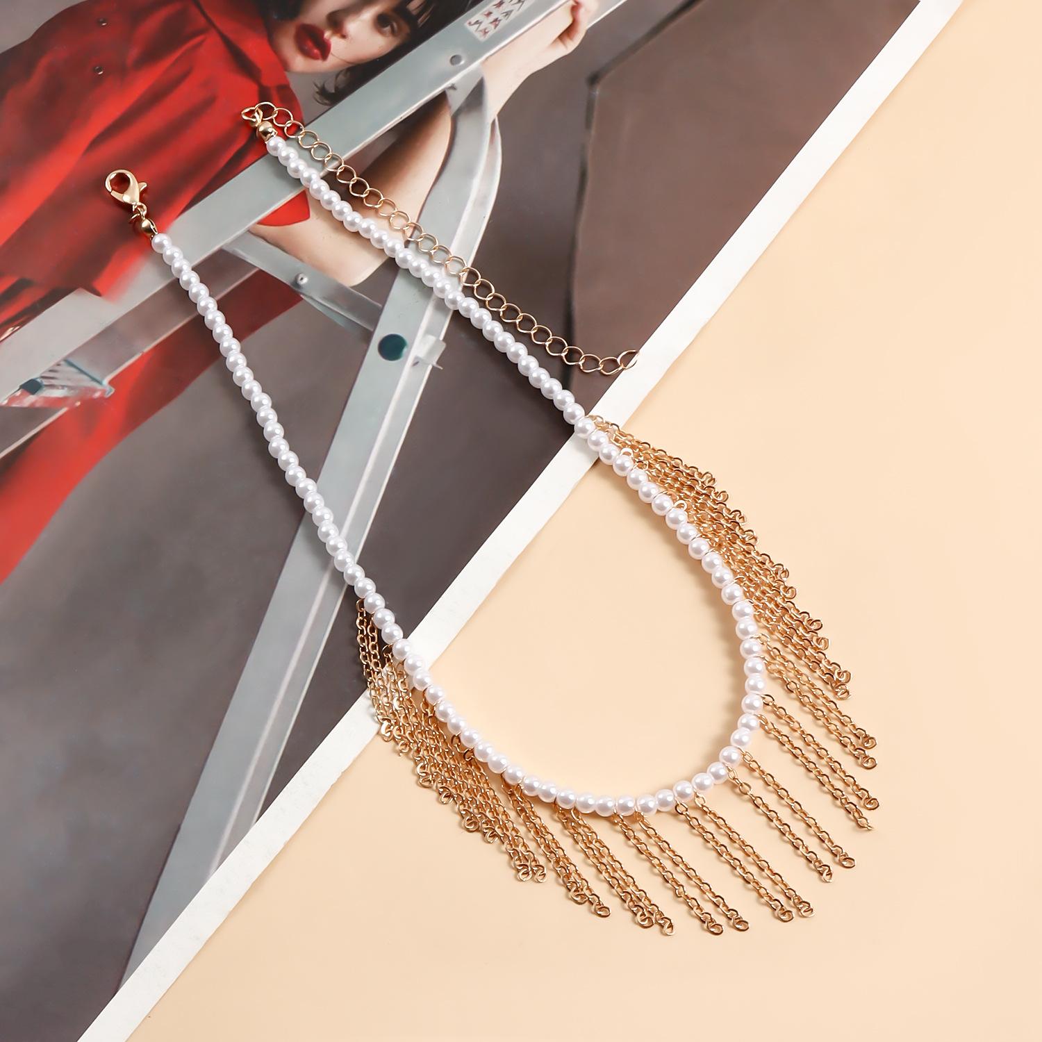 Joyería transfronteriza europea y americana Mini collar de cadena fina de oro con borlas de perlas de imitación de tamaño pequeño para mujer Collar estilo Chanel para mujer
