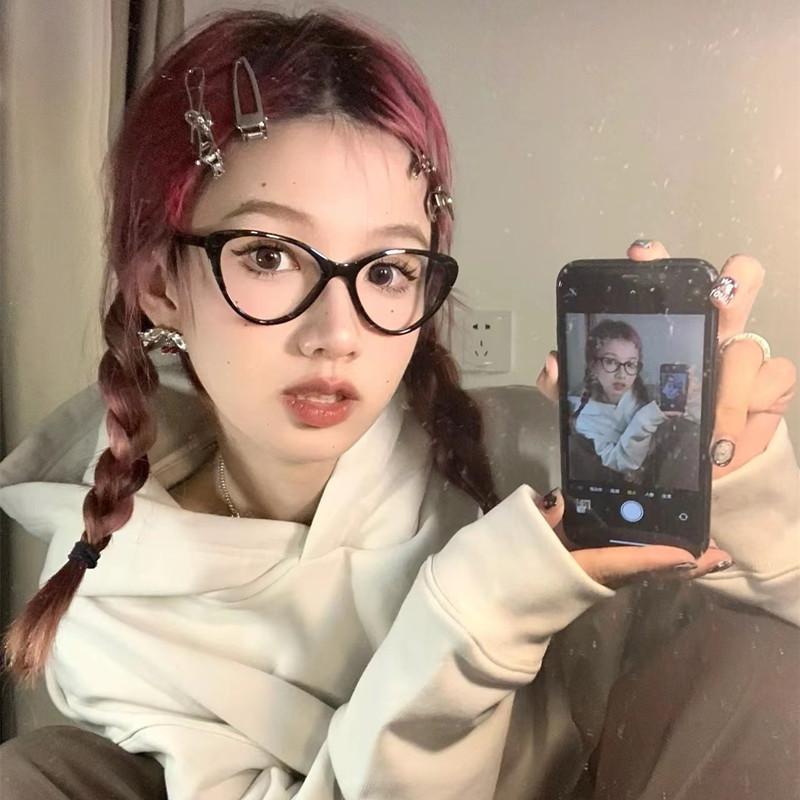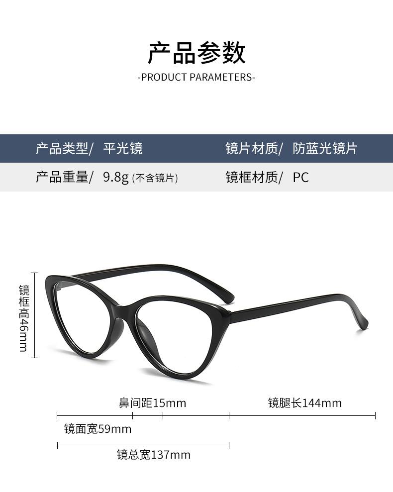 Gafas Retro Cat-Eye con Montura Negra, Personalizadas y a la Moda, Se Pueden Equipar con Monturas para Gafas para Miopía con Receta, Gafas Planas Ultraligeras, Gafas Planas que Estilizan el Rostro