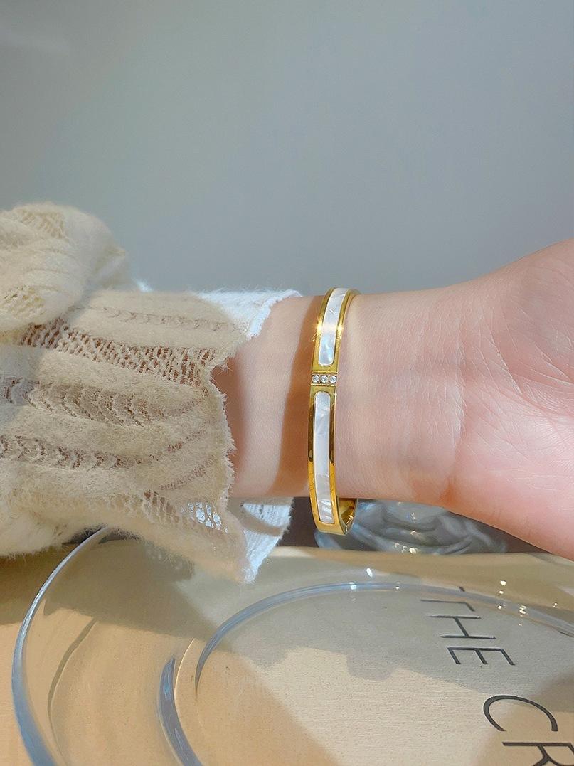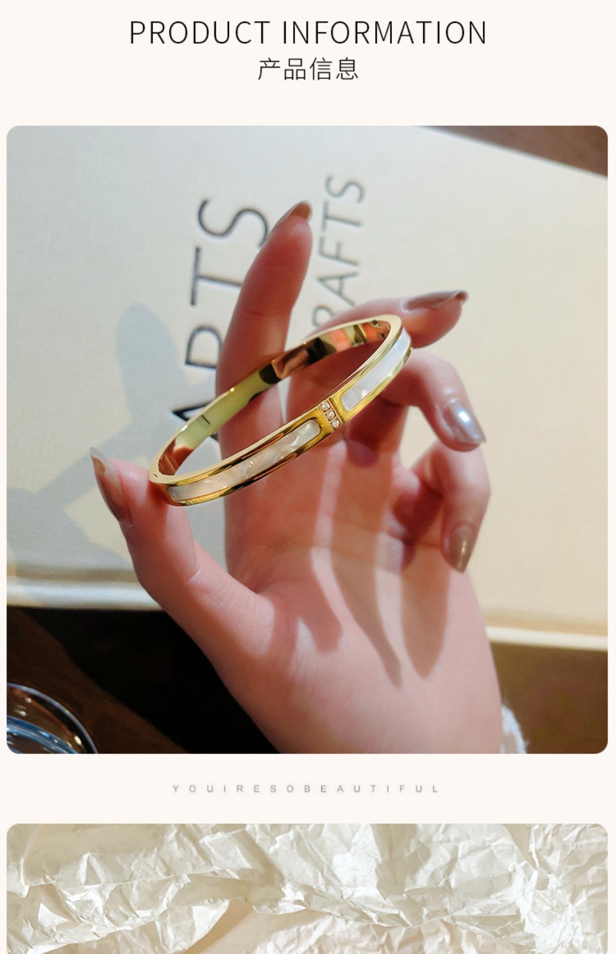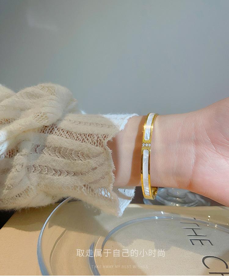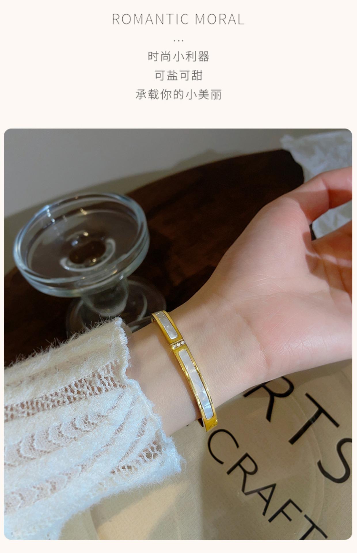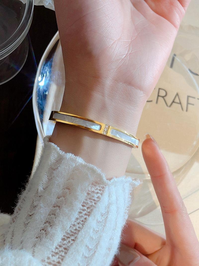 Pulsera europea y americana de oro de 18 quilates con concha para mujer, diseño de nicho de lujo ligero, pulsera de alta gama con incrustaciones de diamantes, acero de titanio que no se desvanece