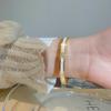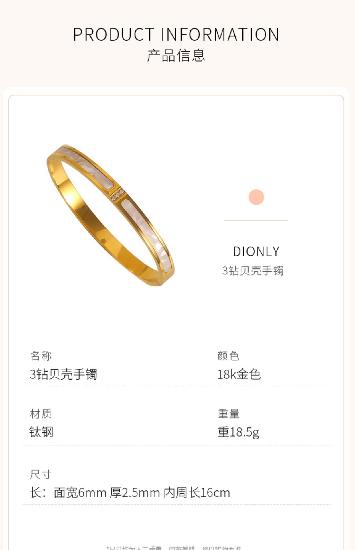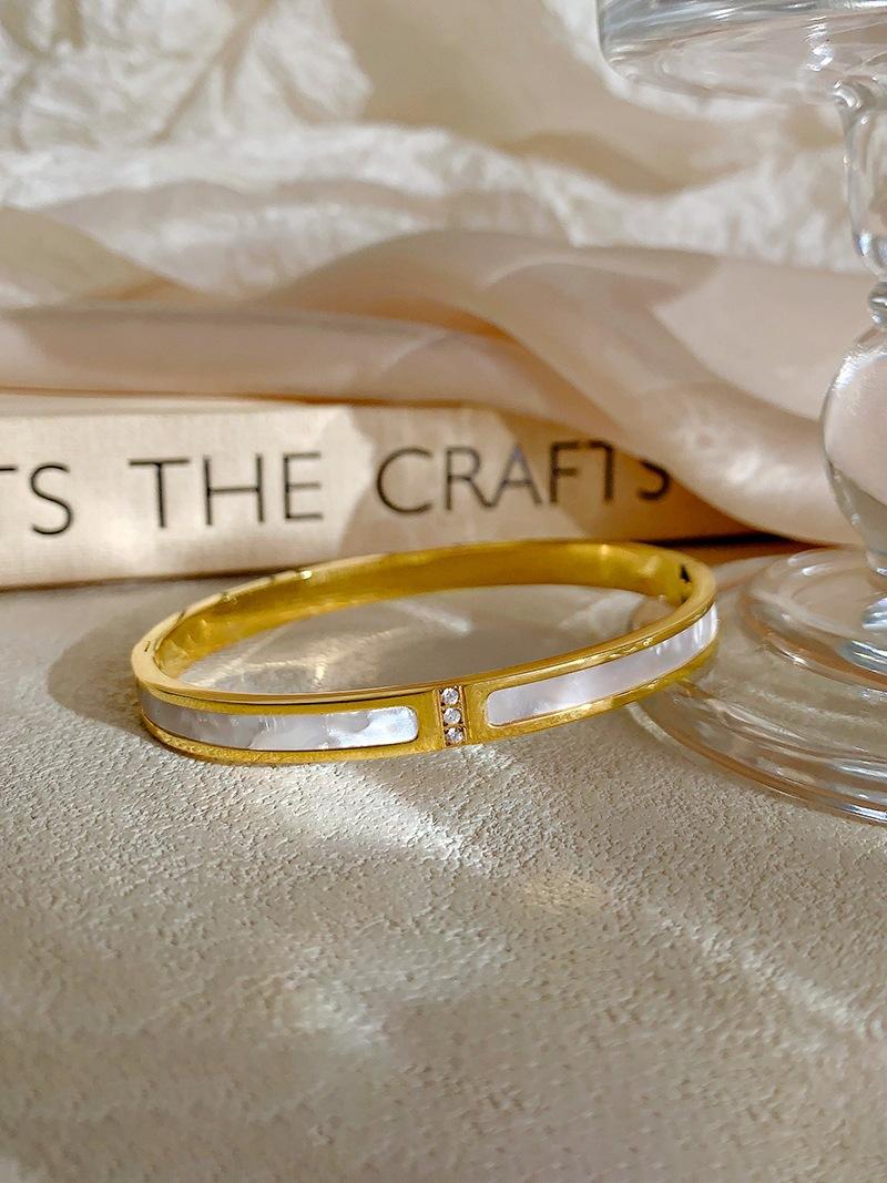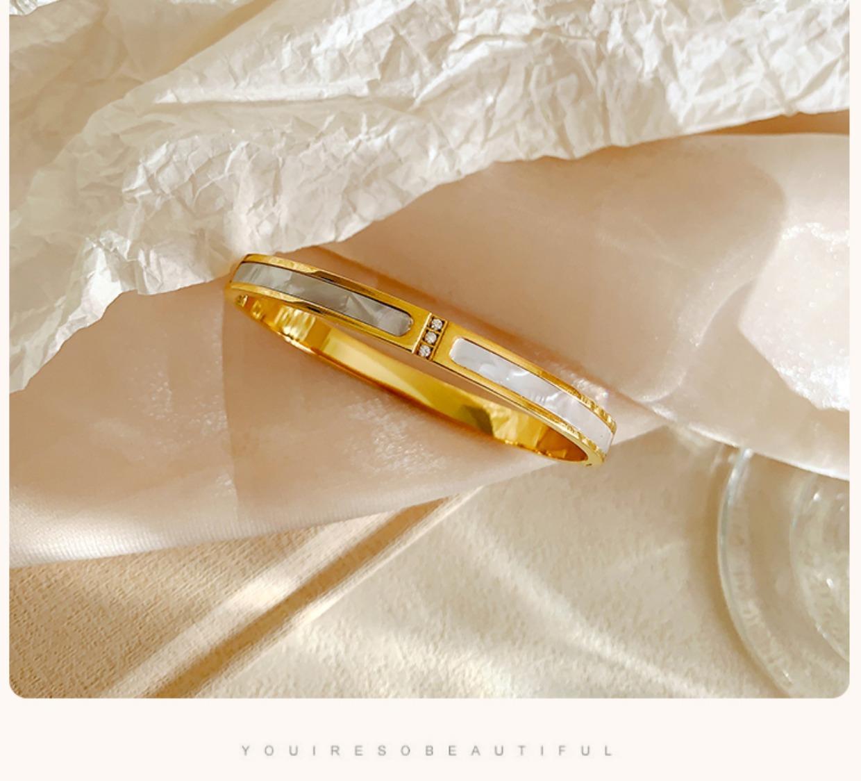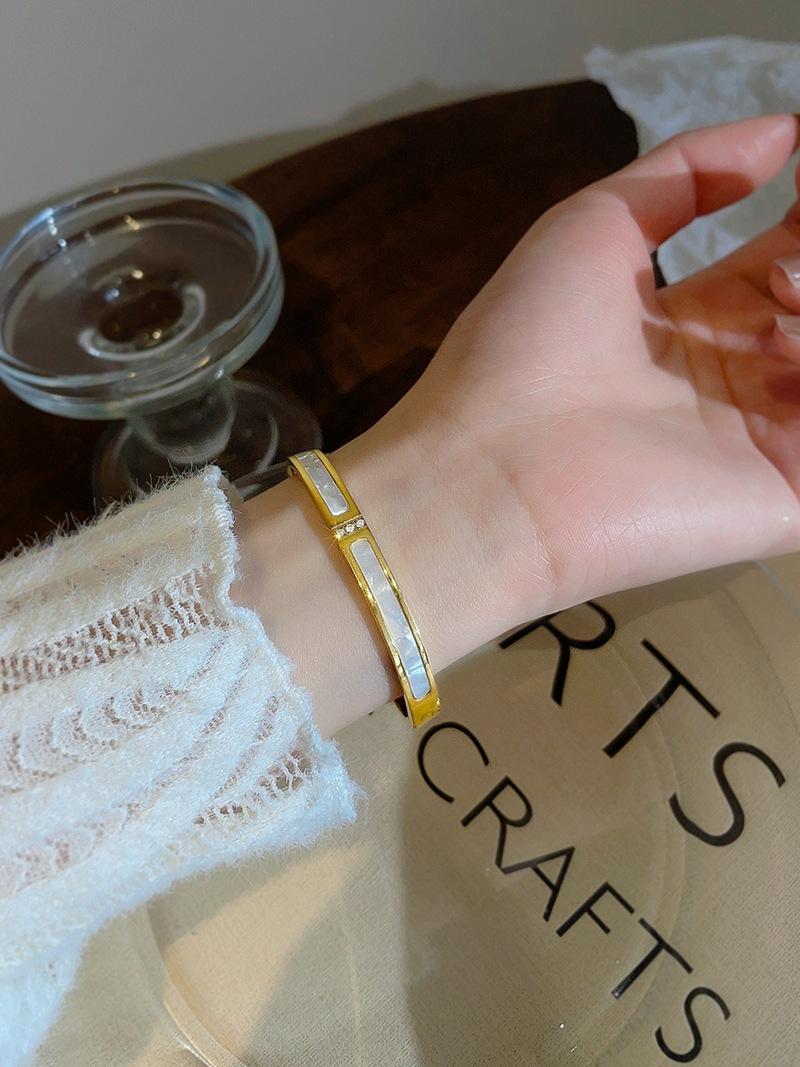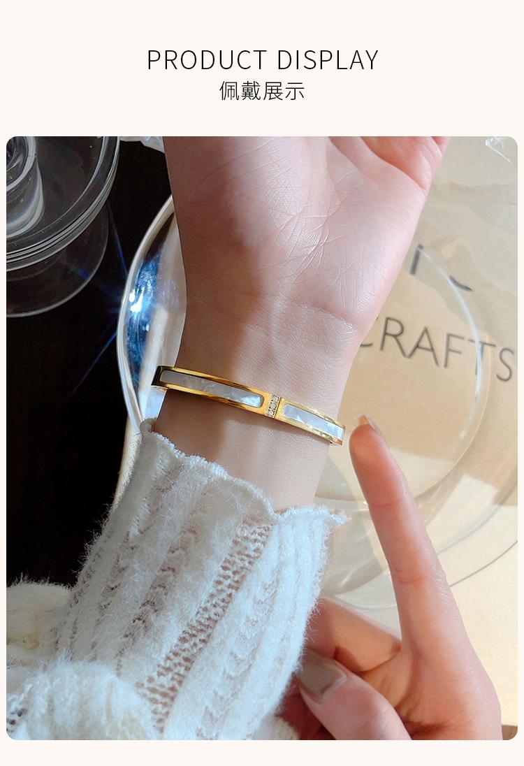 Pulsera europea y americana de oro de 18 quilates con concha para mujer, diseño de nicho de lujo ligero, pulsera de alta gama con incrustaciones de diamantes, acero de titanio que no se desvanece