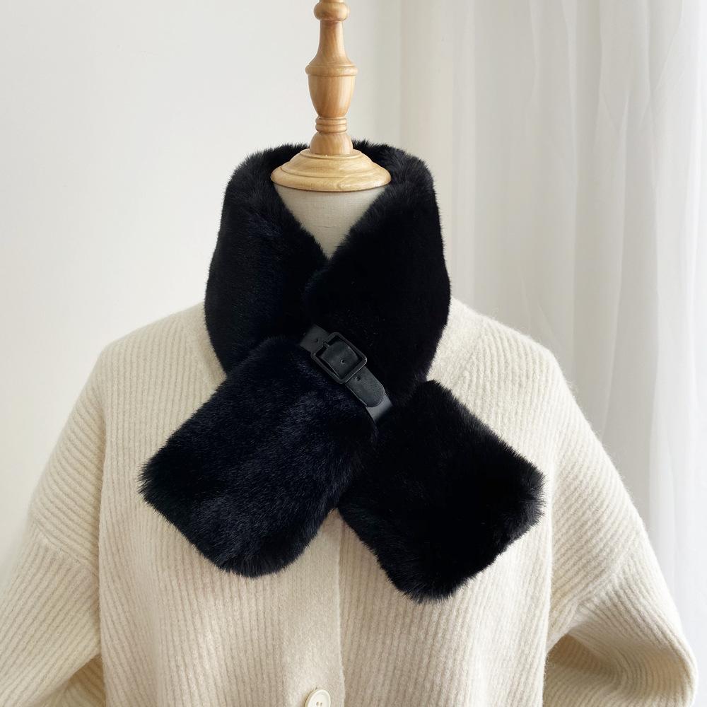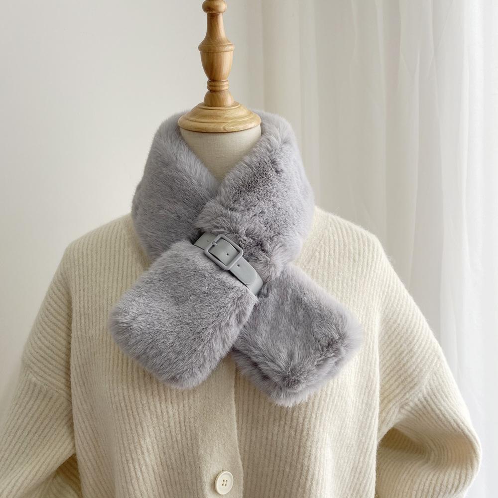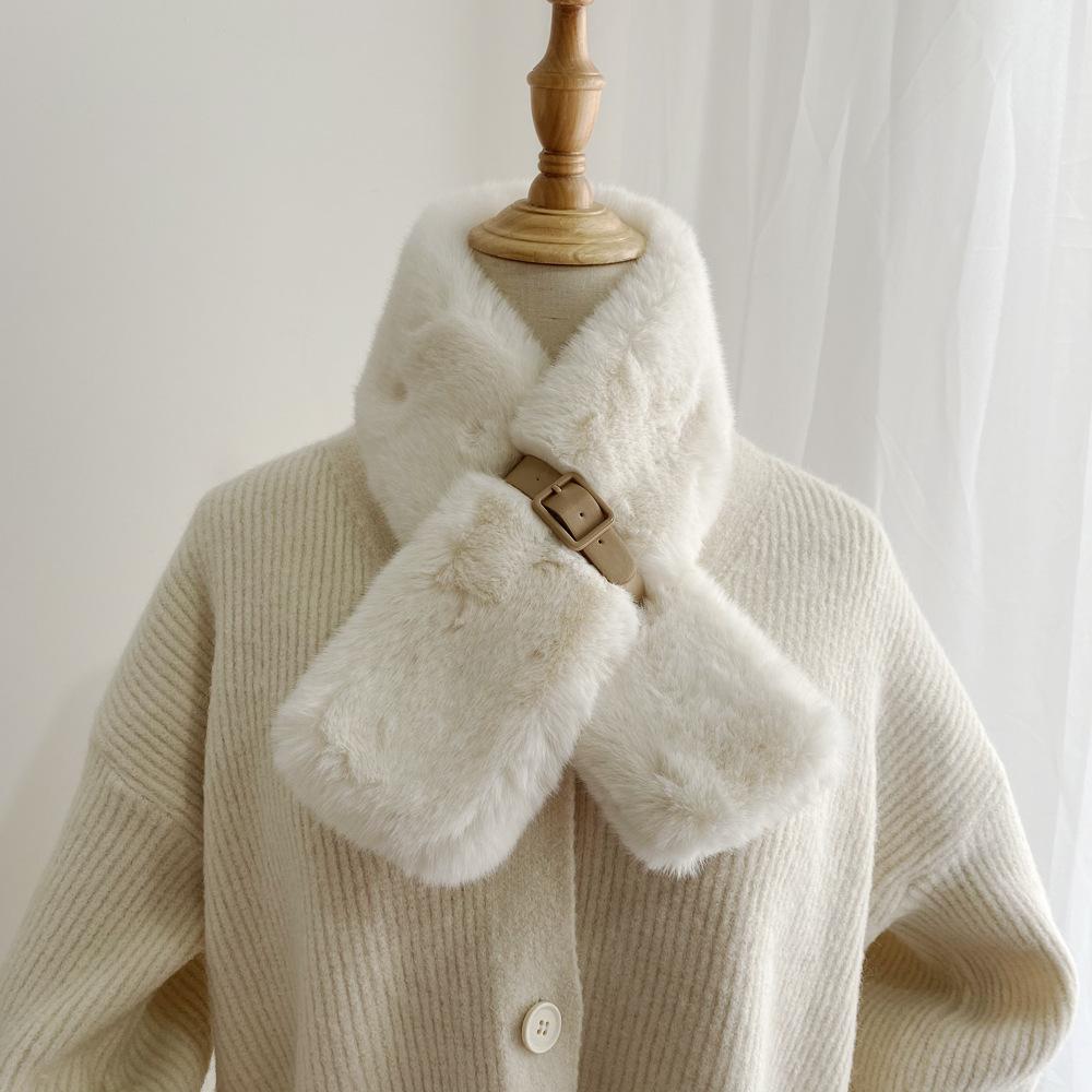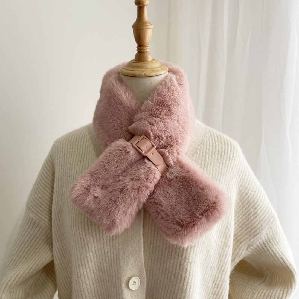 Otoño e Invierno protección para el cuello bufanda cálida femenina estilo coreano imitación lana de conejo perezoso bufanda cruzada invierno engrosada felpa bufanda de estudiante femenina