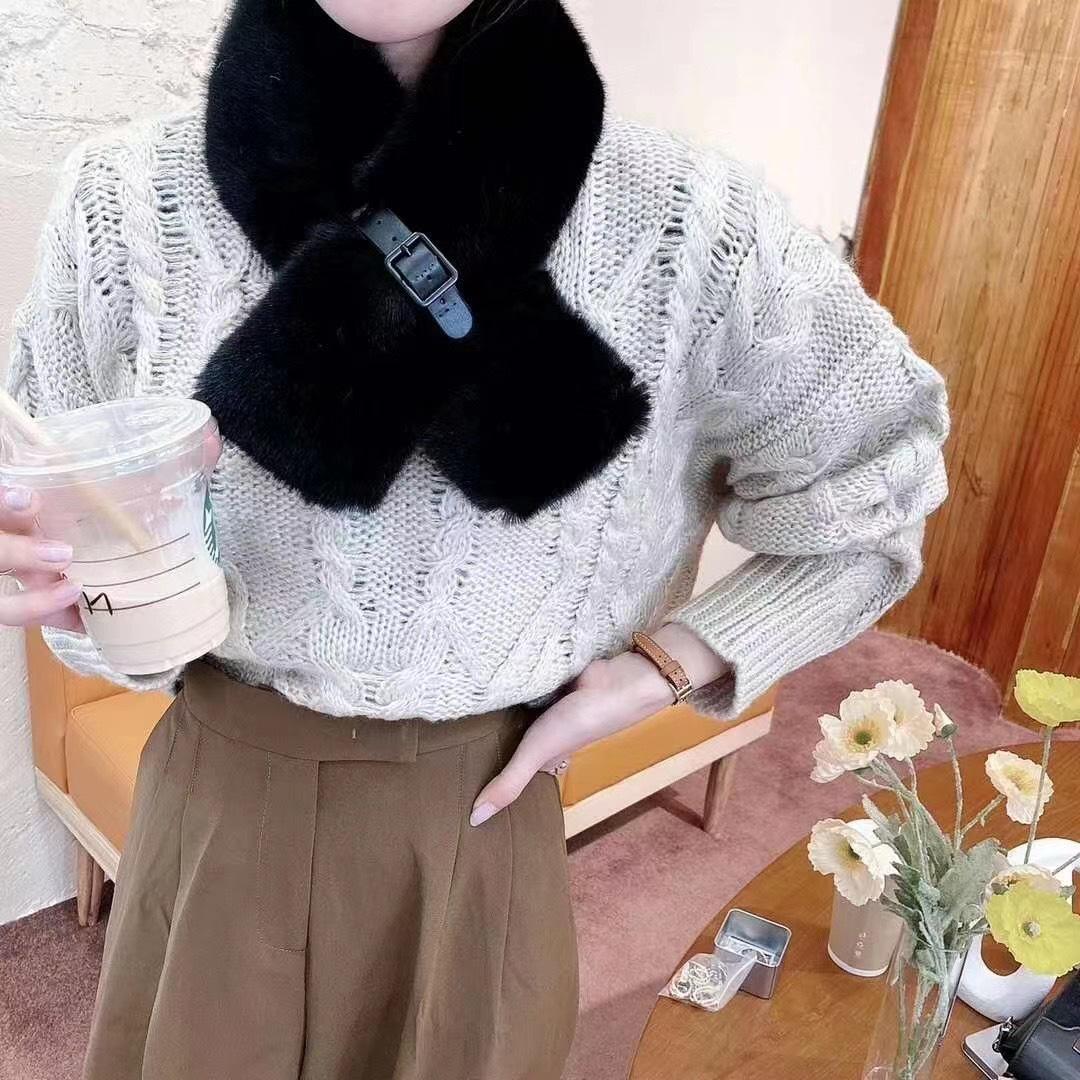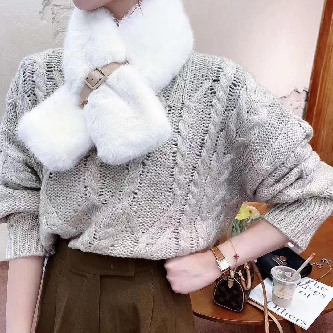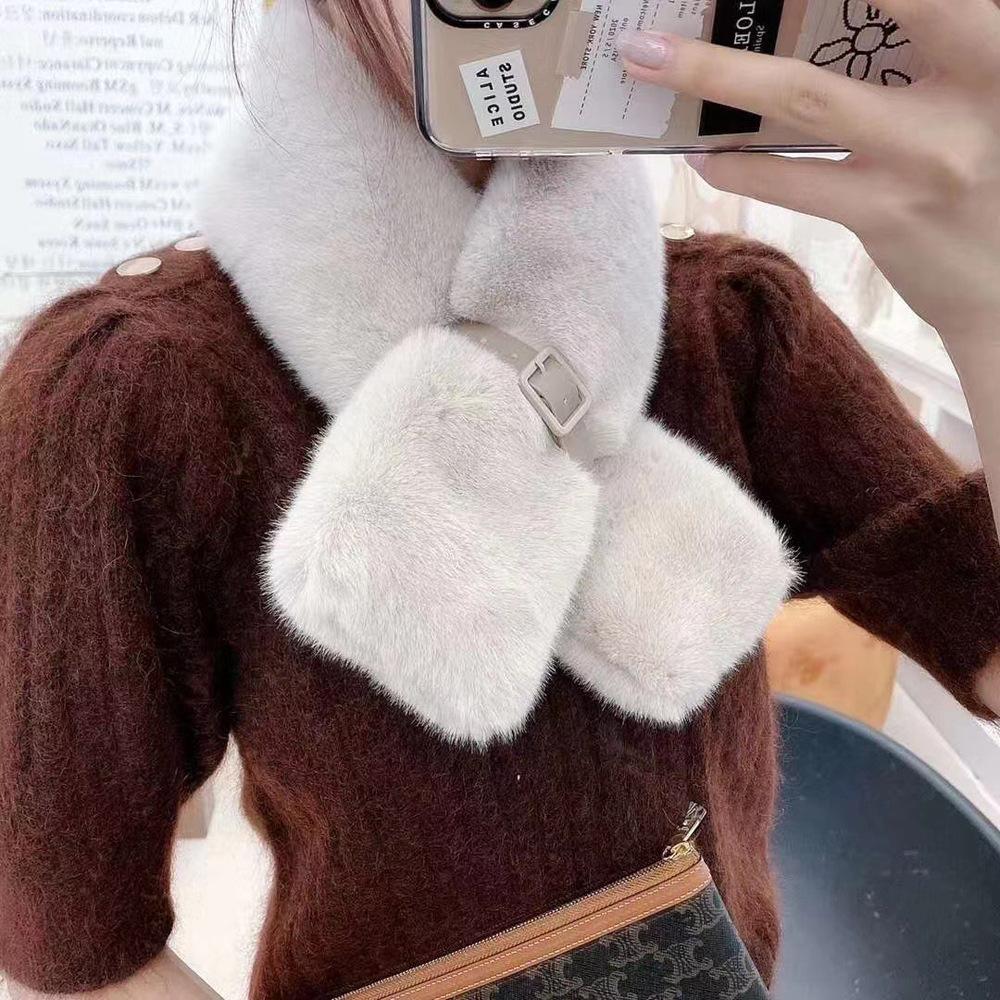 Otoño e Invierno protección para el cuello bufanda cálida femenina estilo coreano imitación lana de conejo perezoso bufanda cruzada invierno engrosada felpa bufanda de estudiante femenina