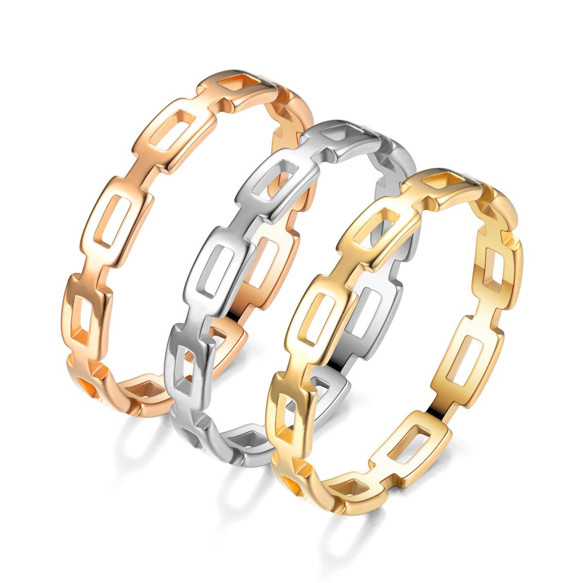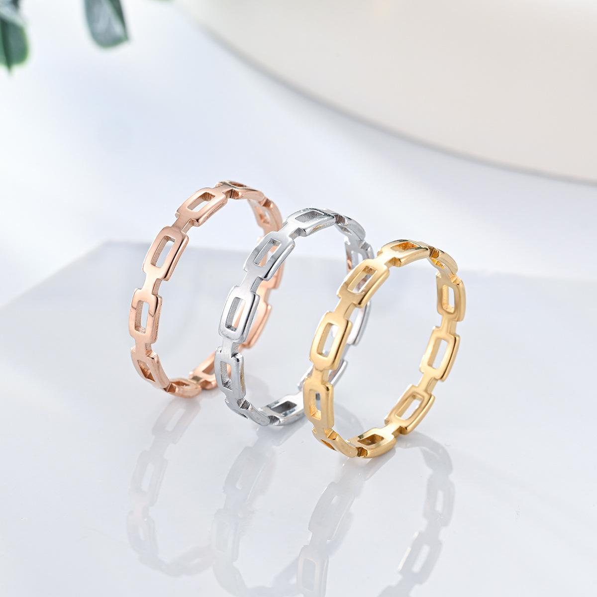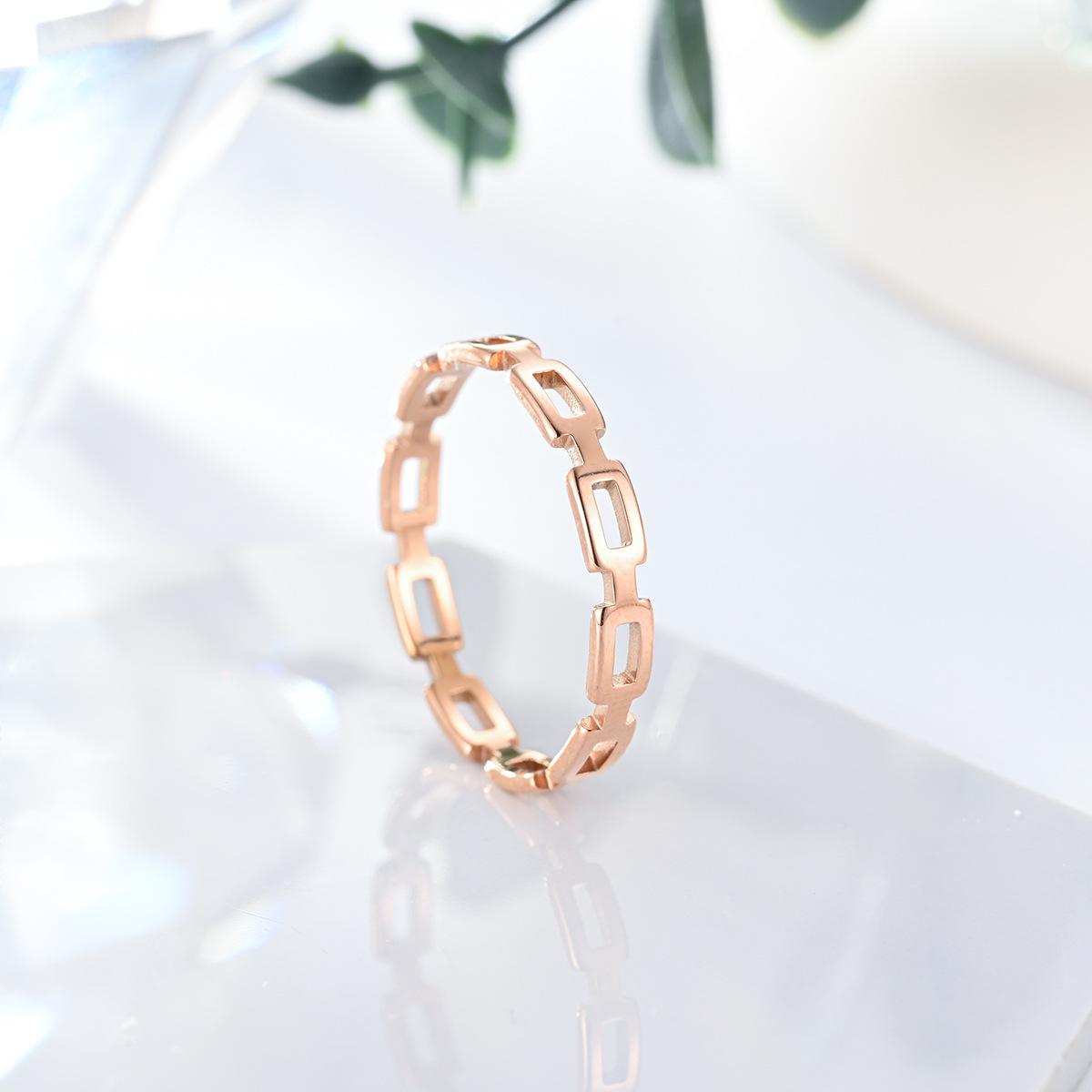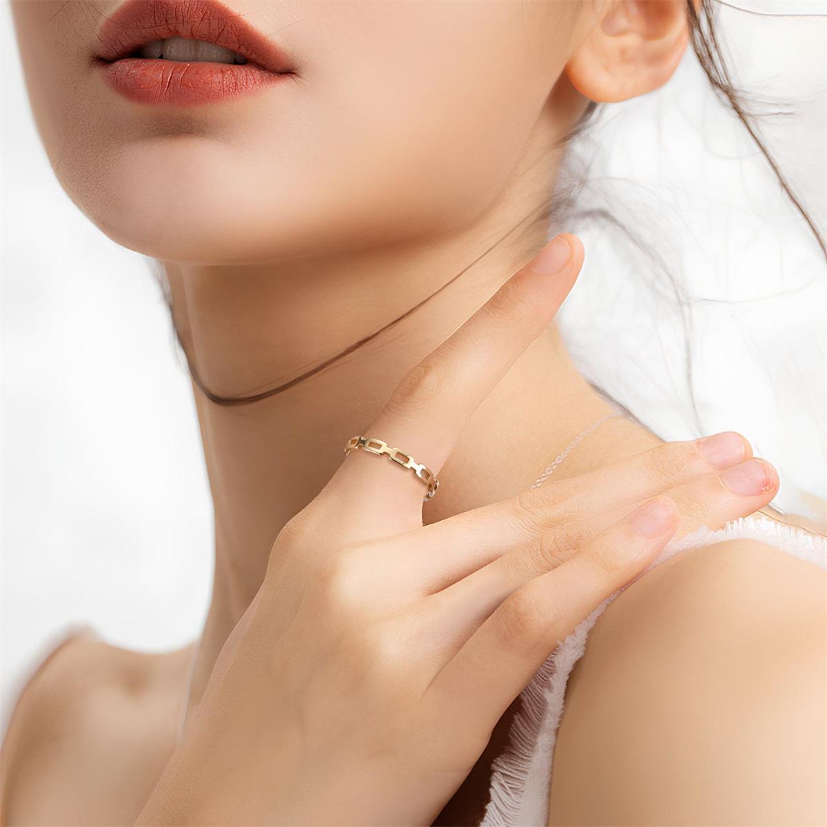 Anillo de Cadena Hueca de Acero Inoxidable para Mujer Anillo de Belleza Europeo Nicho sin Caída Lujo Ligero Anillo de Pareja Anillo Joyería