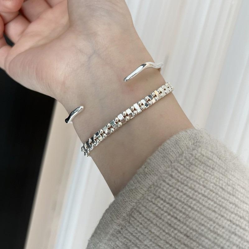 Pulsera de Onda Fina de Nicho Estilo Coreano para Mujer, Joyería de Moda Minimalista Versátil de Alta Gama con Incrustaciones de Zircón, Tendencia