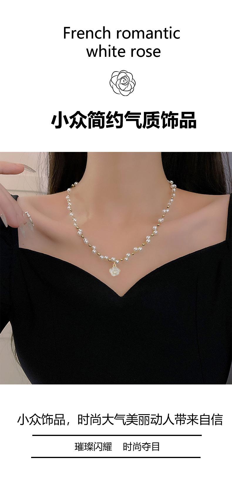 Collar de camelia y perla estilo francés para mujer, ligero, lujoso, diseño de nicho, elegante, de alta gama, combinable con todo, cadena para clavícula.