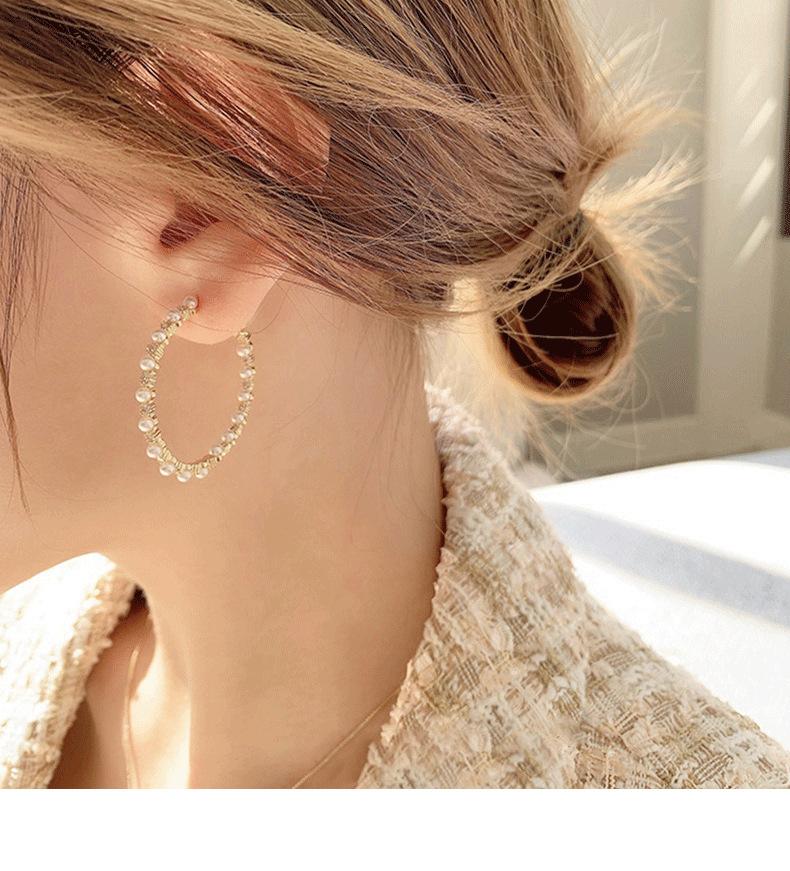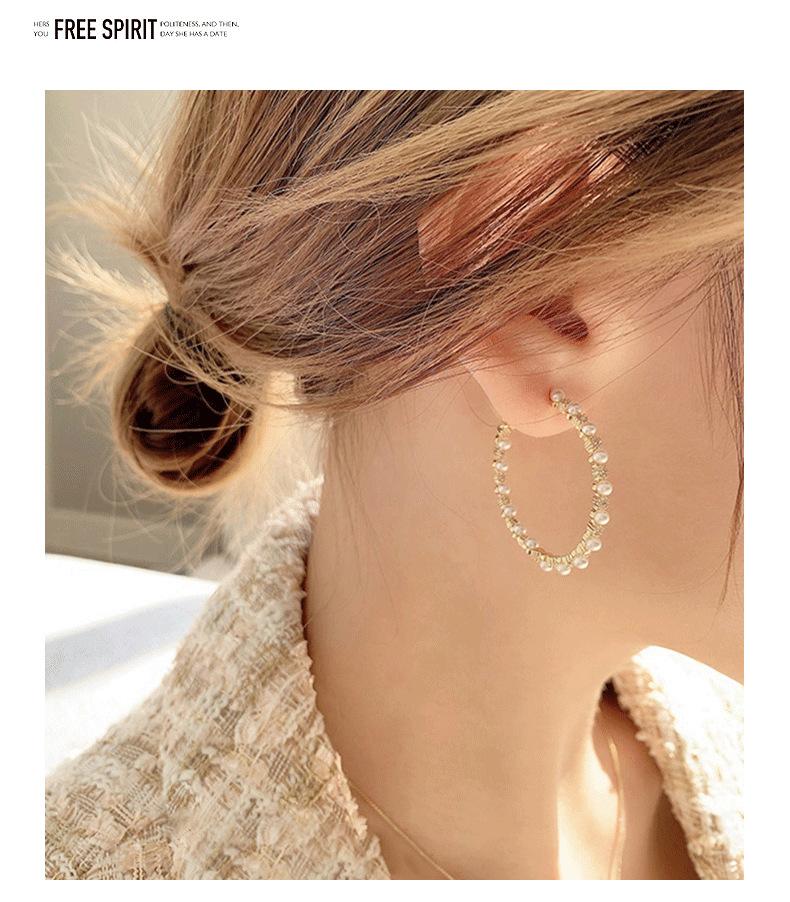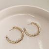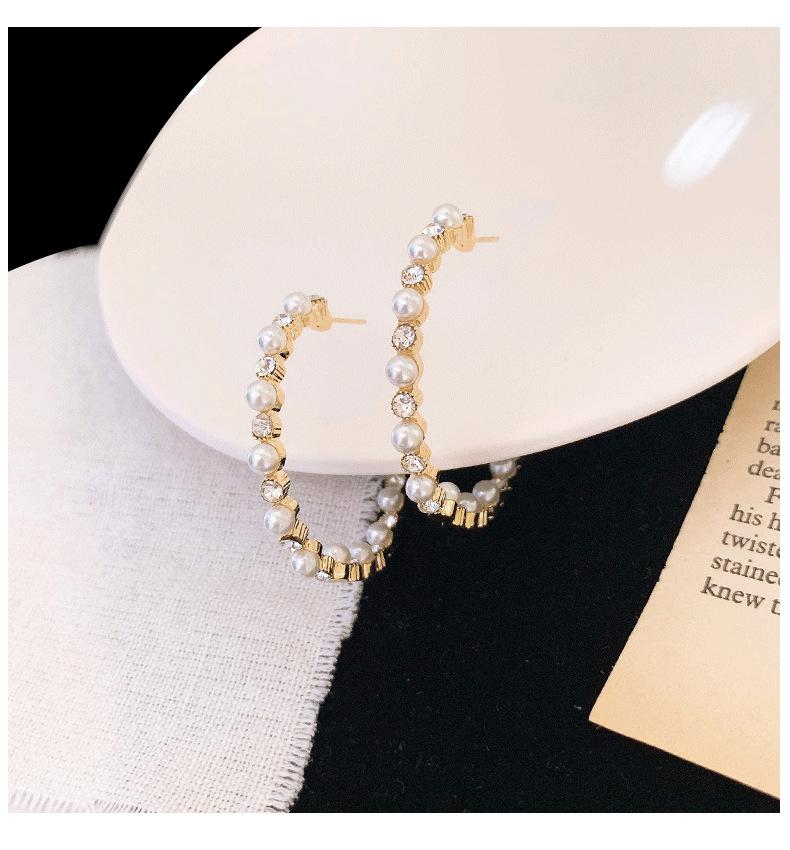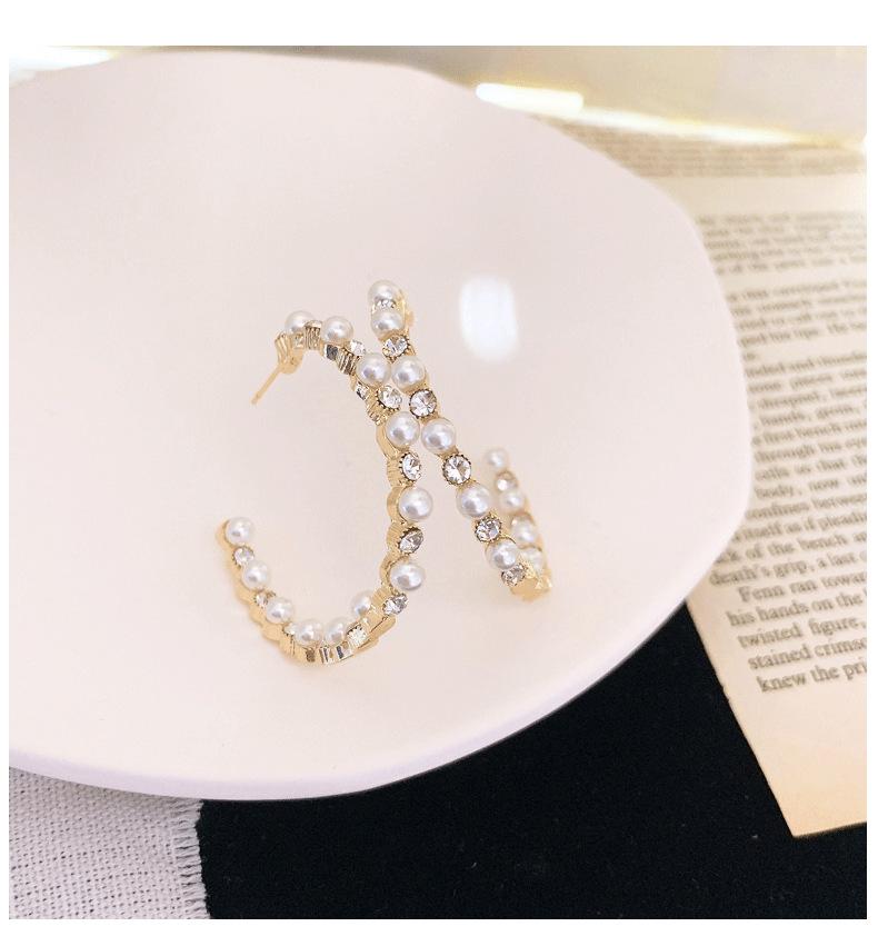 Pendientes de plata de ley 925 con forma de C y diamantes distintivos de estilo moderno para mujer, con diseño de aguja y perla de Dongdaemun, de Corea del Sur.