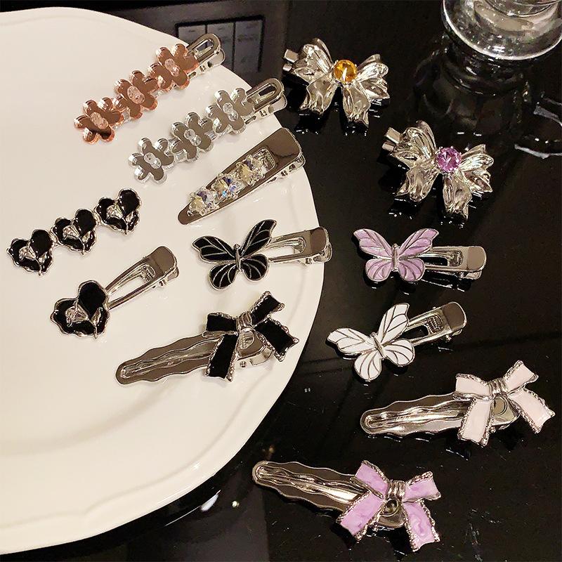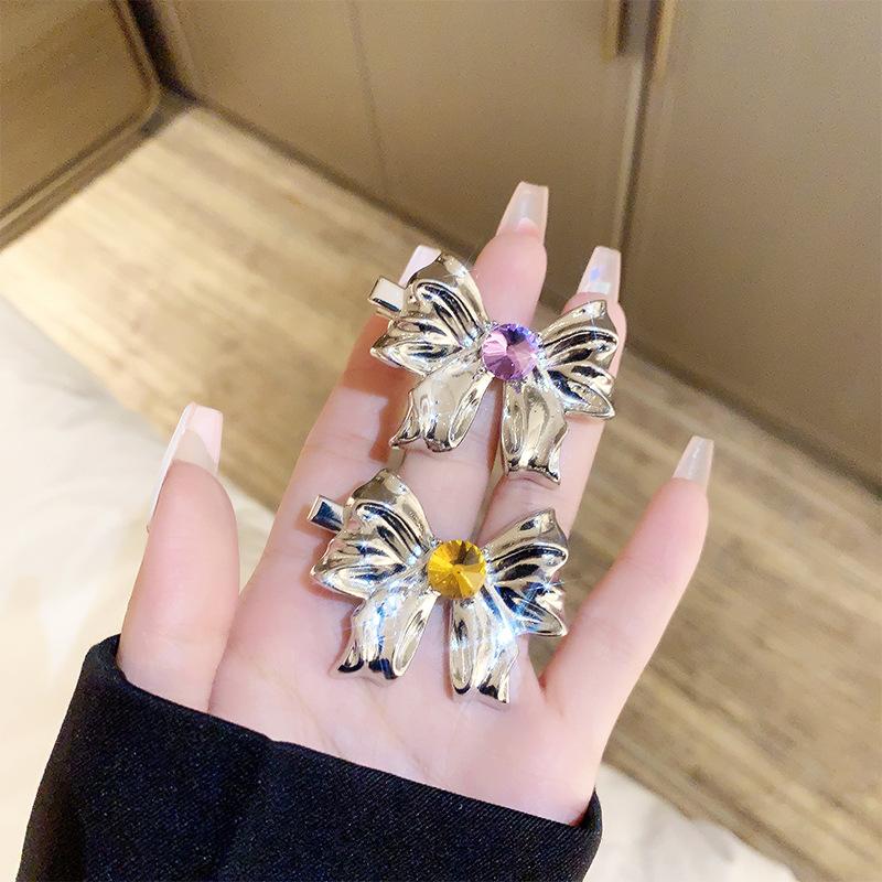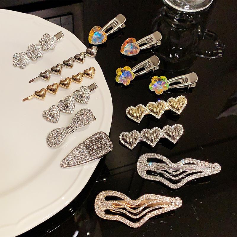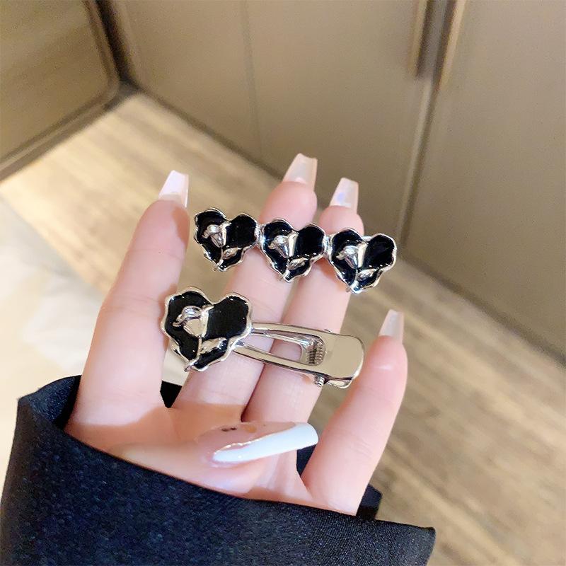 Lazo de metal amor luz lujo temperamento diseño nicho dulce chica cool fleco clip lateral flor adorno para la cabeza