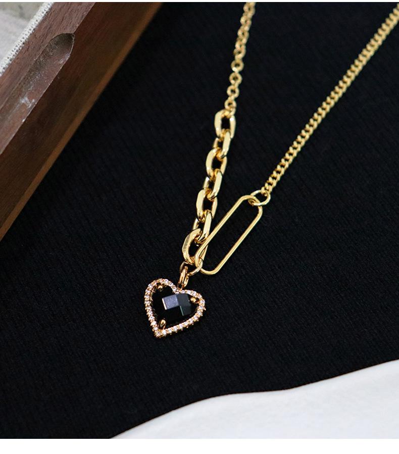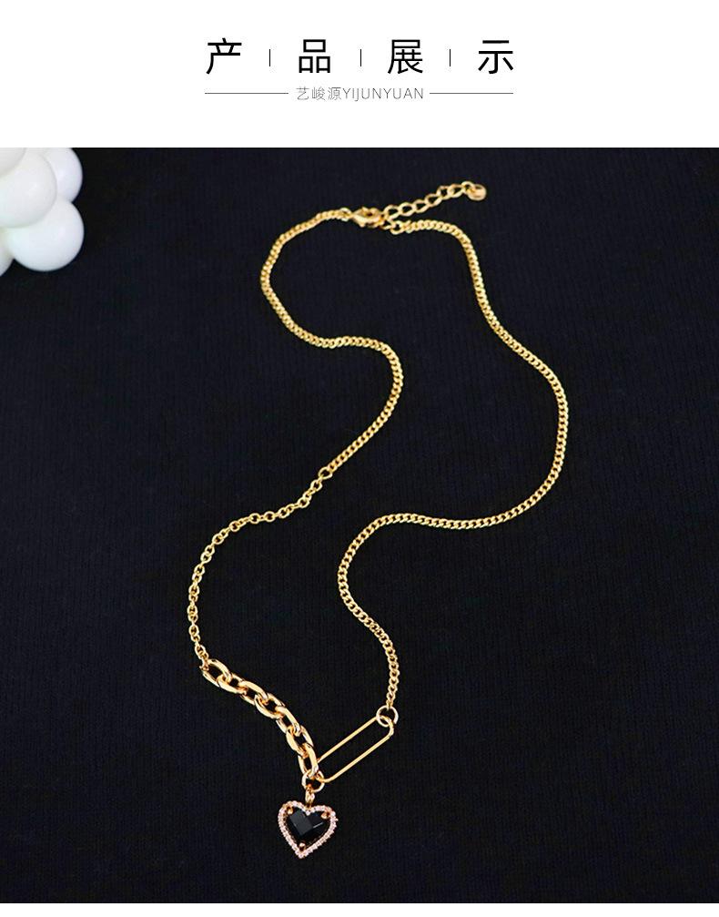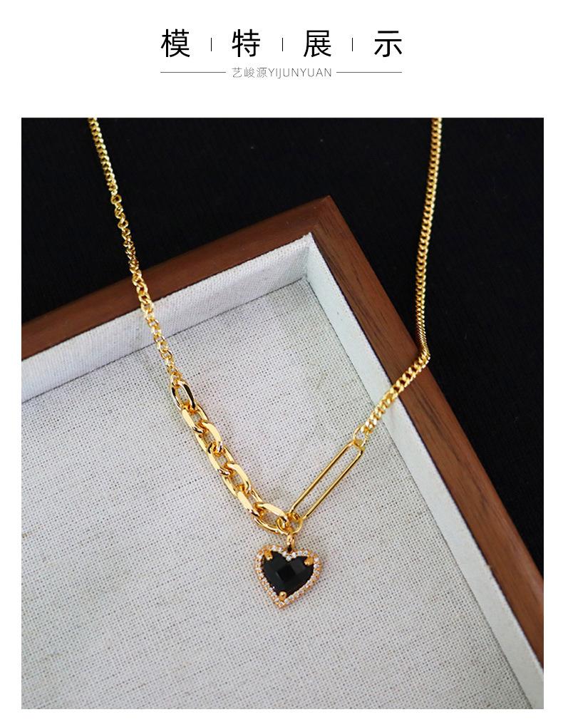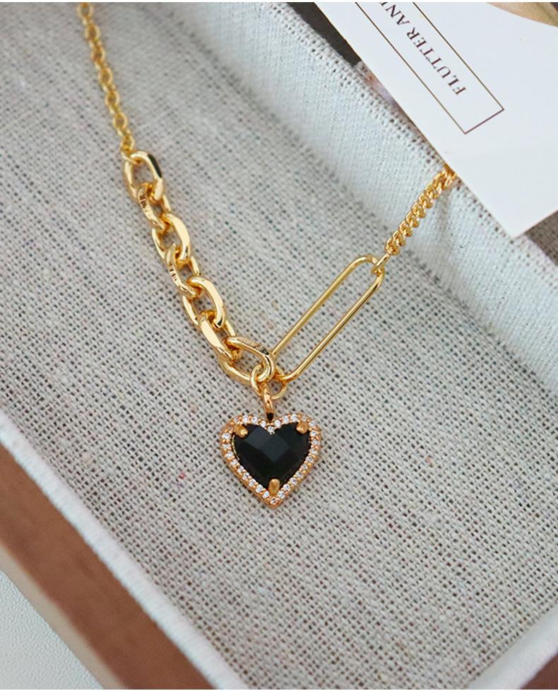 Collar de mujer con estilo retro europeo y americano con diseño de amor negro, versátil, de alto grado, con personalidad de temperamento, nicho ligero, cadena de clavícula de lujo