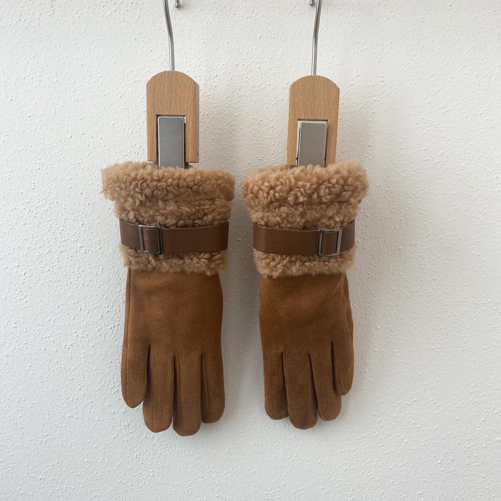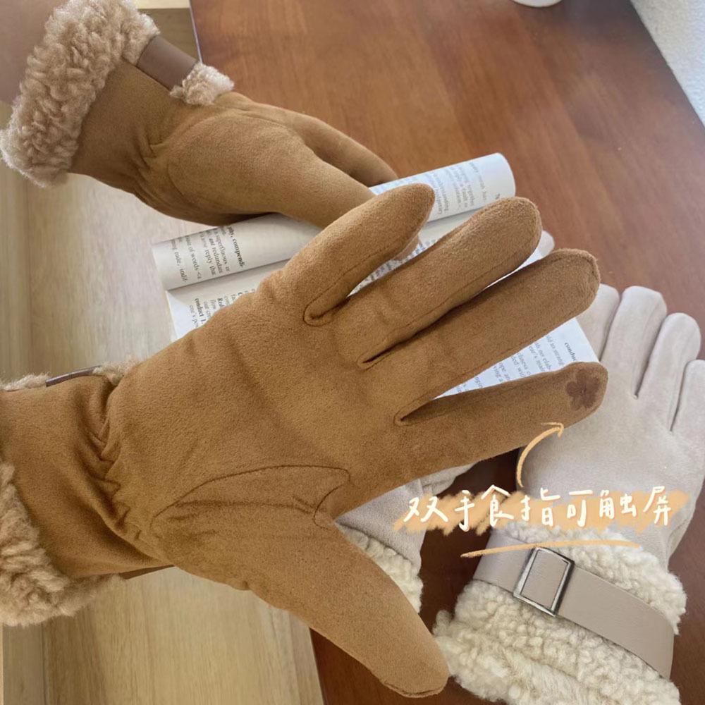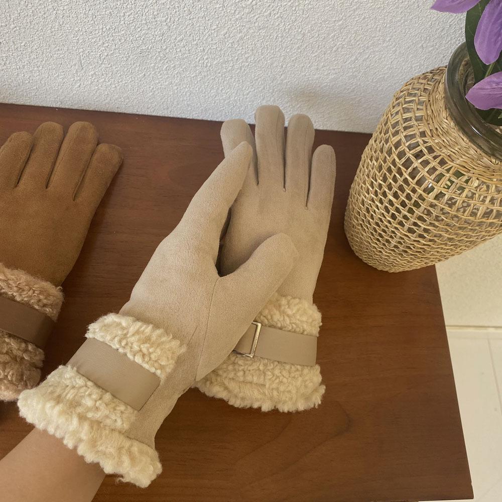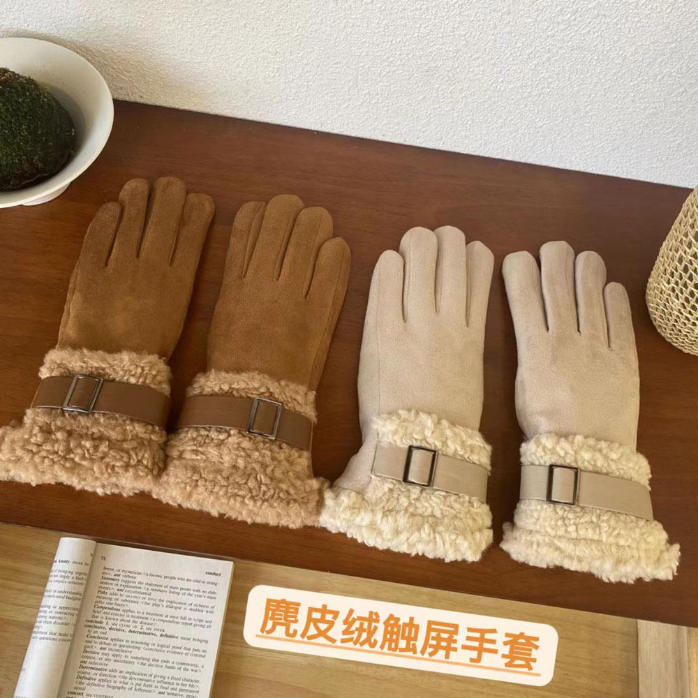 Guantes de gamuza decorativos con hebilla de cuero grueso para mujer, de invierno, de terciopelo, cálidos y resistentes al frío, para ciclismo con pantalla táctil.