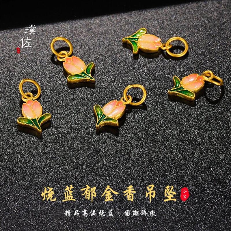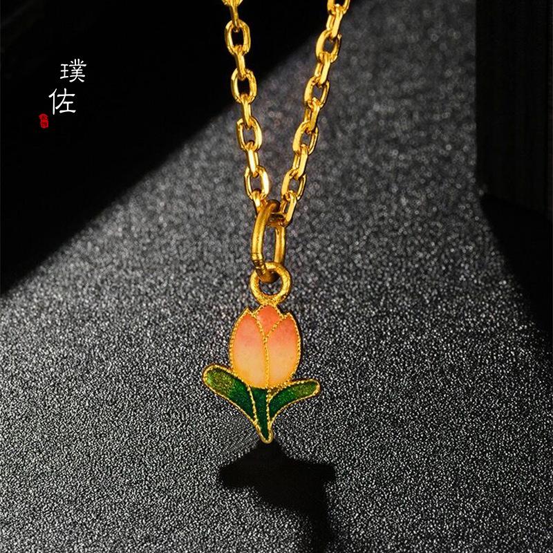 Colgante de tulipán con accesorios de bricolaje de oro vietnamita de larga duración, collar de esmalte pintado a mano, cadena de clavícula con tulipanes