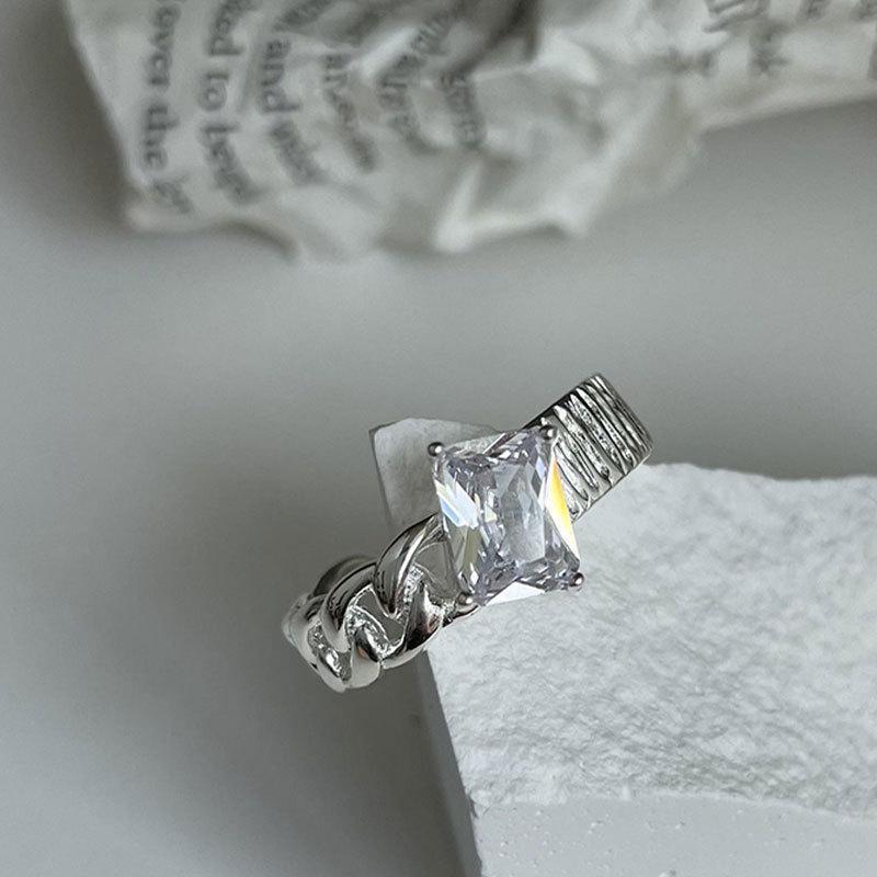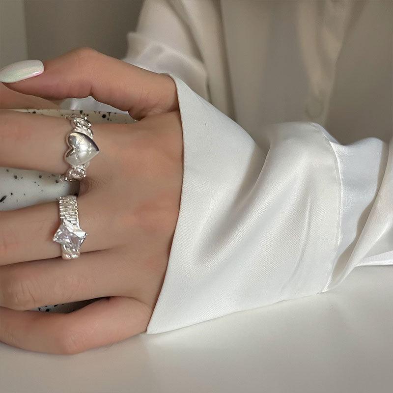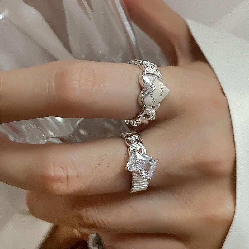 Anillo Coreano de Plata S925 con Zirconia Brillante para Mujer, Moda Vintage, Letra, Corazón, Abierto, Hip-hop, Anillo de Dedo, Trendy