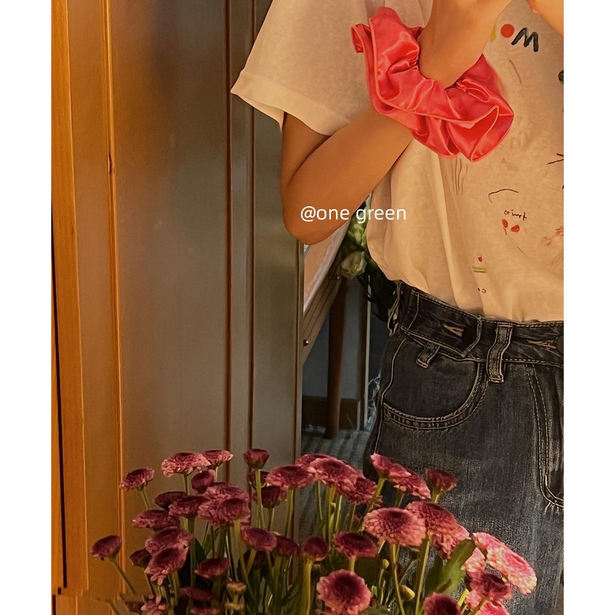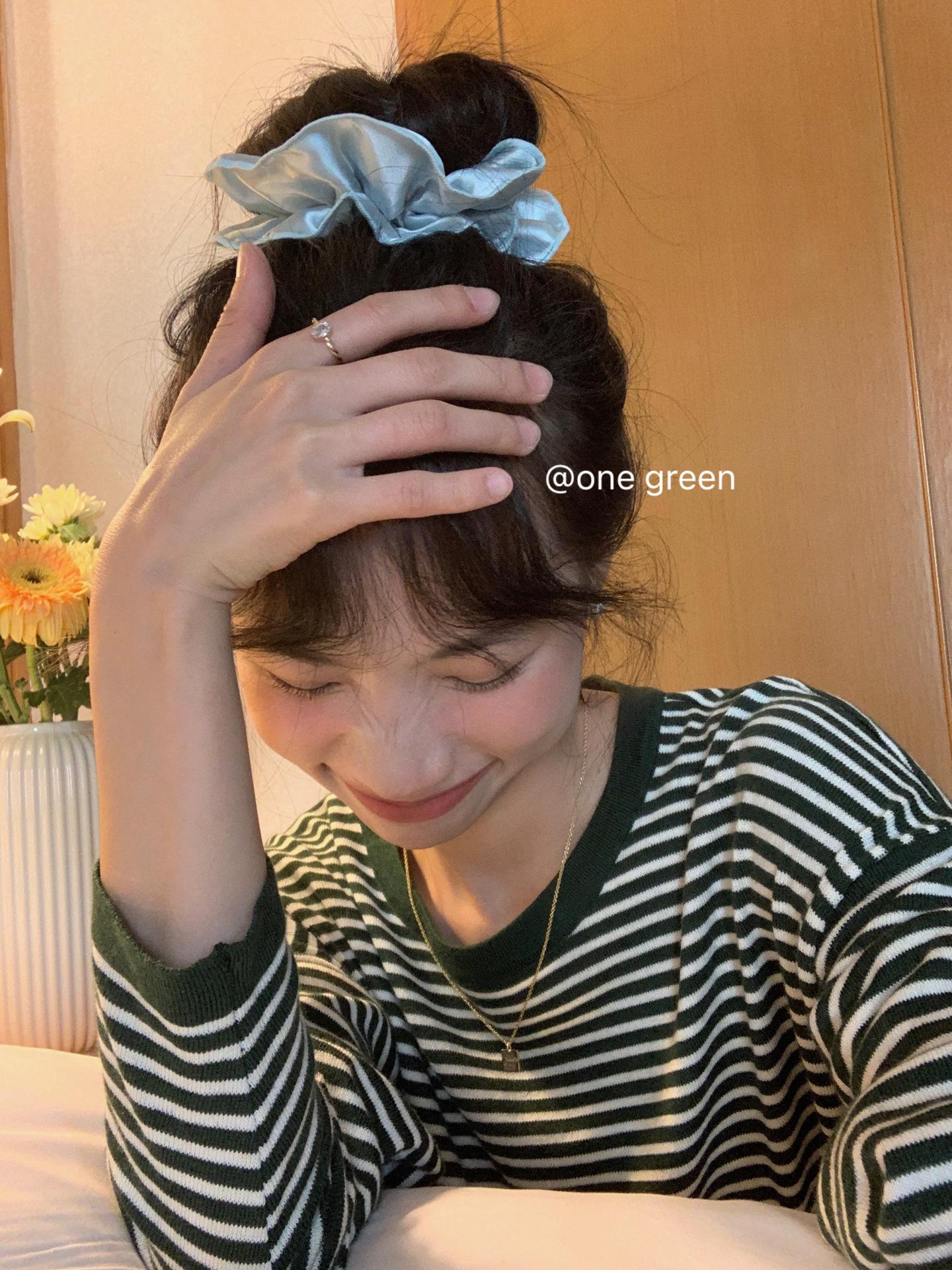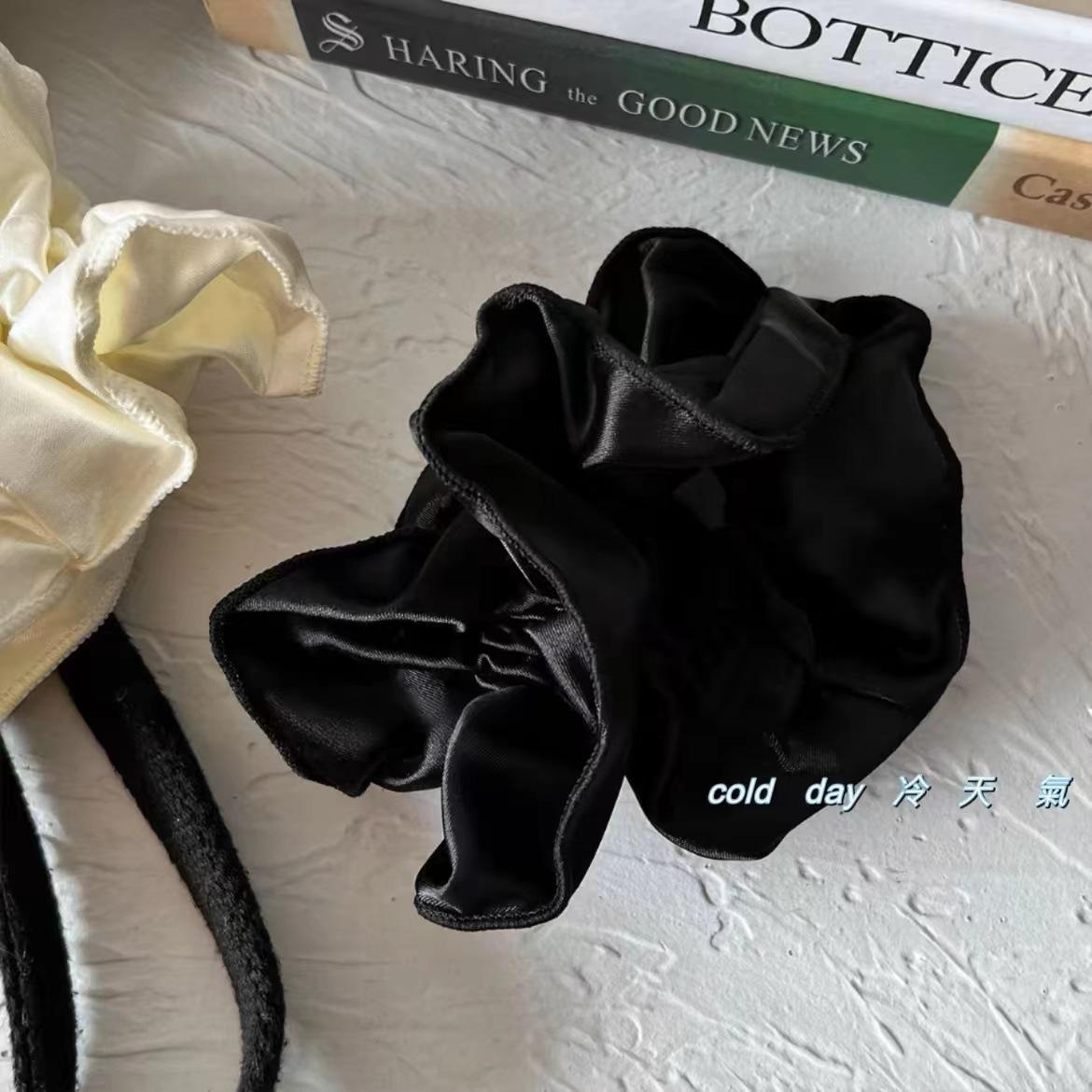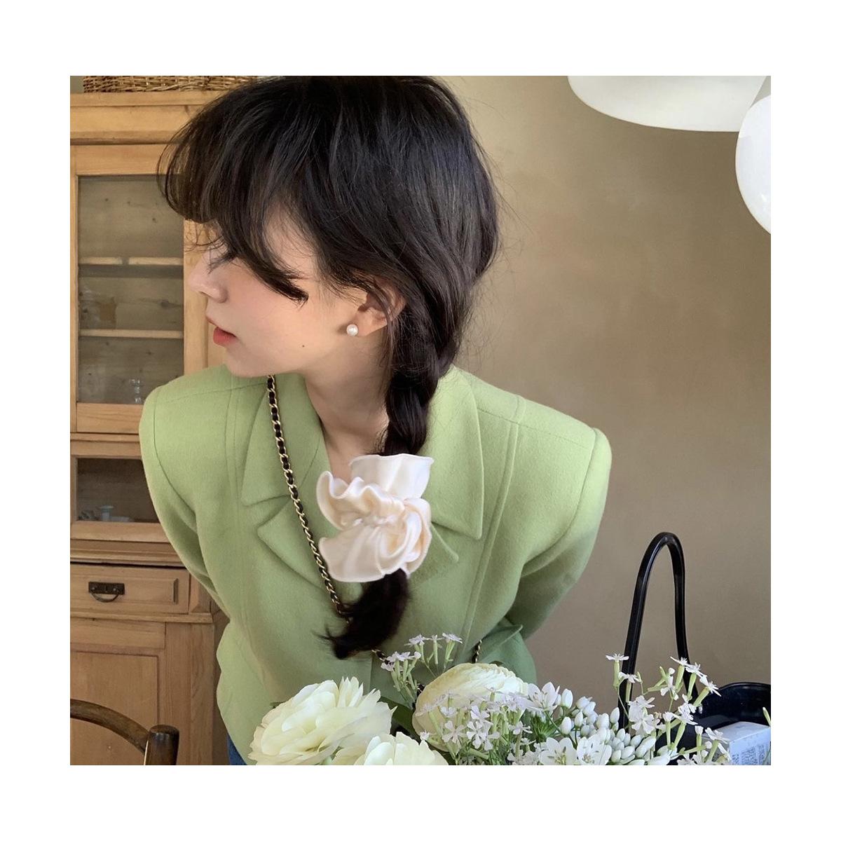 Dulce Chica ~ Liga para el Cabello Coreana de Satén de Alta Gama de Doble Capa Plisada Celebridad de Internet Color Puro a la Moda Cola de Caballo Flor para la Cabeza Accesorio para el Cabello