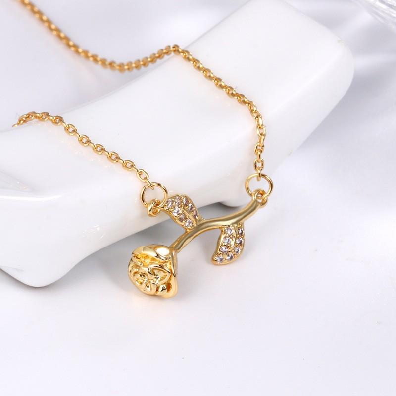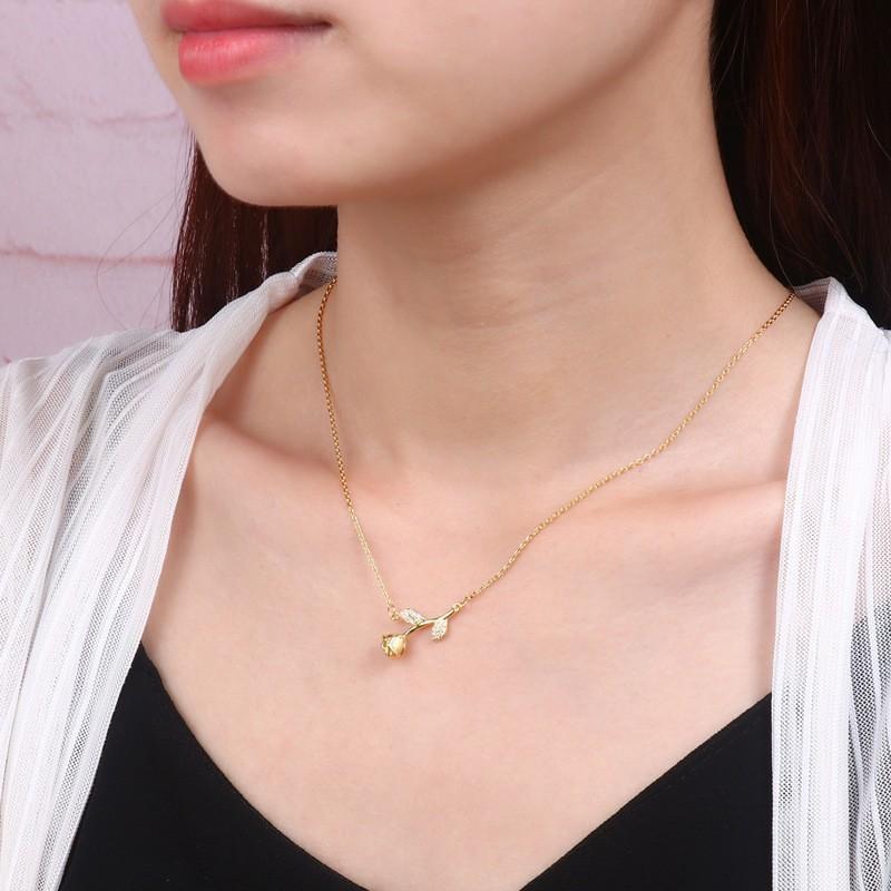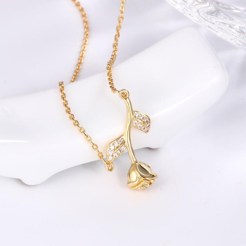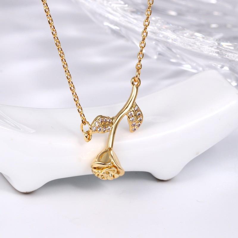 Moda Coreana Lujo Ligero Delgada Collar de Rosa Tridimensional para Mujer Verano Nicho Dorado Cadena de Cuello Versátil