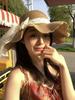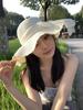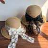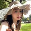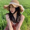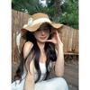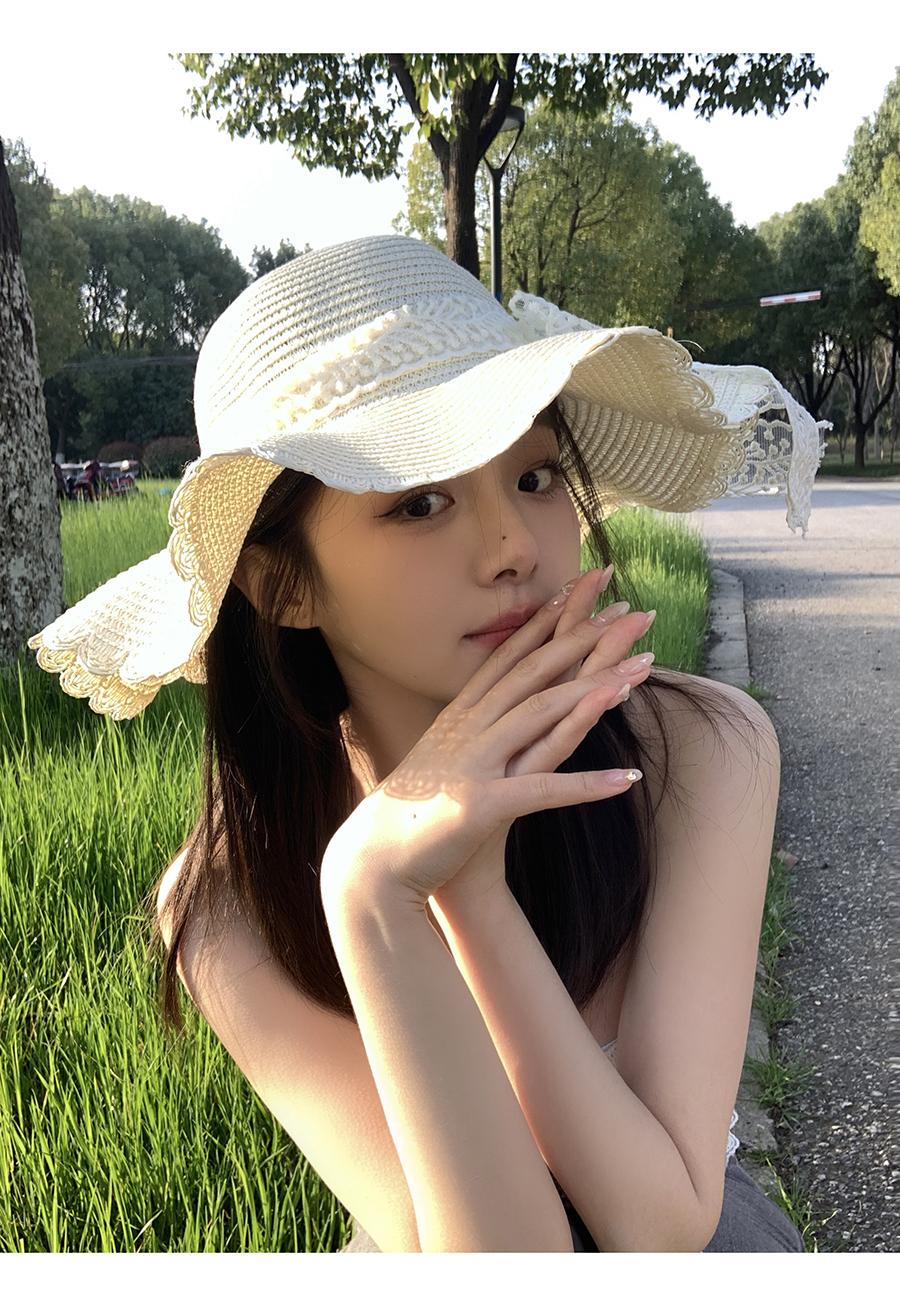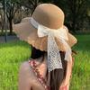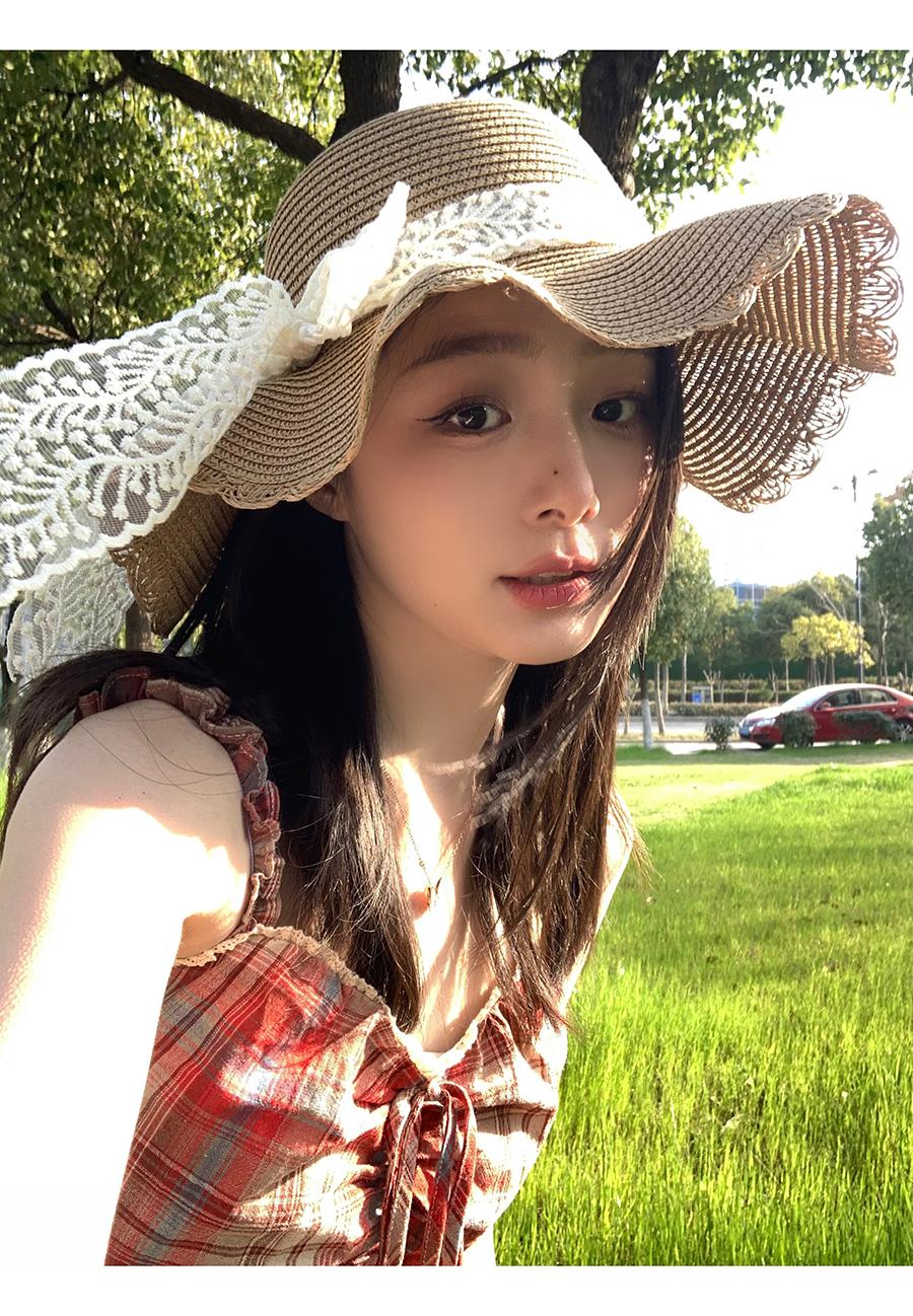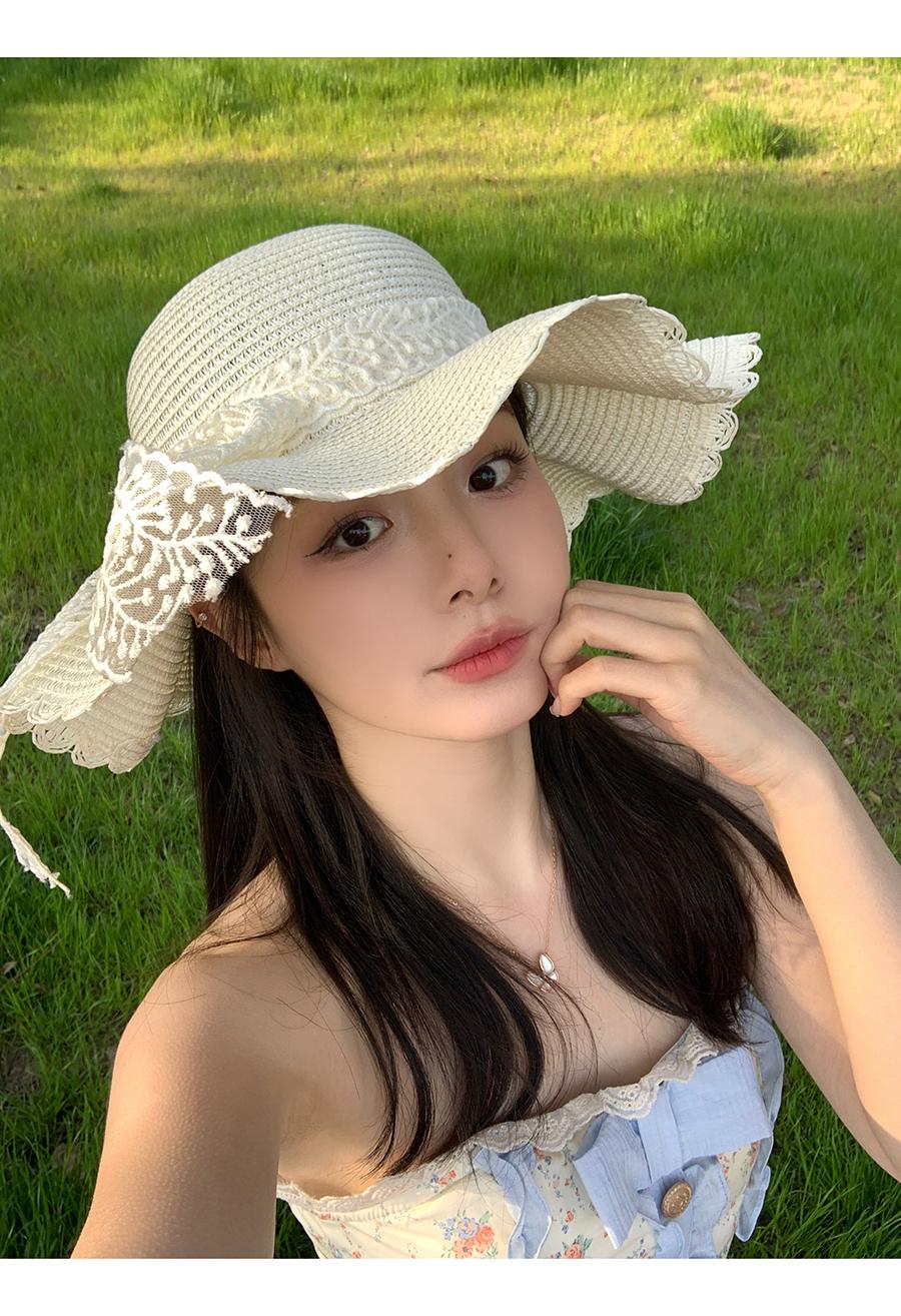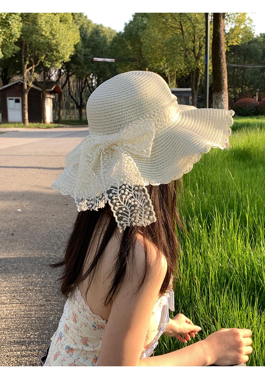 Sombrero de Paja para el Sol para Mujer Verano Dulce Lindo Sombrero de Pescador Sombrero de Paja de Ala Ancha Lazo de Encaje Borde Ondulado Sombrero Protector Solar