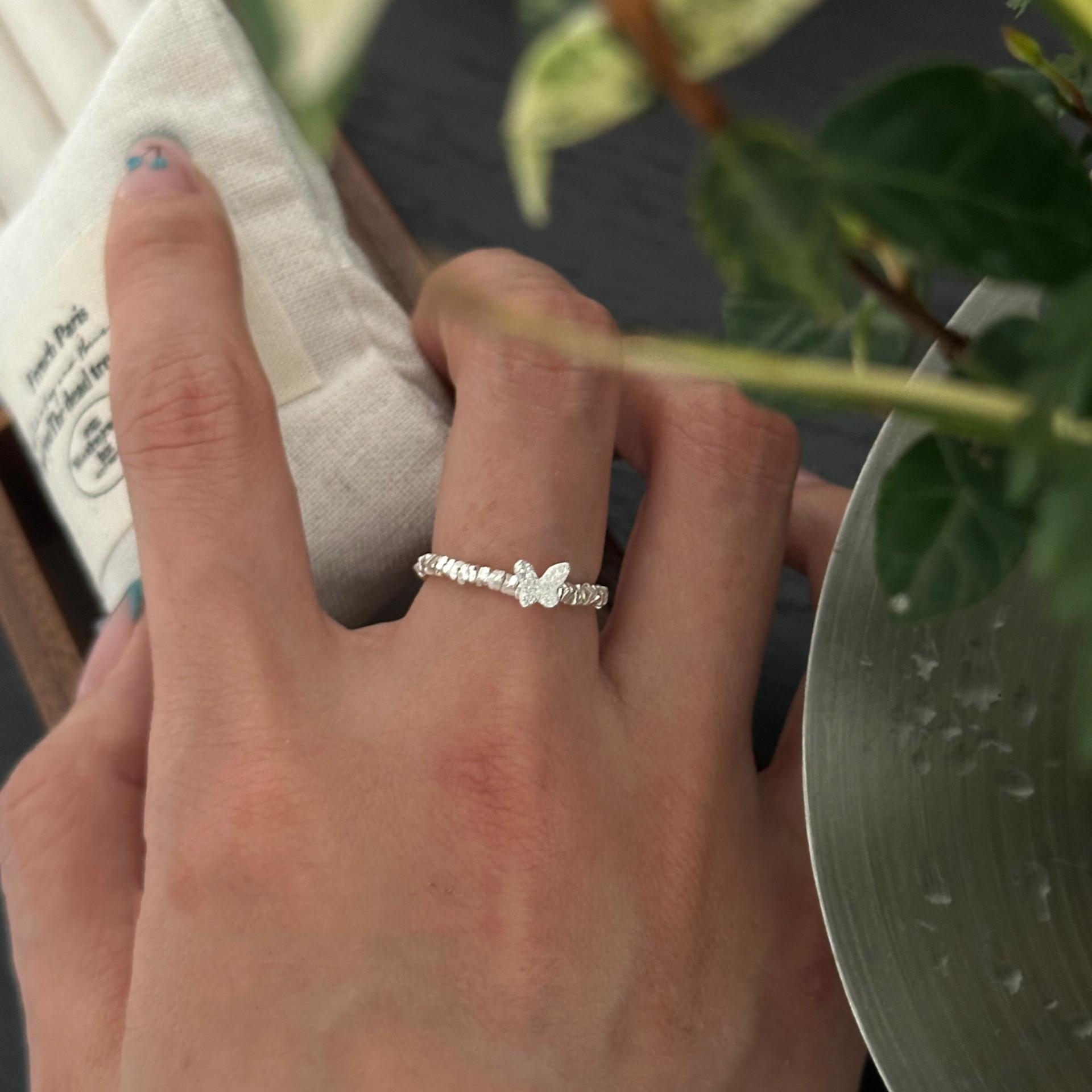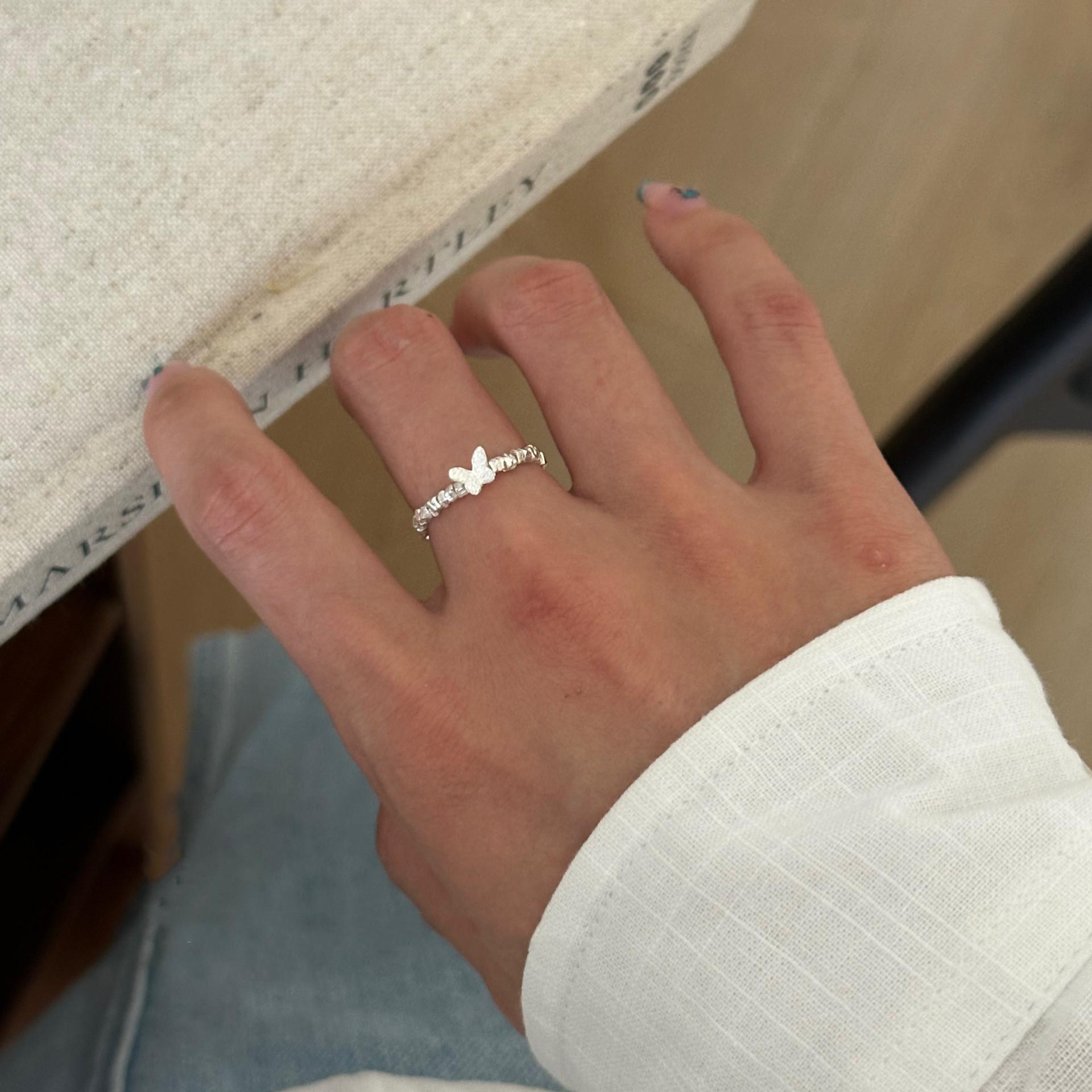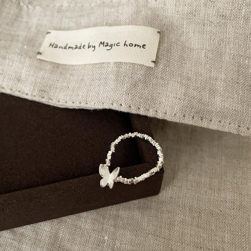 Anillo elástico de mariposa de plata rota, simple y fresco, de estilo nicho de Corea del Sur, con un toque de viento frío.