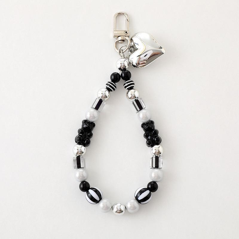Nuevo y creativo colgante de perla de amor con cuentas blancas y negras, cadena de oso, cordón para funda de teléfono móvil, llavero, accesorio colgante RMB:2.30