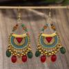 Pendientes retro geométricos semicirculares de esmalte de roca personalizados, venta caliente transfronteriza, pendientes hechos a mano con gemas naranjas incrustadas para mujeres
