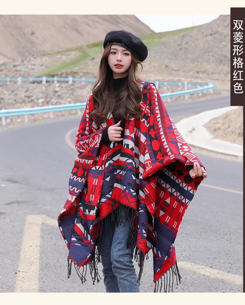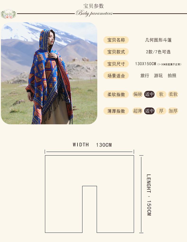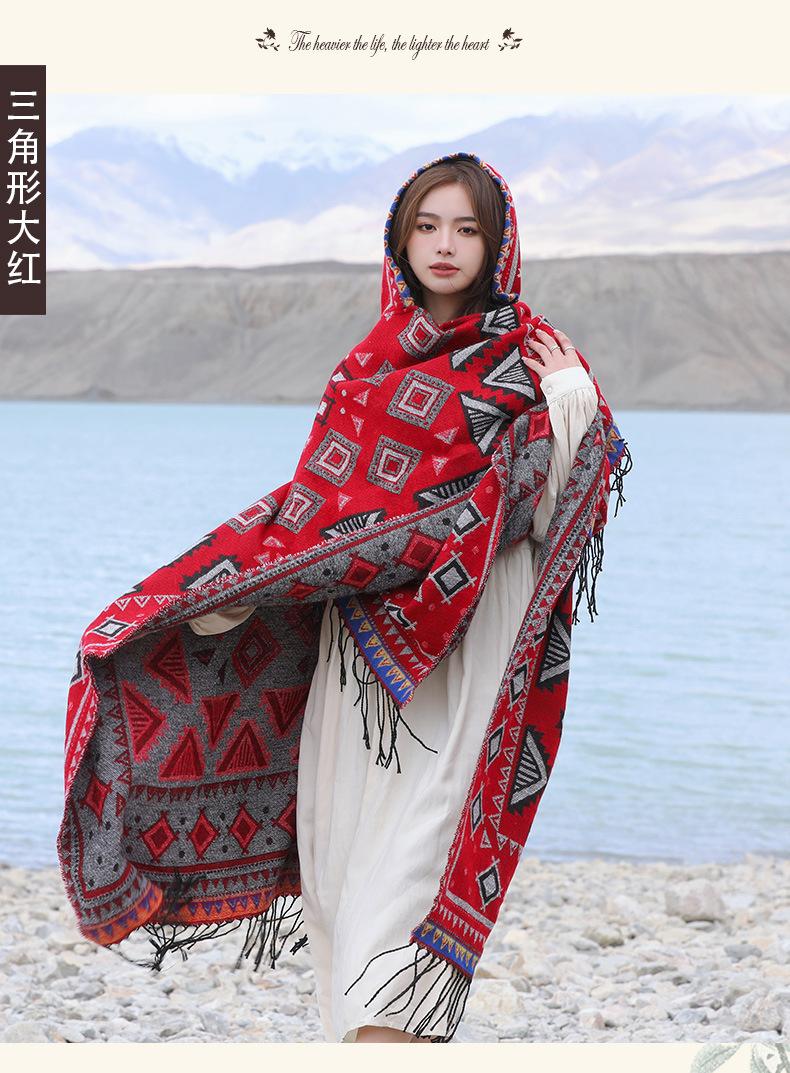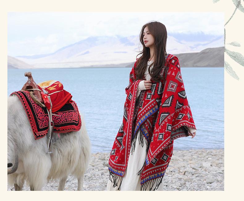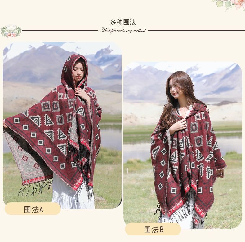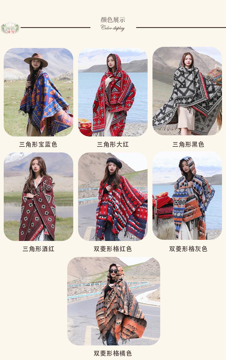 Nuevo Chal Exterior con Capucha Estilo Étnico Retro Xinjiang y Tíbet Fotografía de Viaje Exterior Cálido Capa Grande