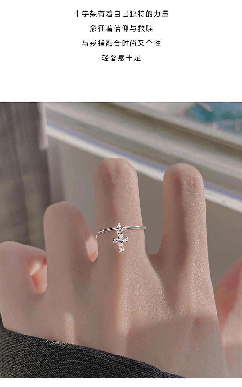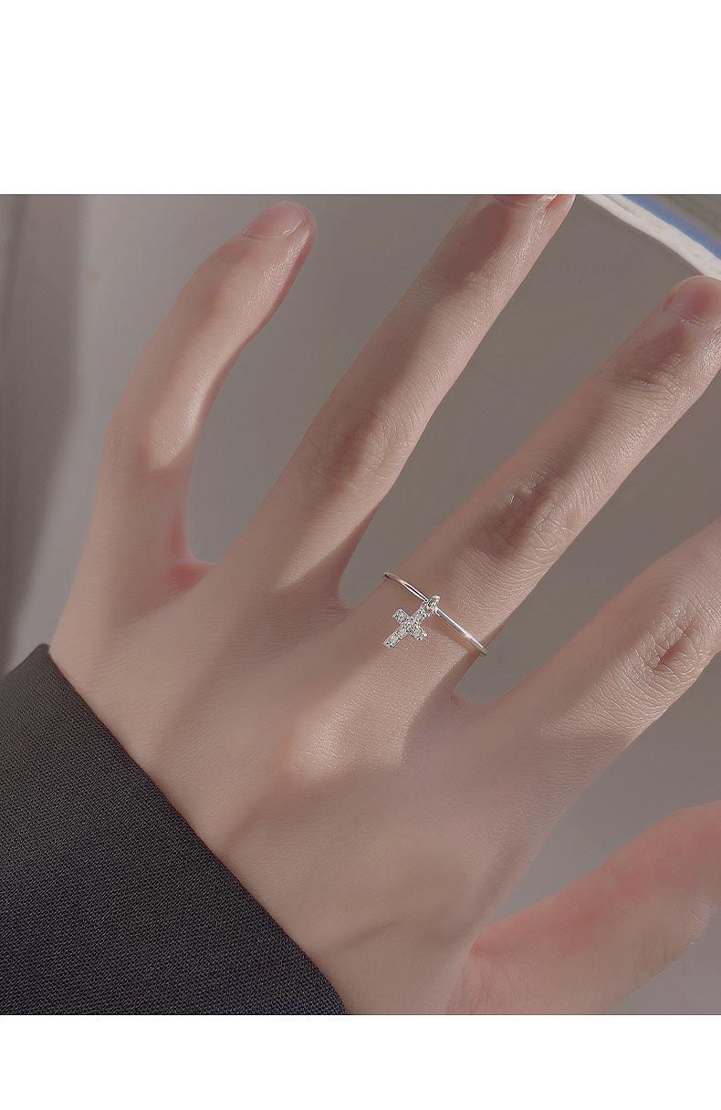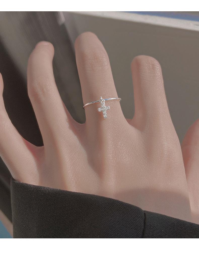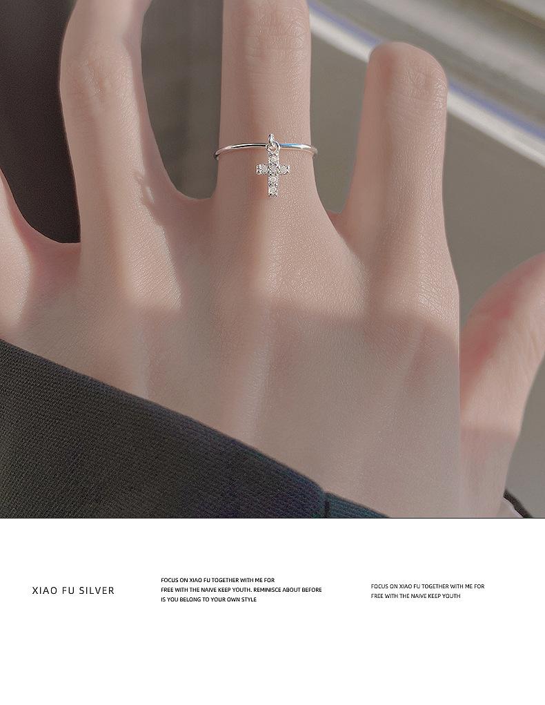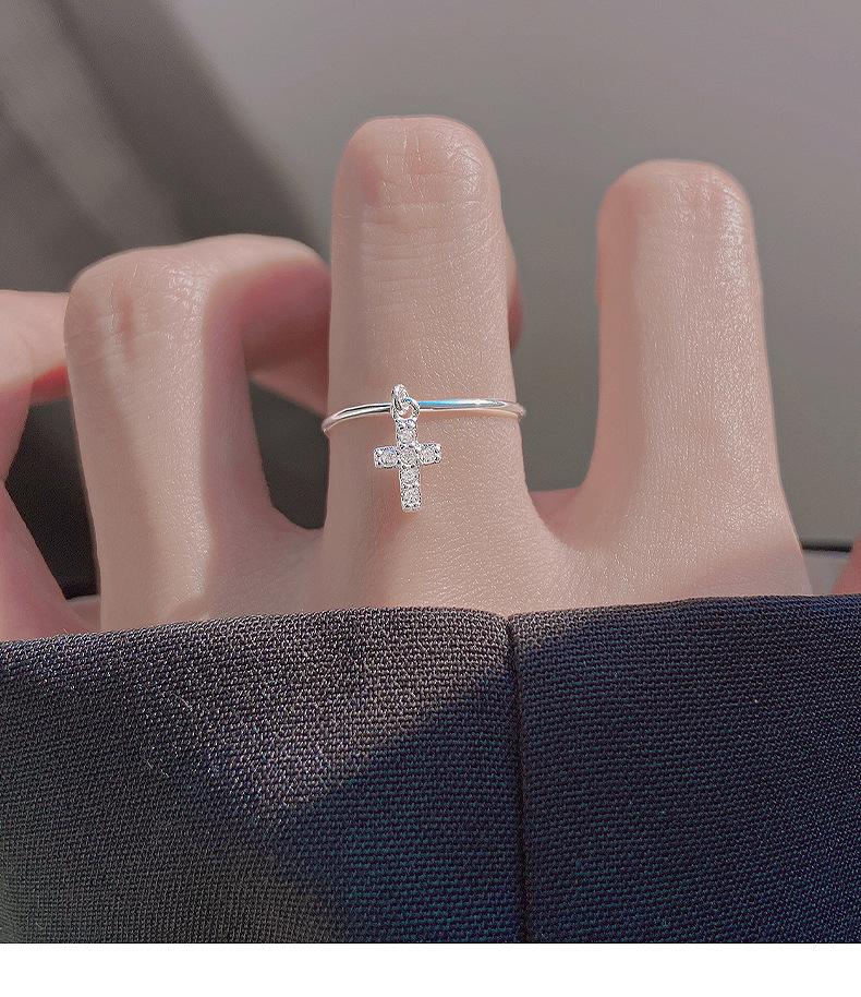 Anillo de plata S925 estilo coreano con forma de cruz simple para mujer, estilo retro, elegante, abierto, estilo hip hop y punk.