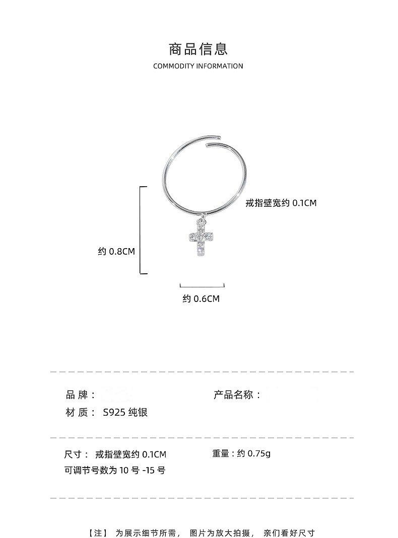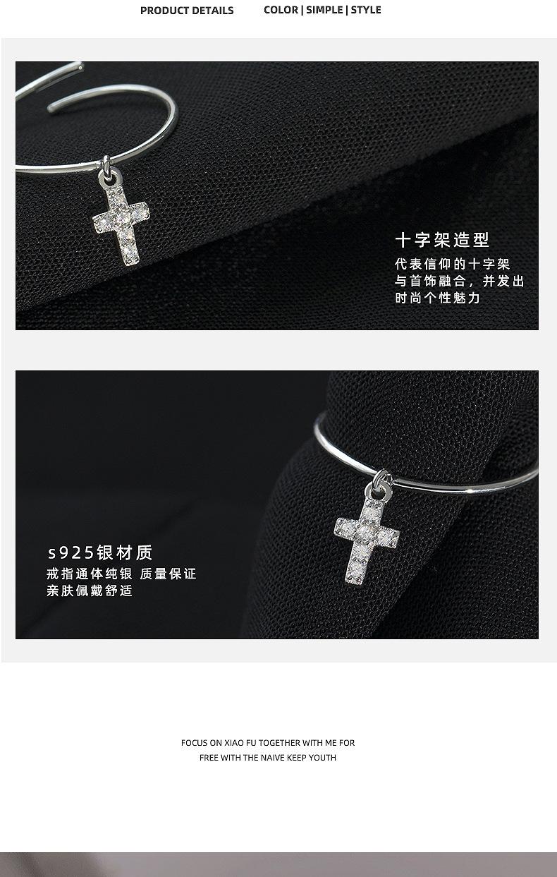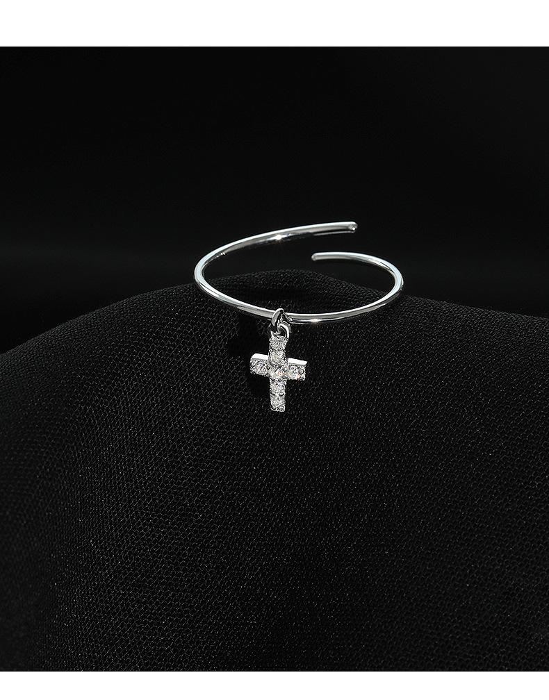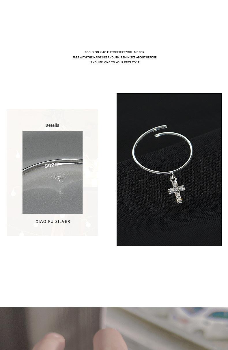 Anillo de plata S925 estilo coreano con forma de cruz simple para mujer, estilo retro, elegante, abierto, estilo hip hop y punk.
