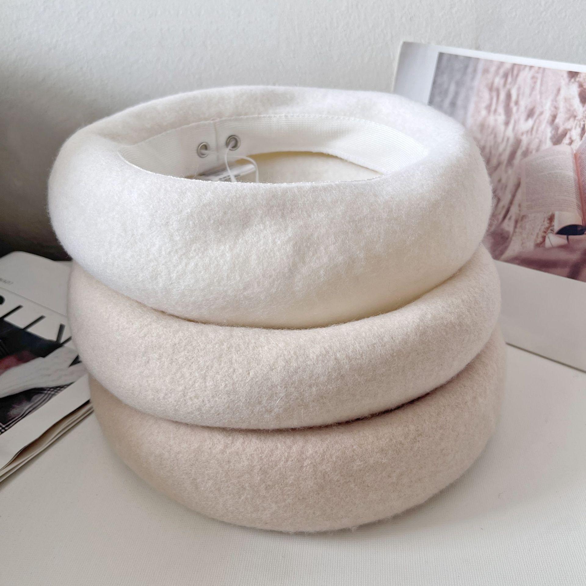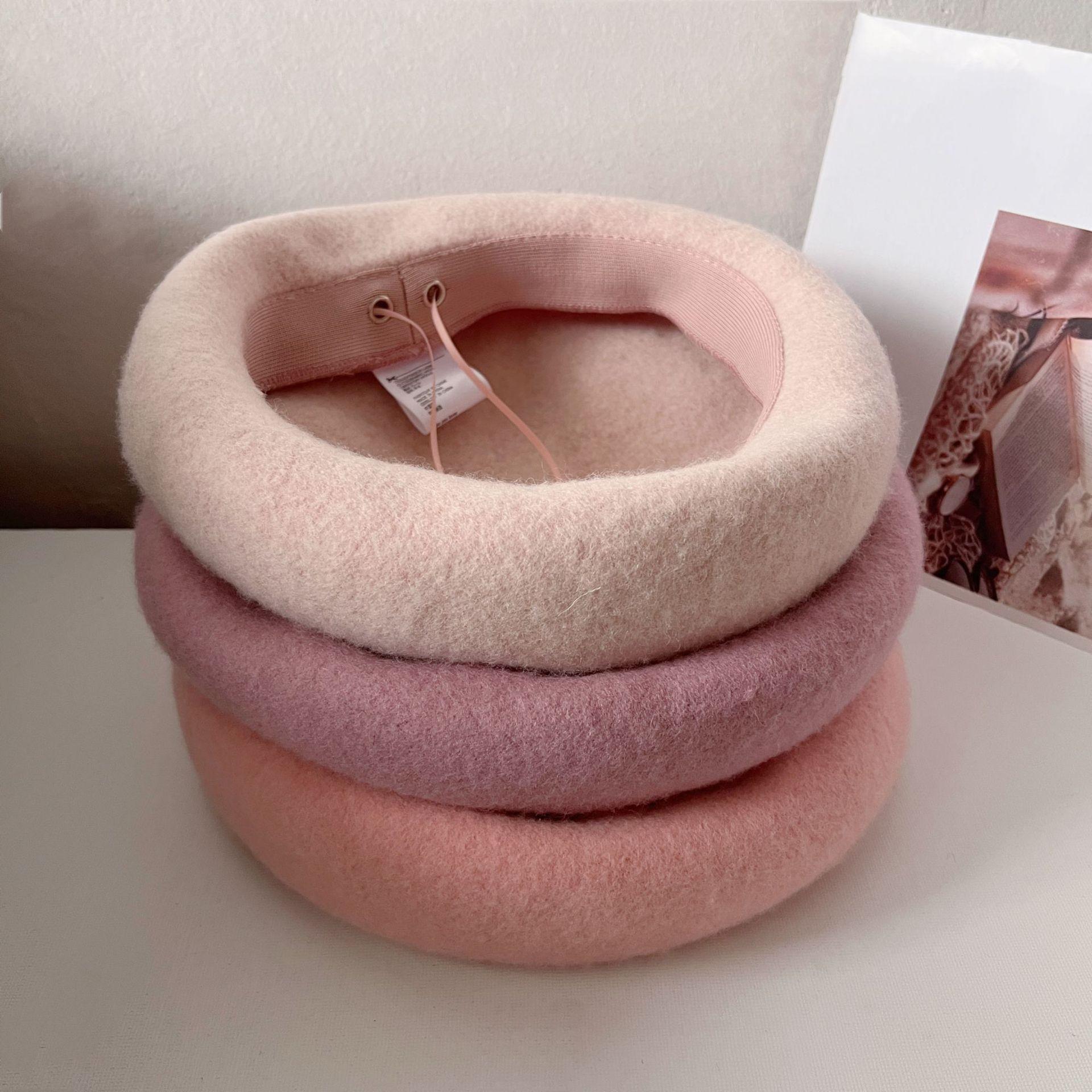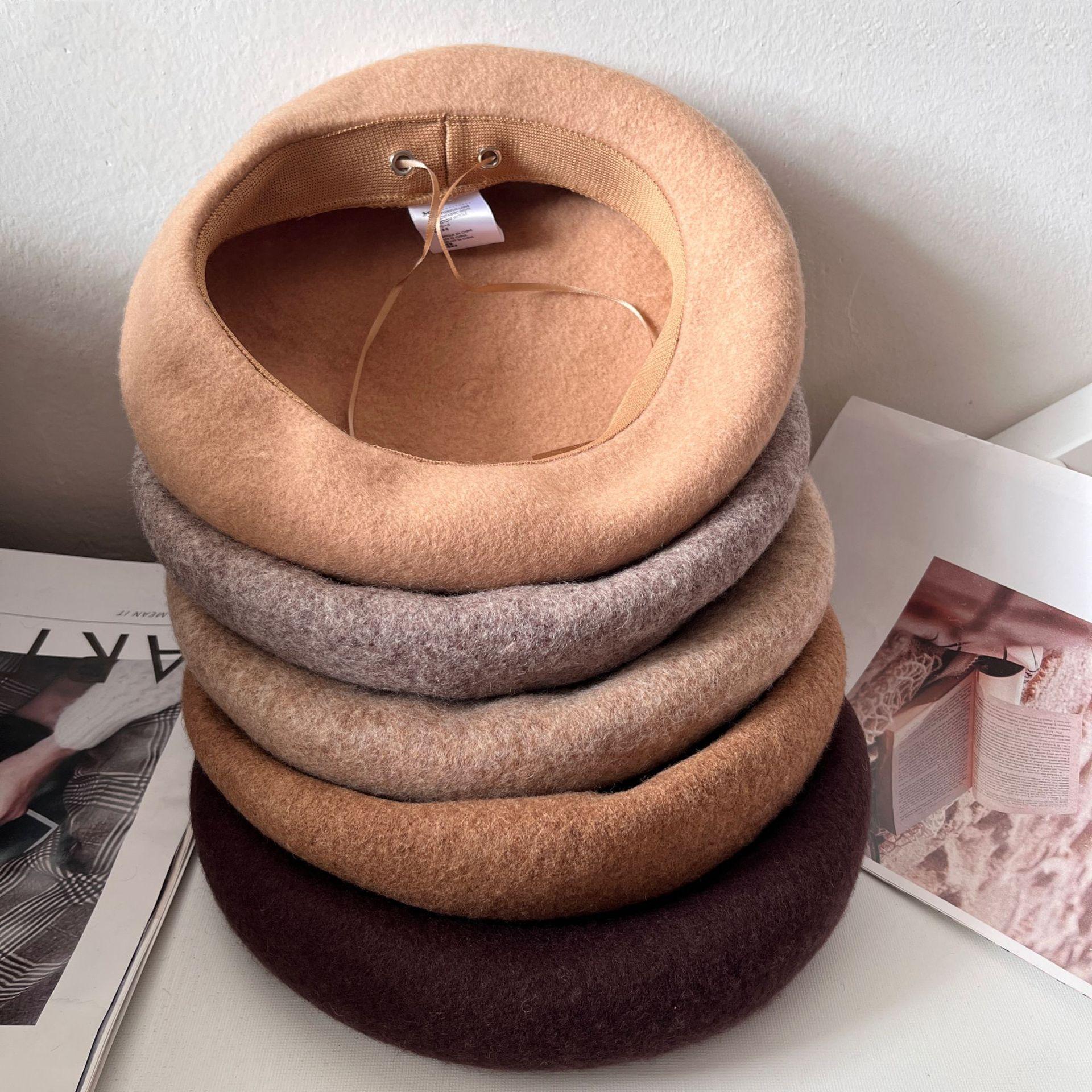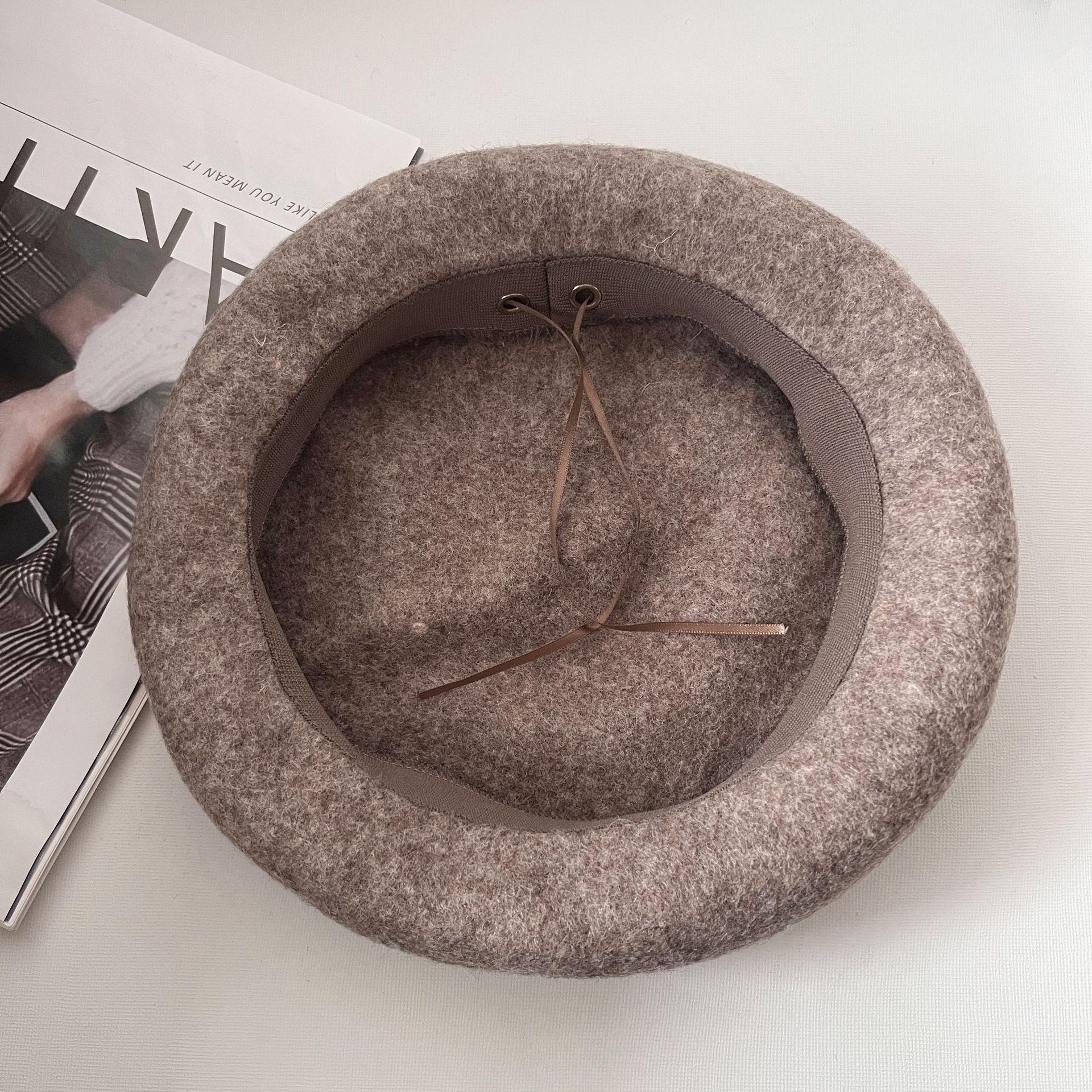 Gorra de pintor de lana de alta calidad de estilo coreano, nueva gorra de nube para mujer, boina de lana tridimensional con cordón ajustable, otoño e invierno