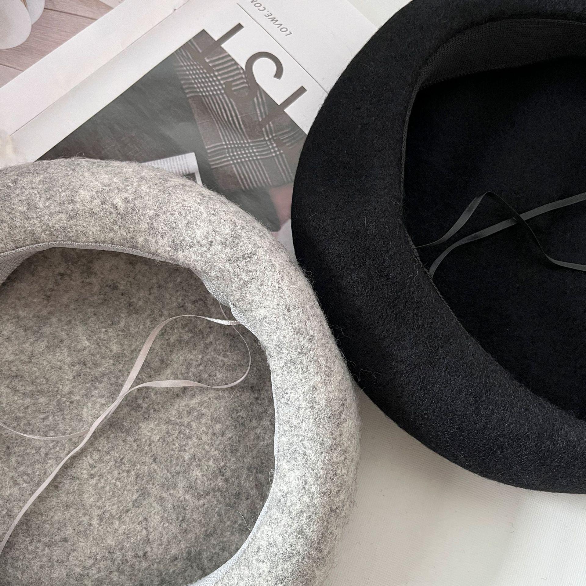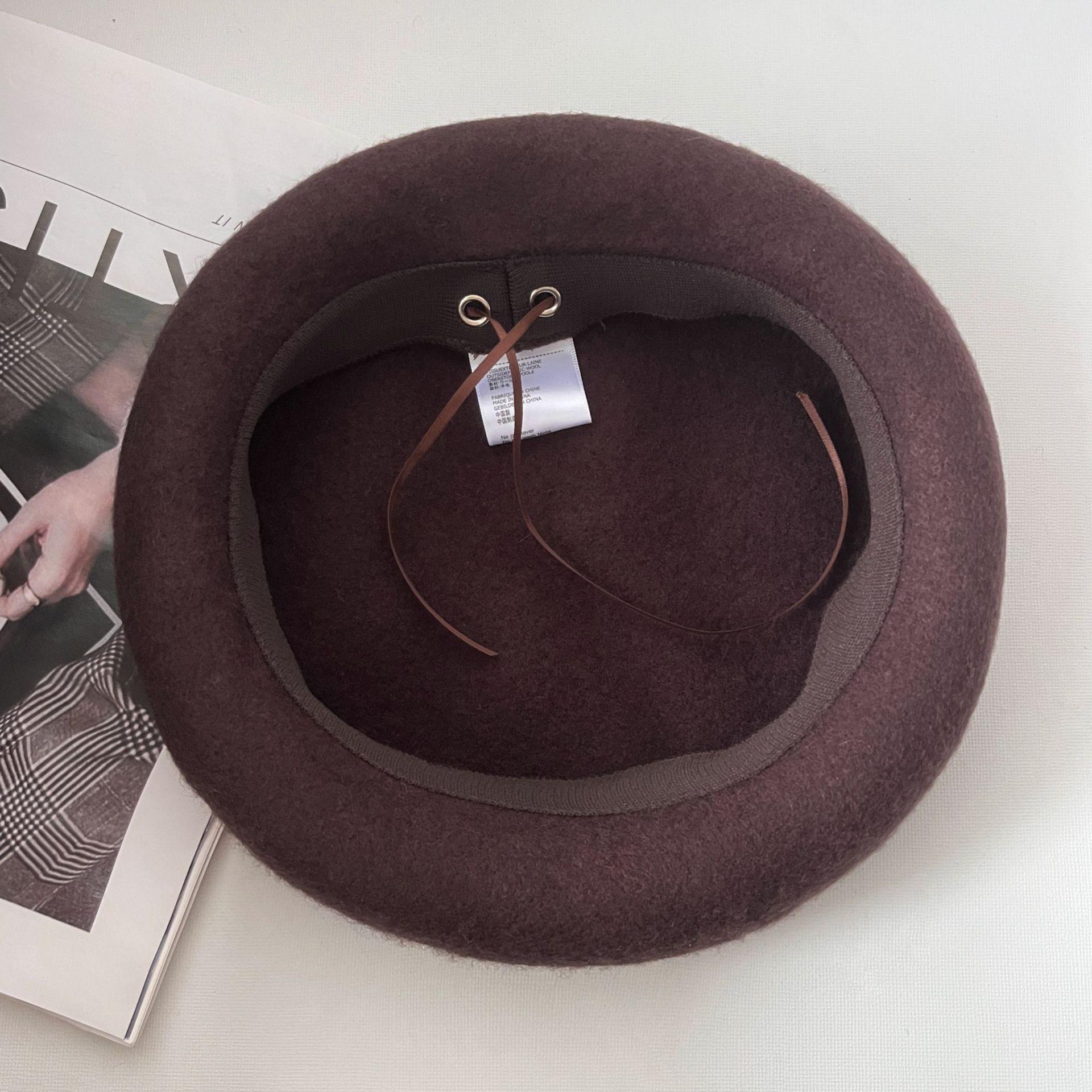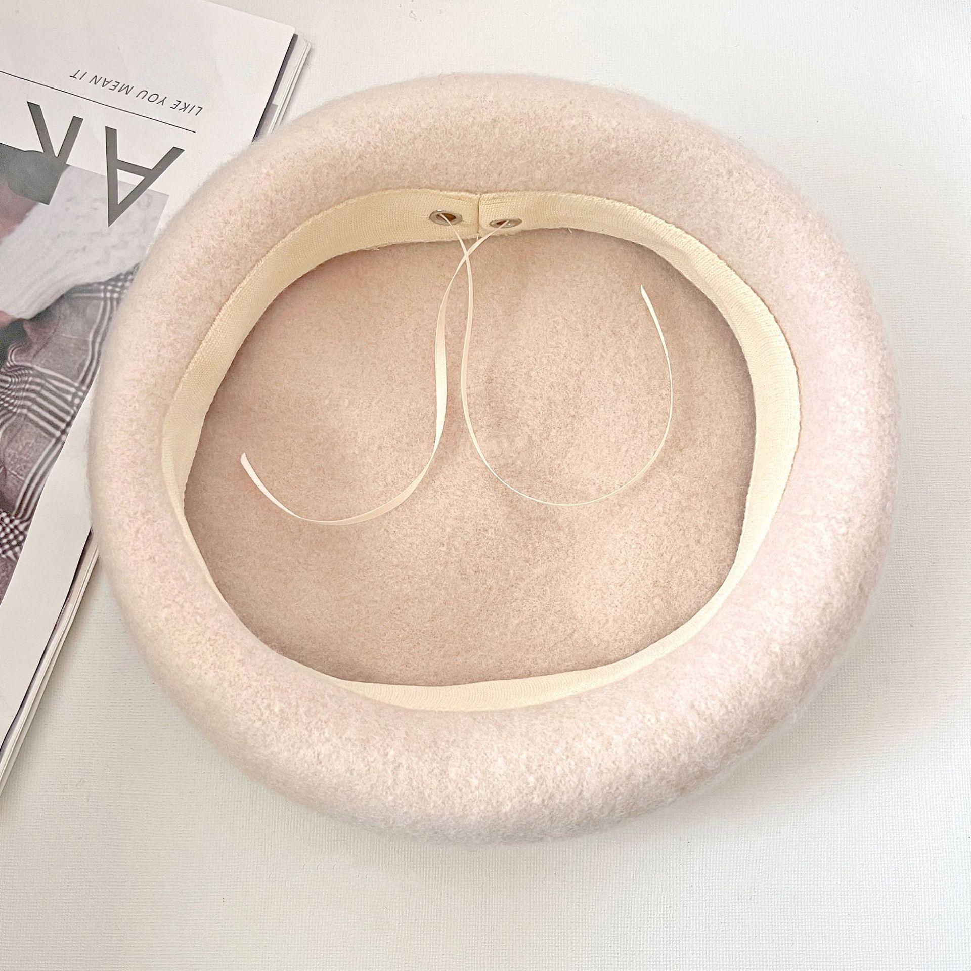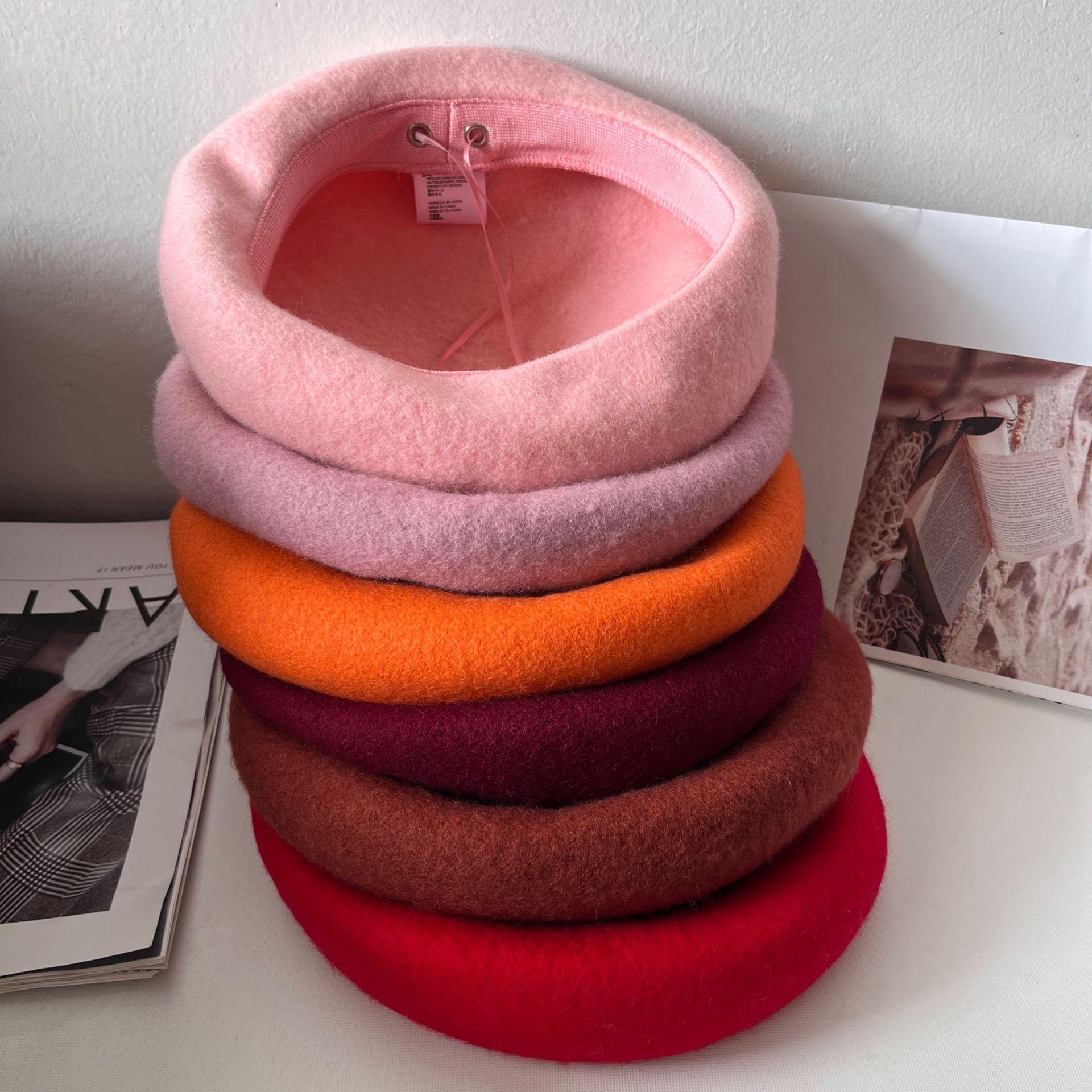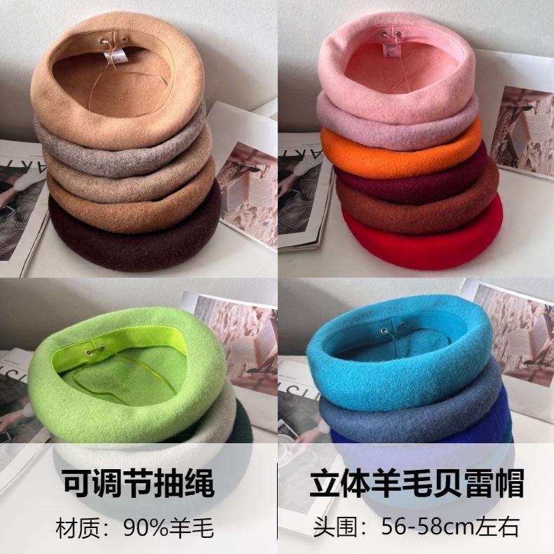 Gorra de pintor de lana de alta calidad de estilo coreano, nueva gorra de nube para mujer, boina de lana tridimensional con cordón ajustable, otoño e invierno